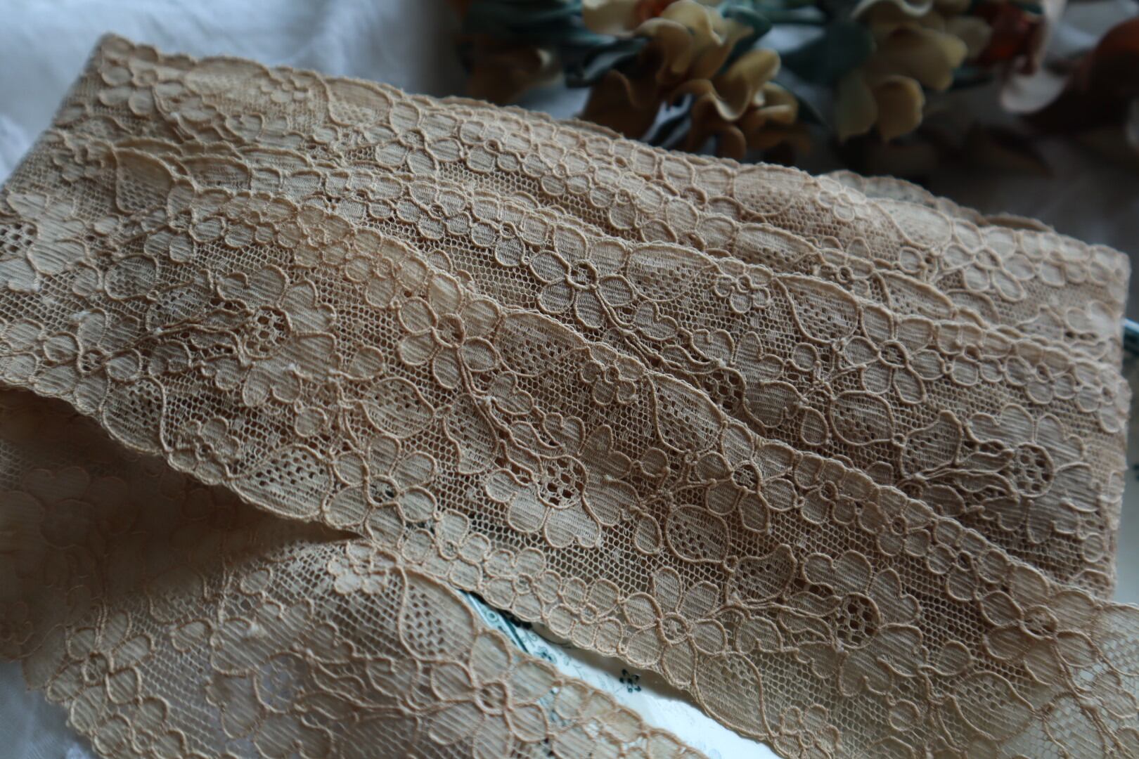 France製 1m アンティーク花柄レース C1003 ベージュ