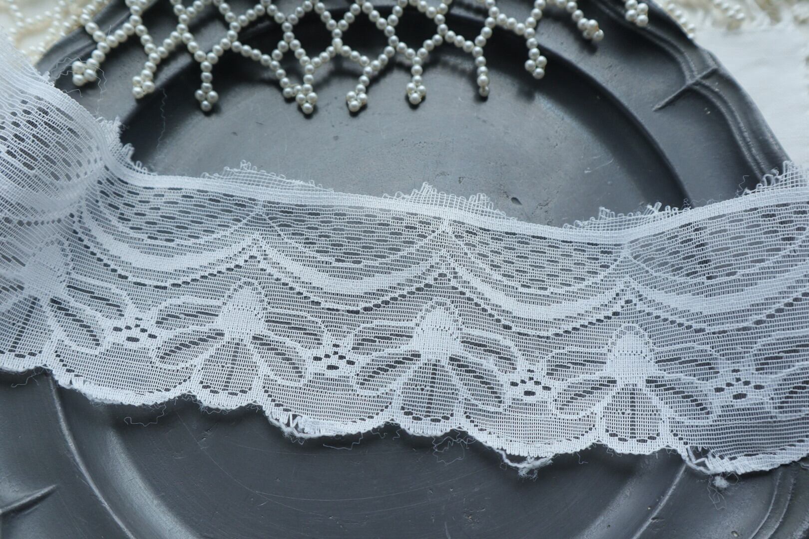 France製 1m アンティークレース 花柄 C1007 ホワイト
