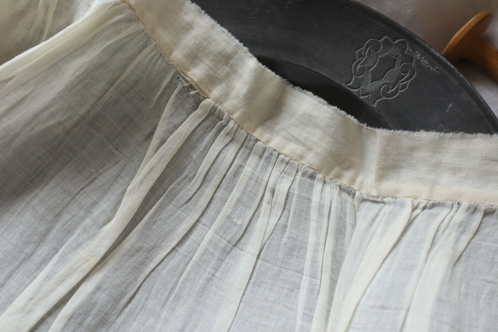 繊細な手縫いのギャザーの生地です。