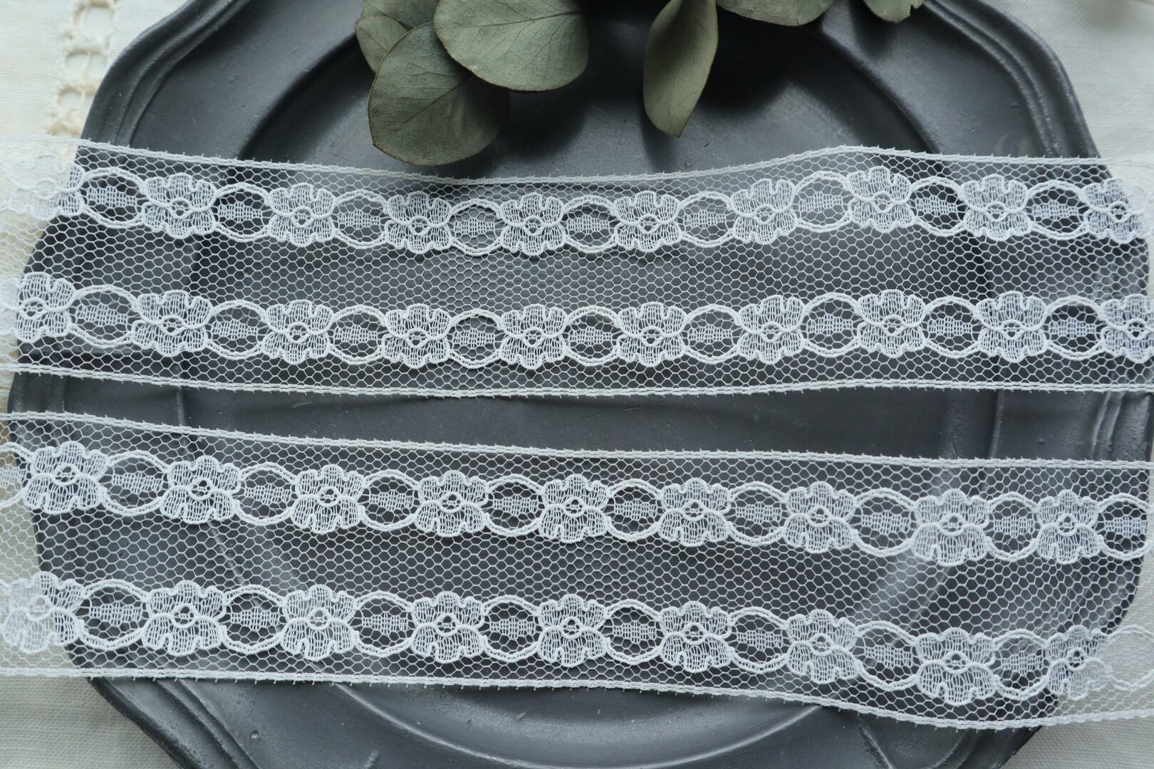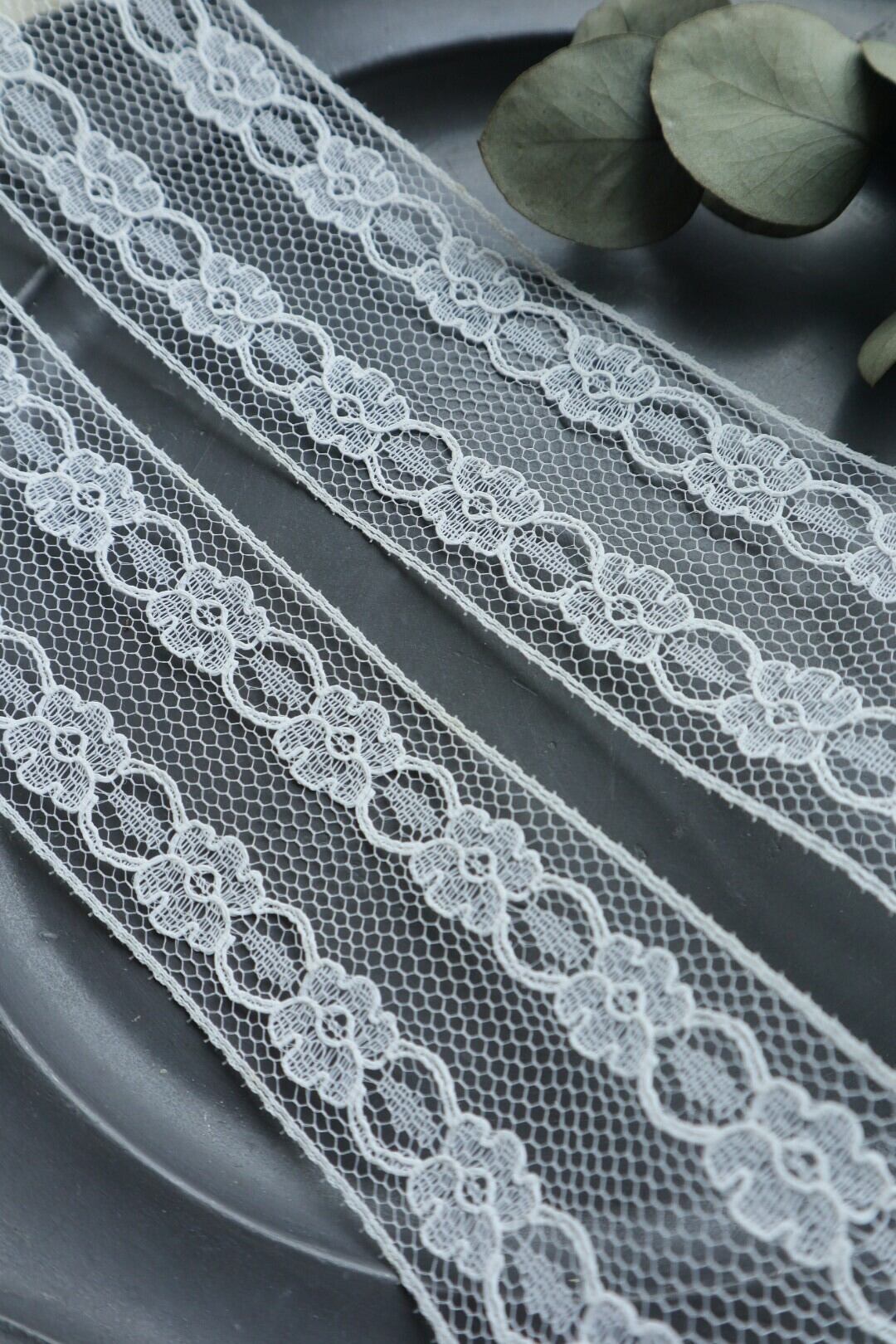 France製 80㎝ アンティーク花柄レース C1029 ホワイト