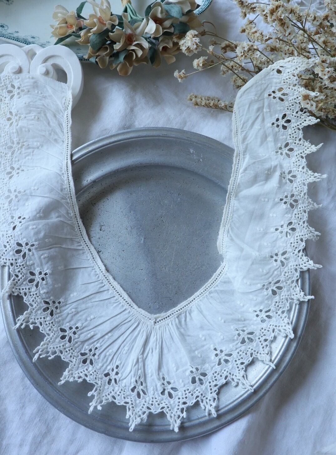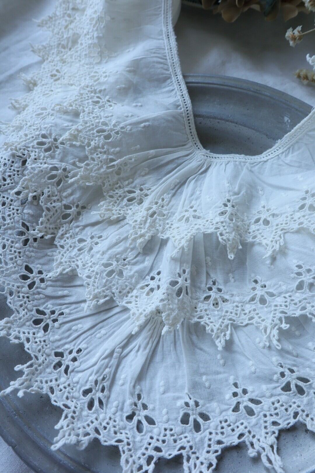 France製 3本セット アンティーク刺繍レース C1045 アイボリー