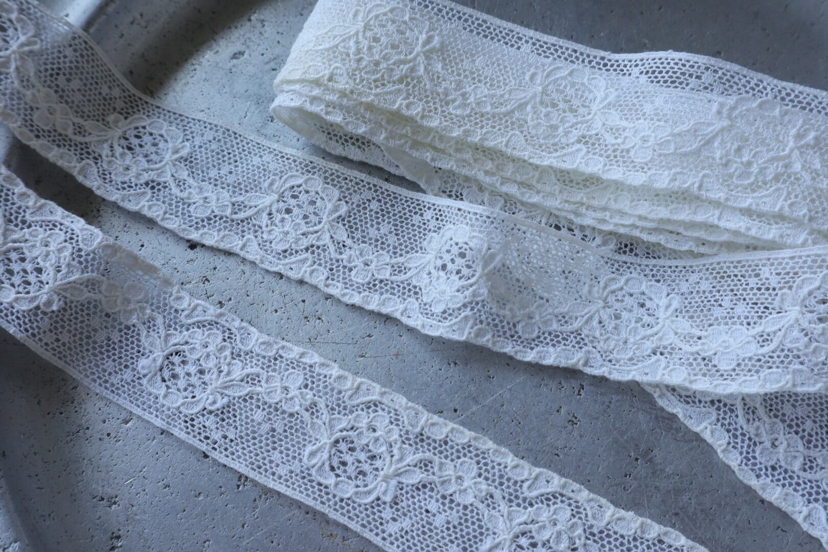 France製 1m アンティーク刺繍レース C1048 アイボリー