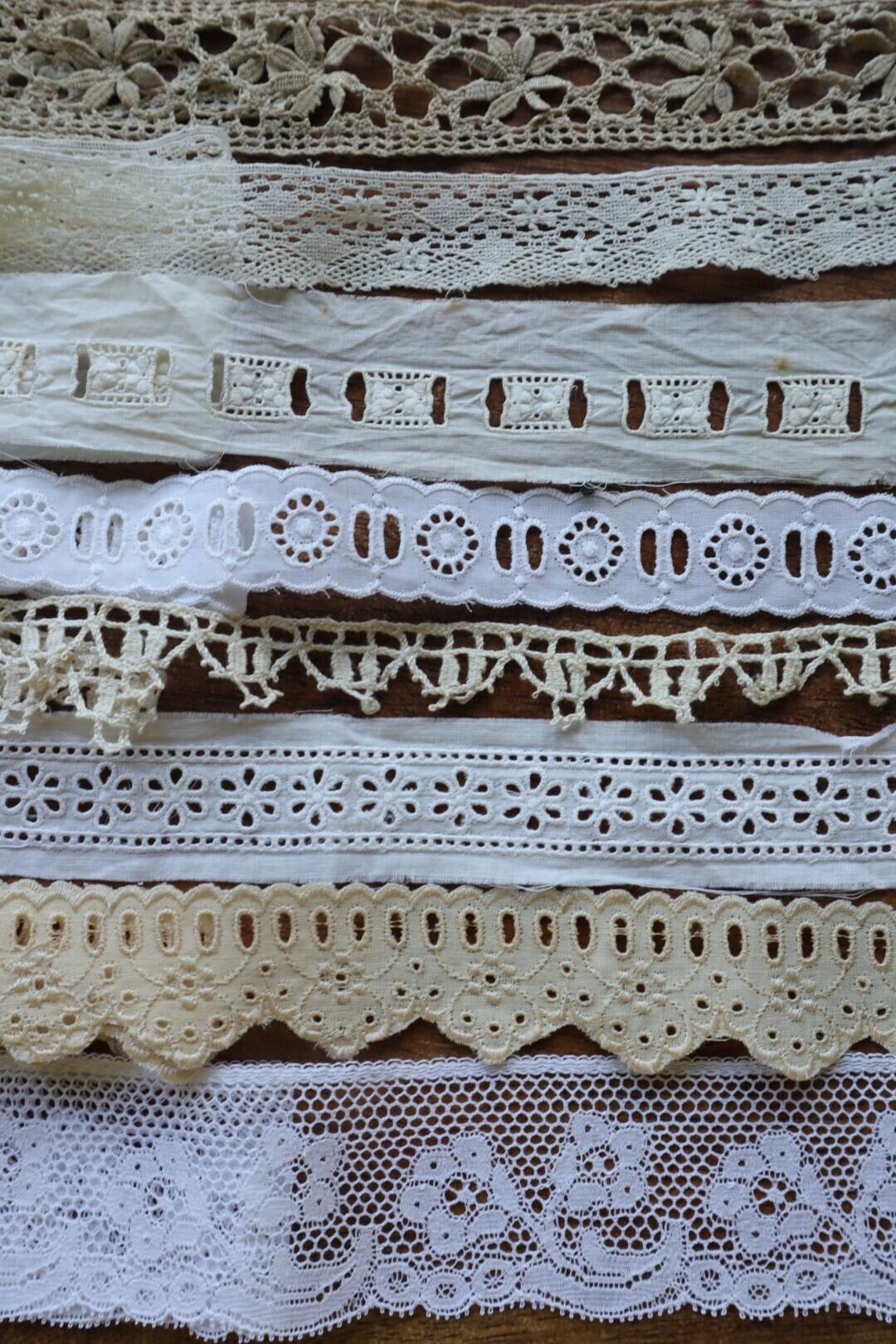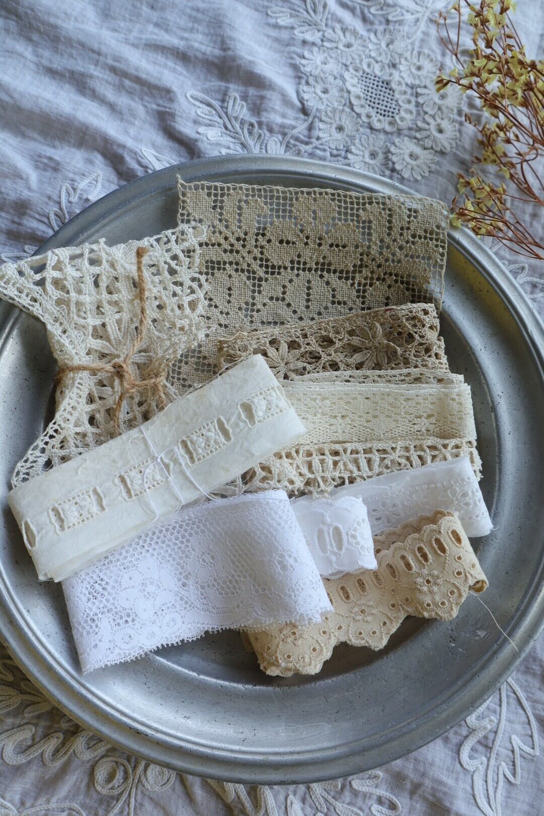 クロッシェレース、カットワーク刺繍レース、モチーフなどの10種類セットです。