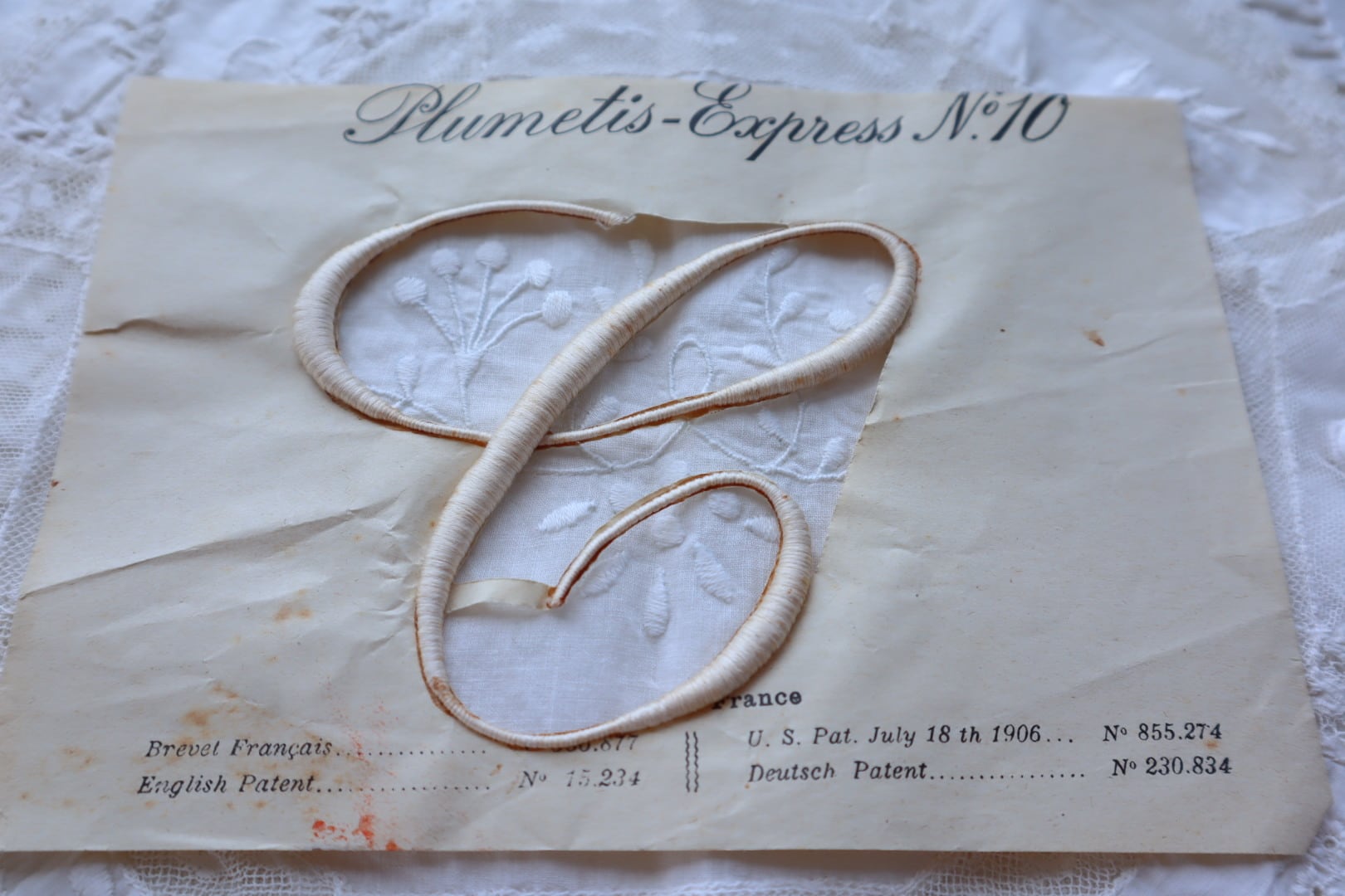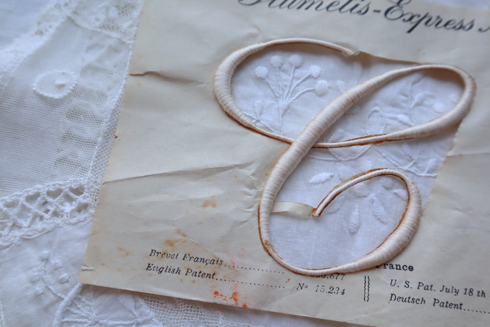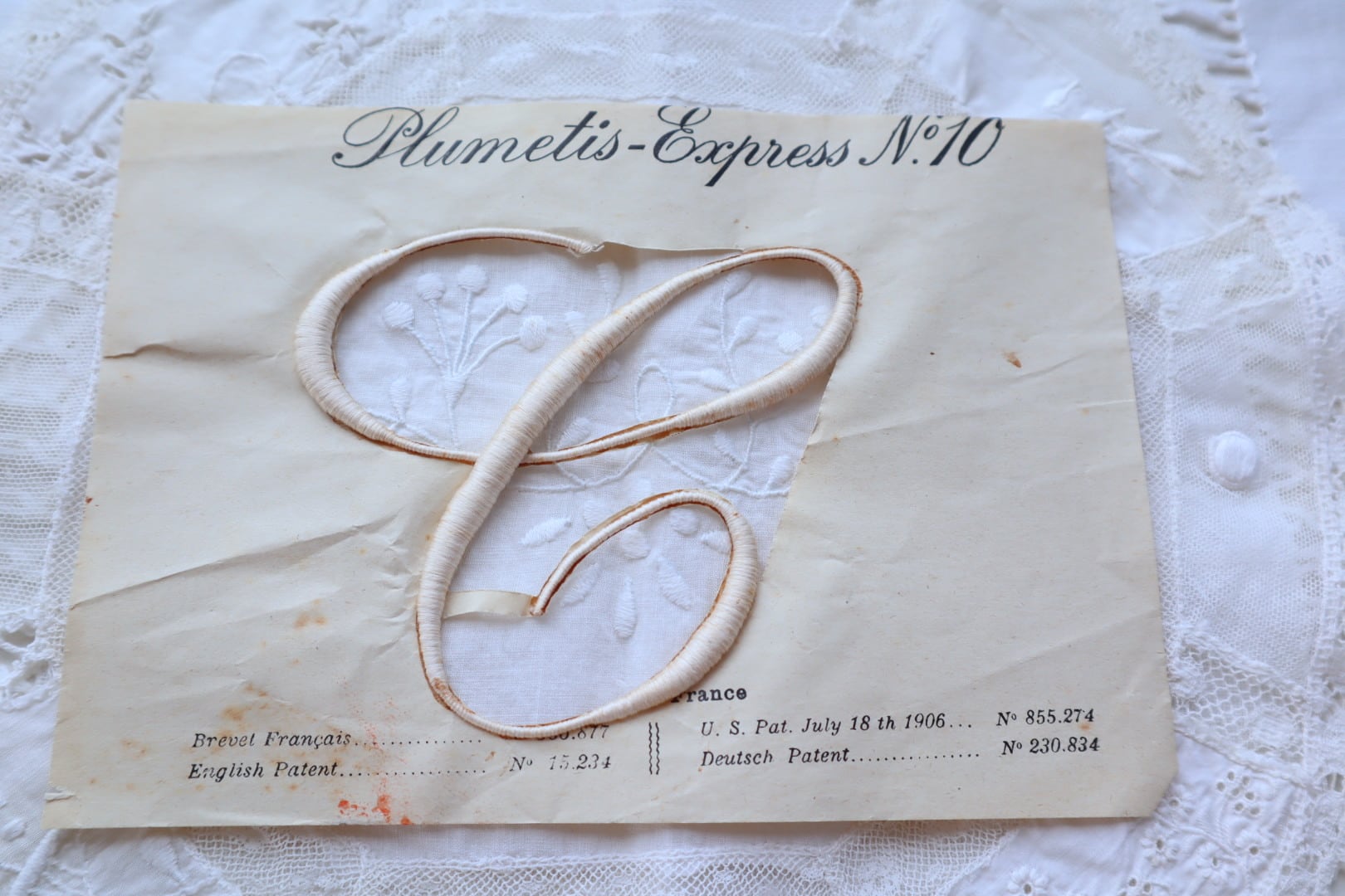 フランス アンティークモノグラム刺繍イニシャルシート