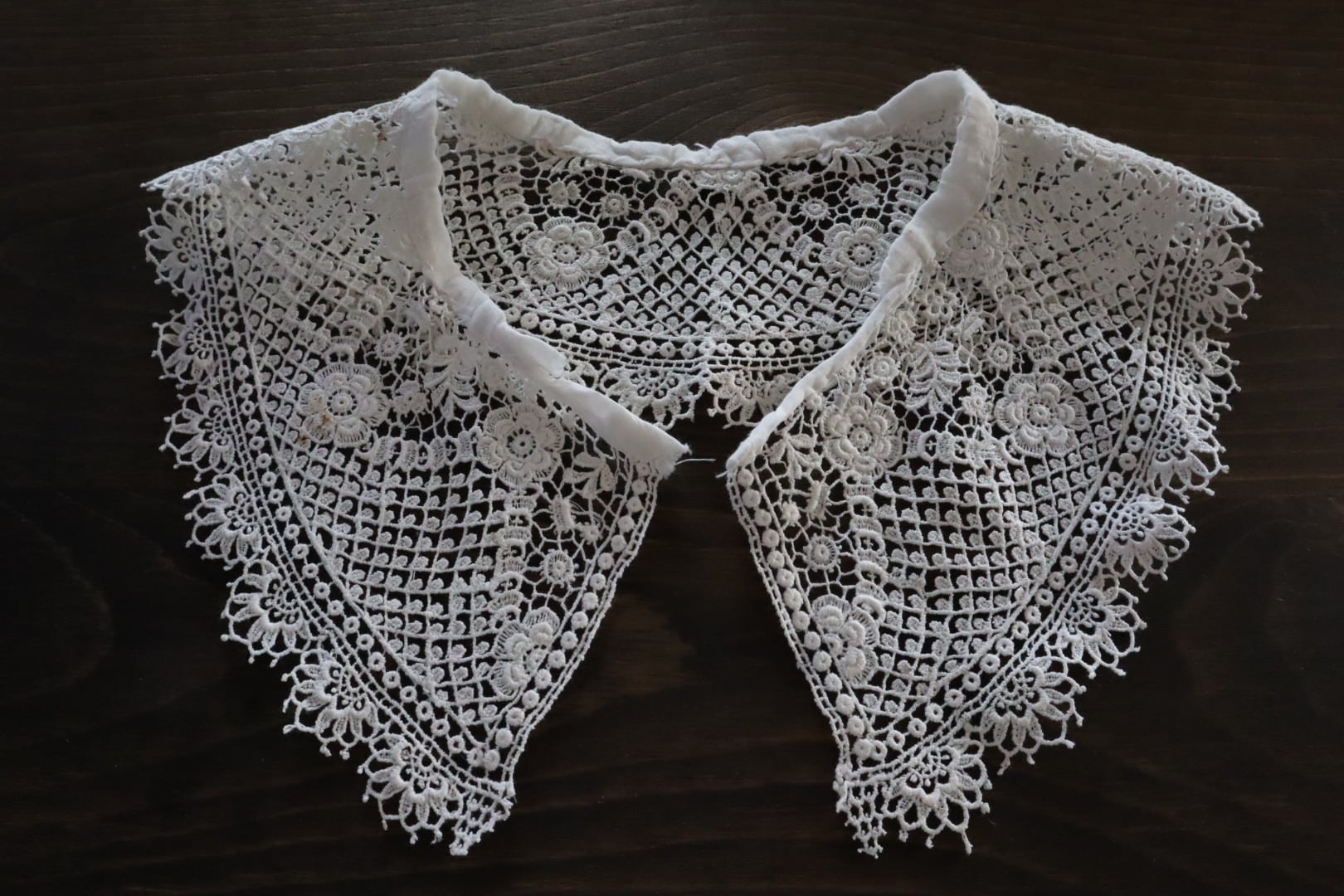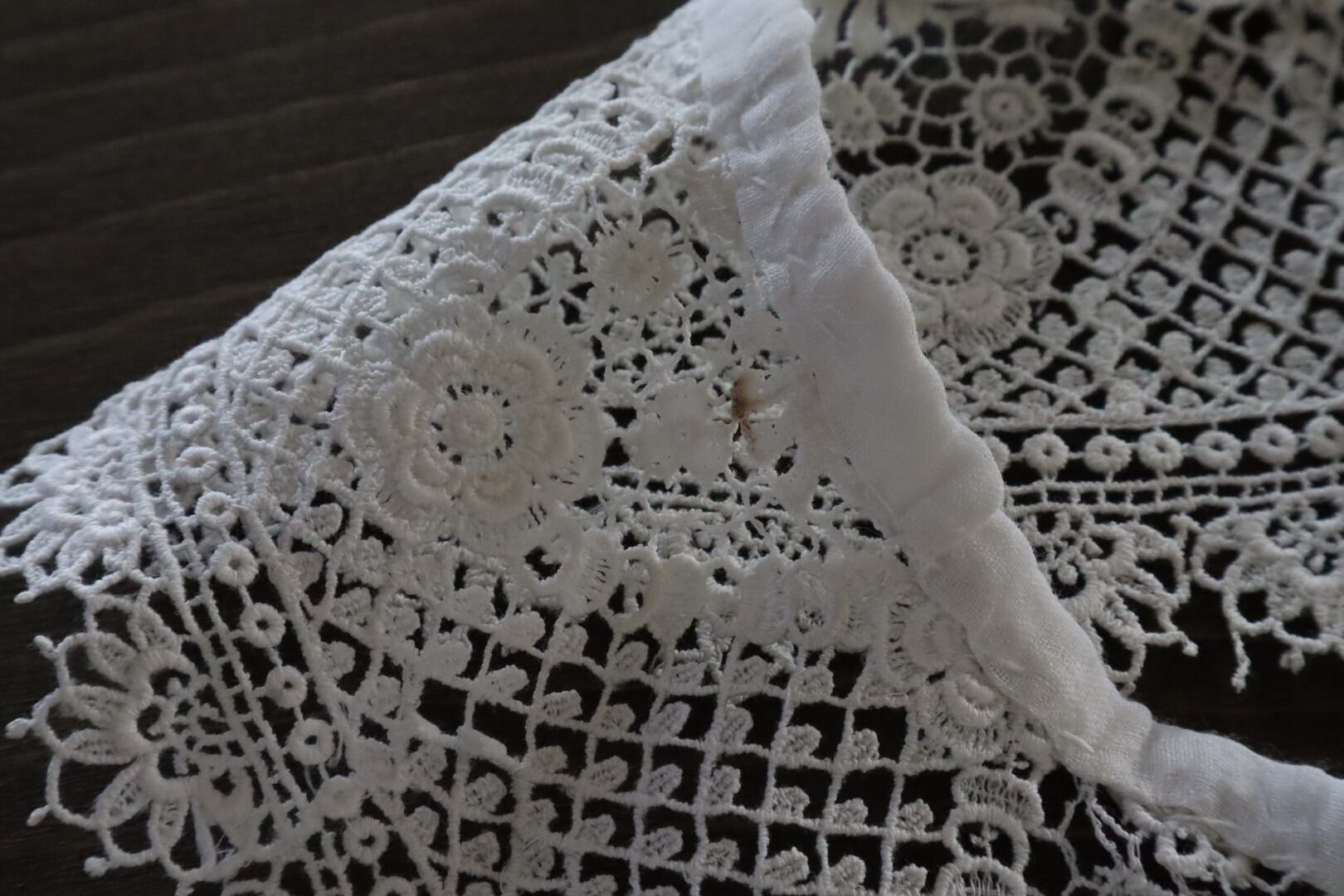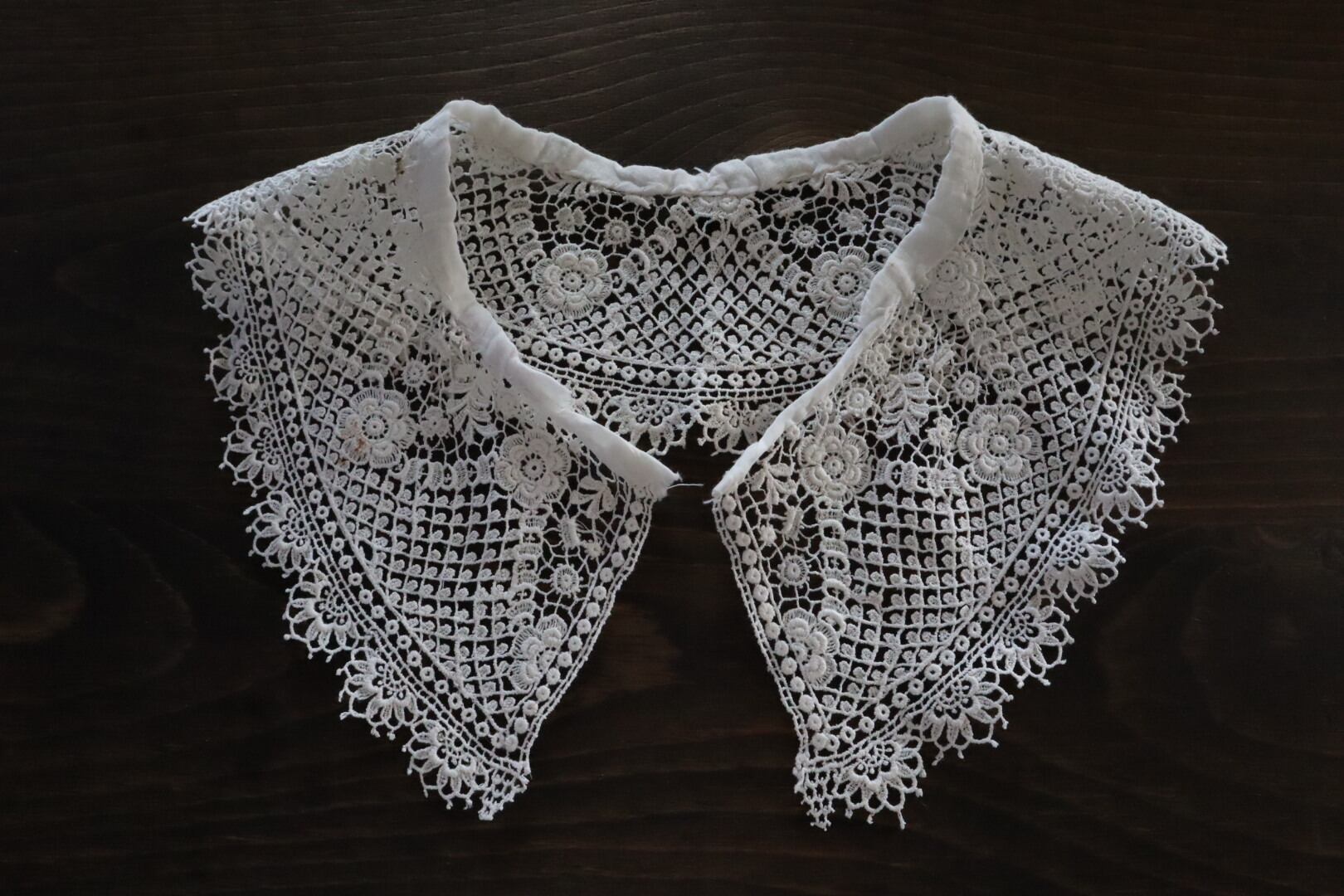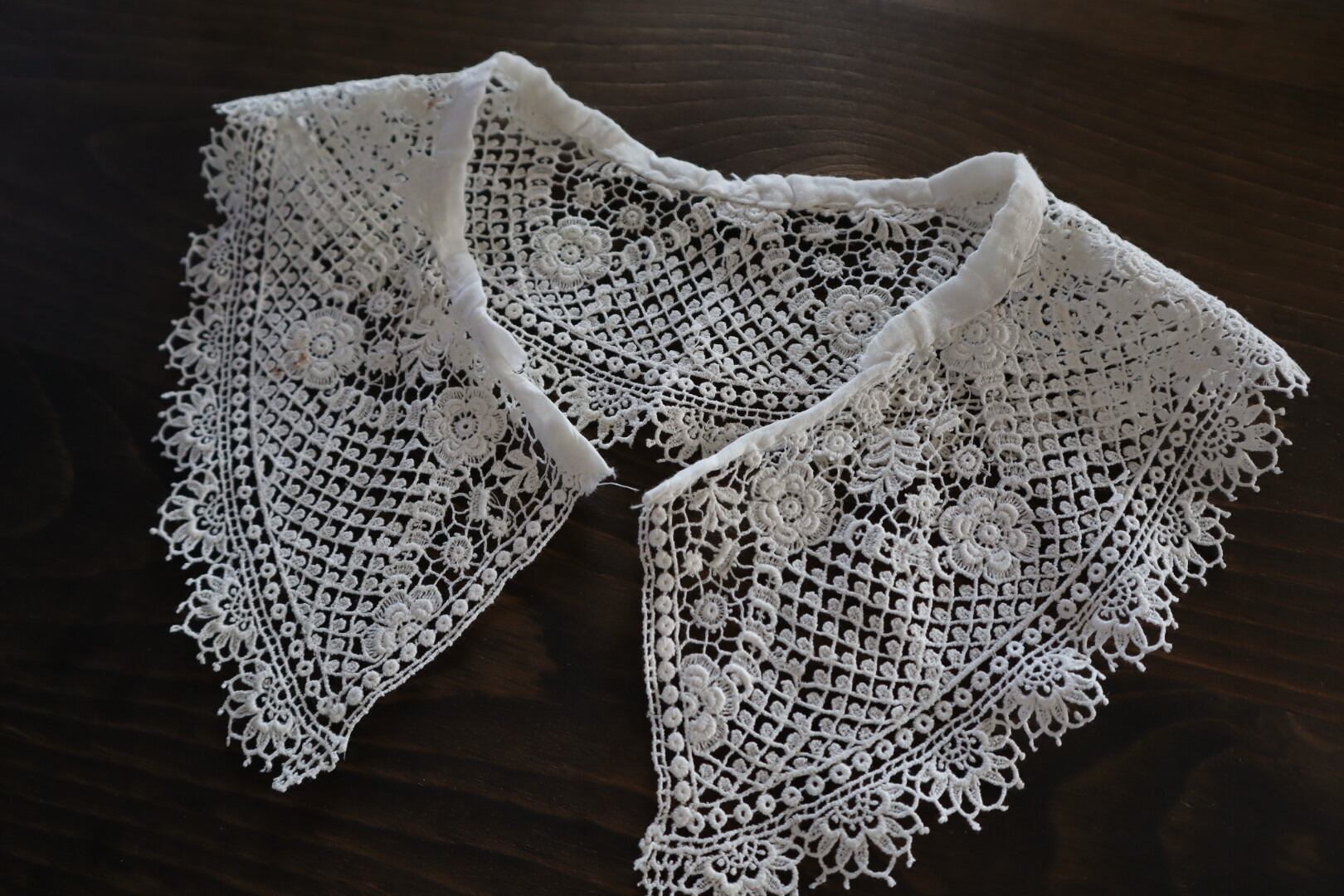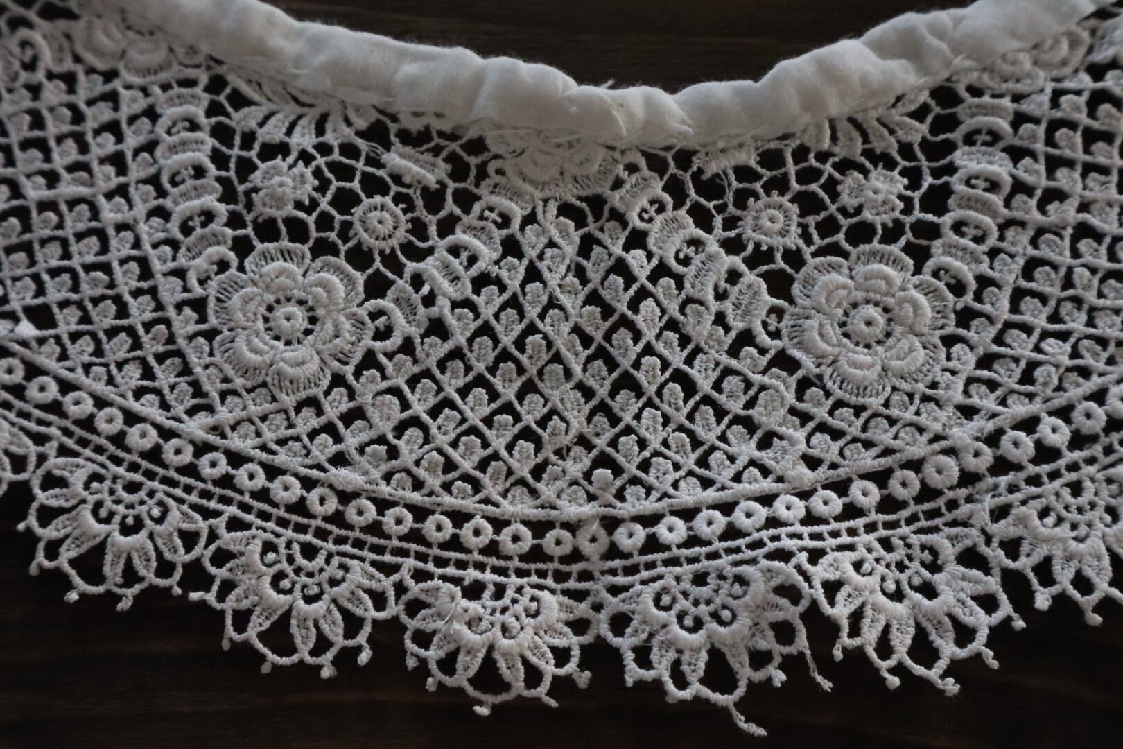 お花のモチーフが散りばめられたつけ襟レース