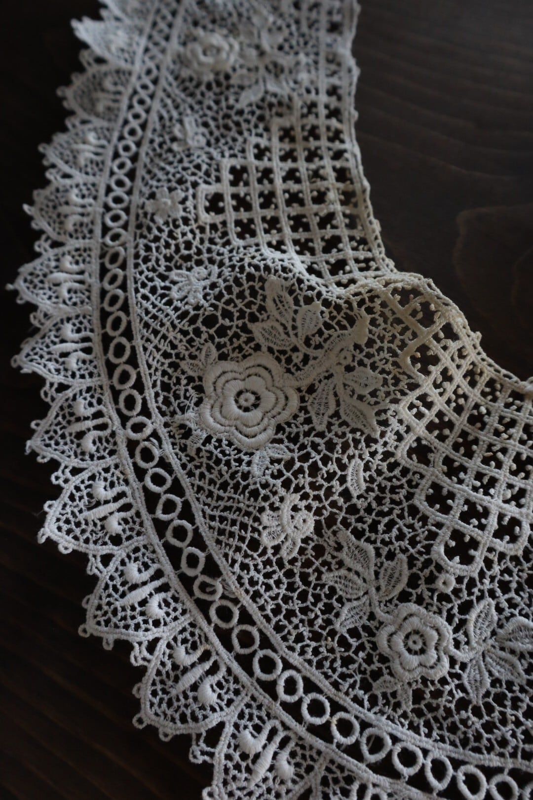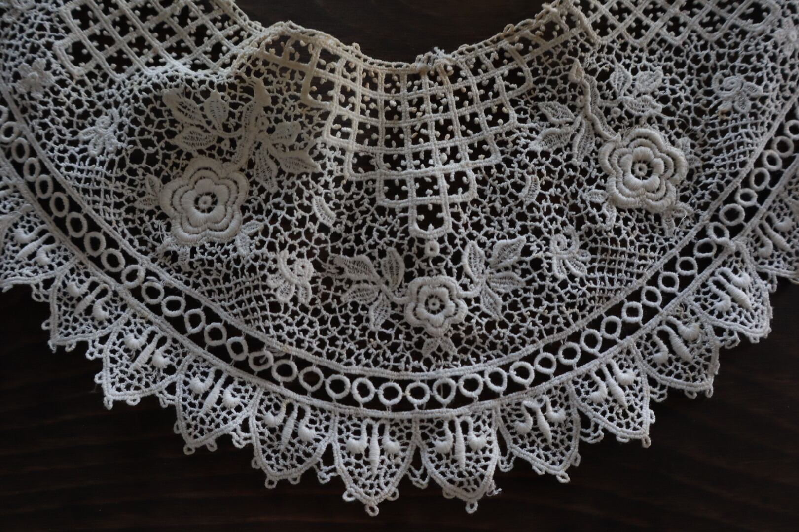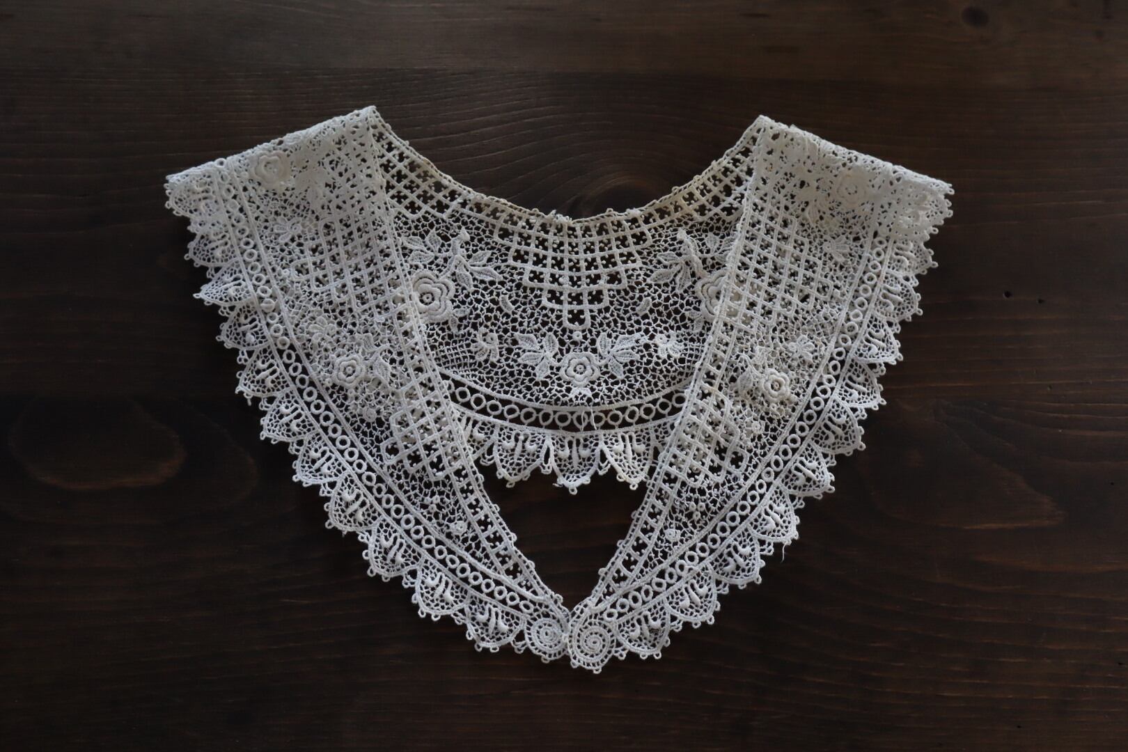 お花のモチーフが散りばめられたつけ襟レース