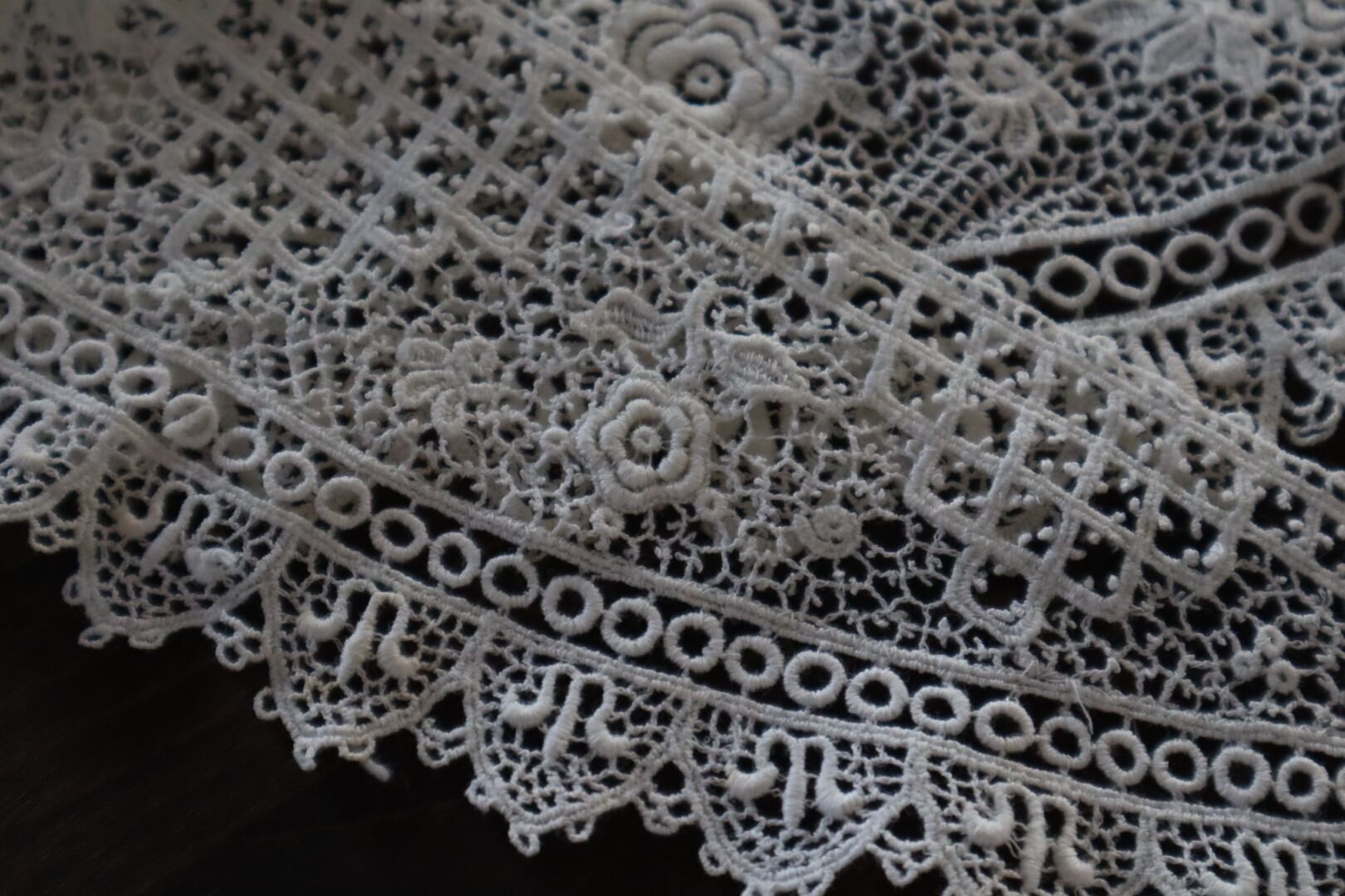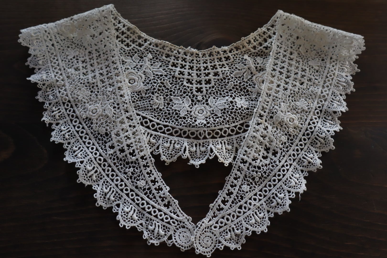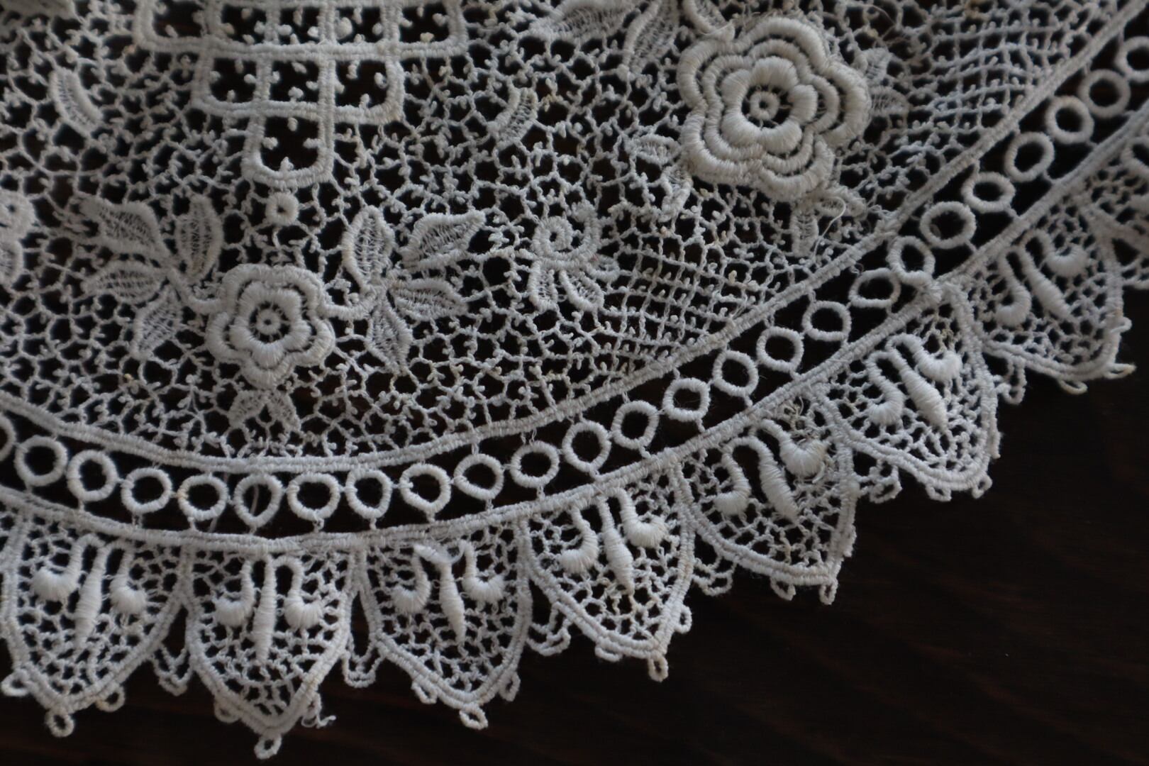 お花のモチーフが散りばめられたつけ襟レース