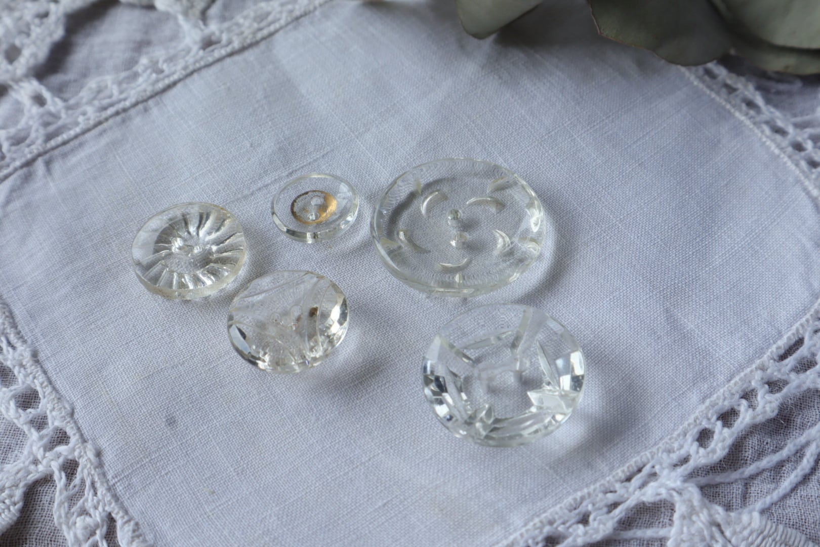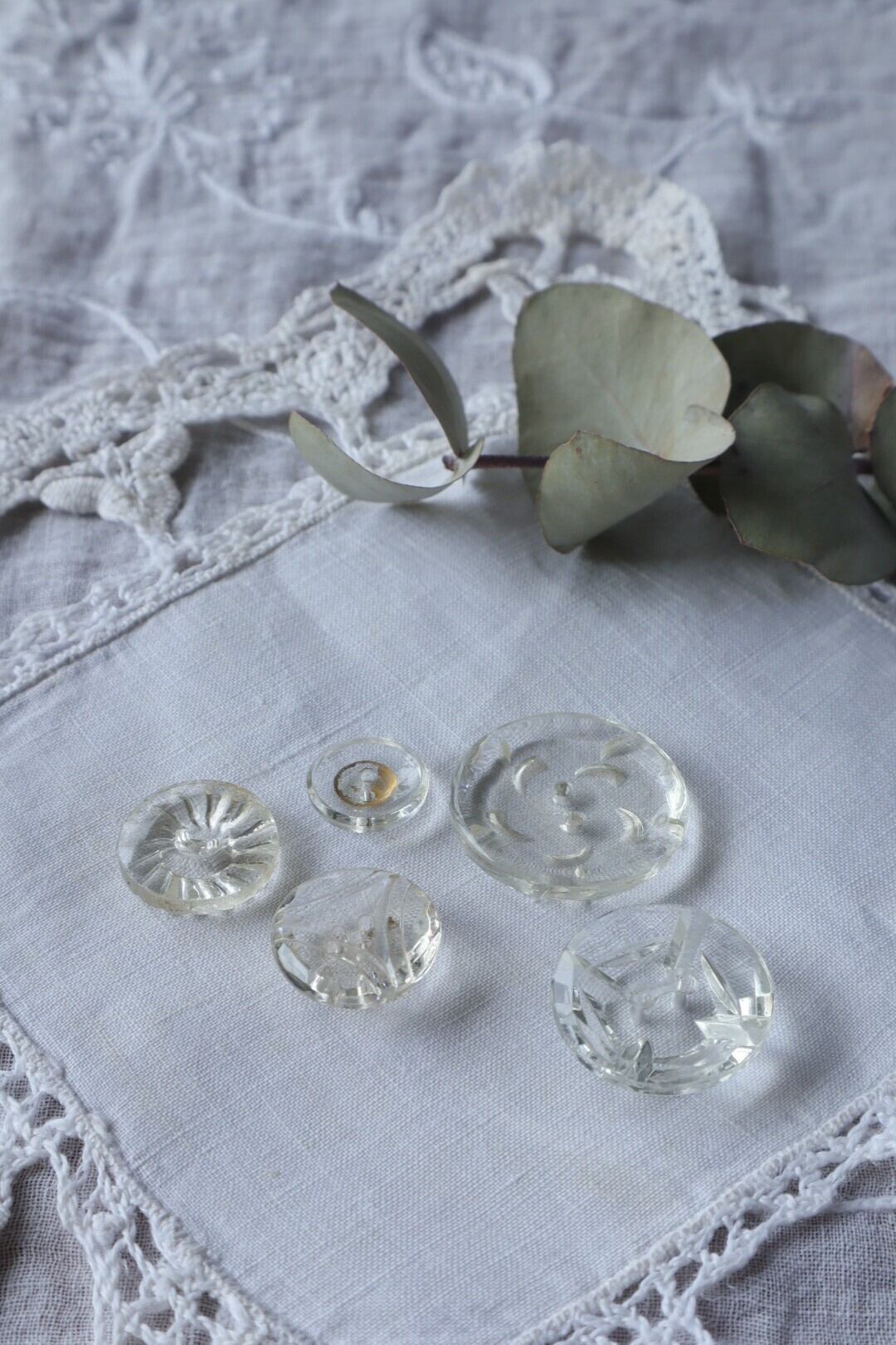 France製 5個 アンティークガラスボタン A1830 クリア