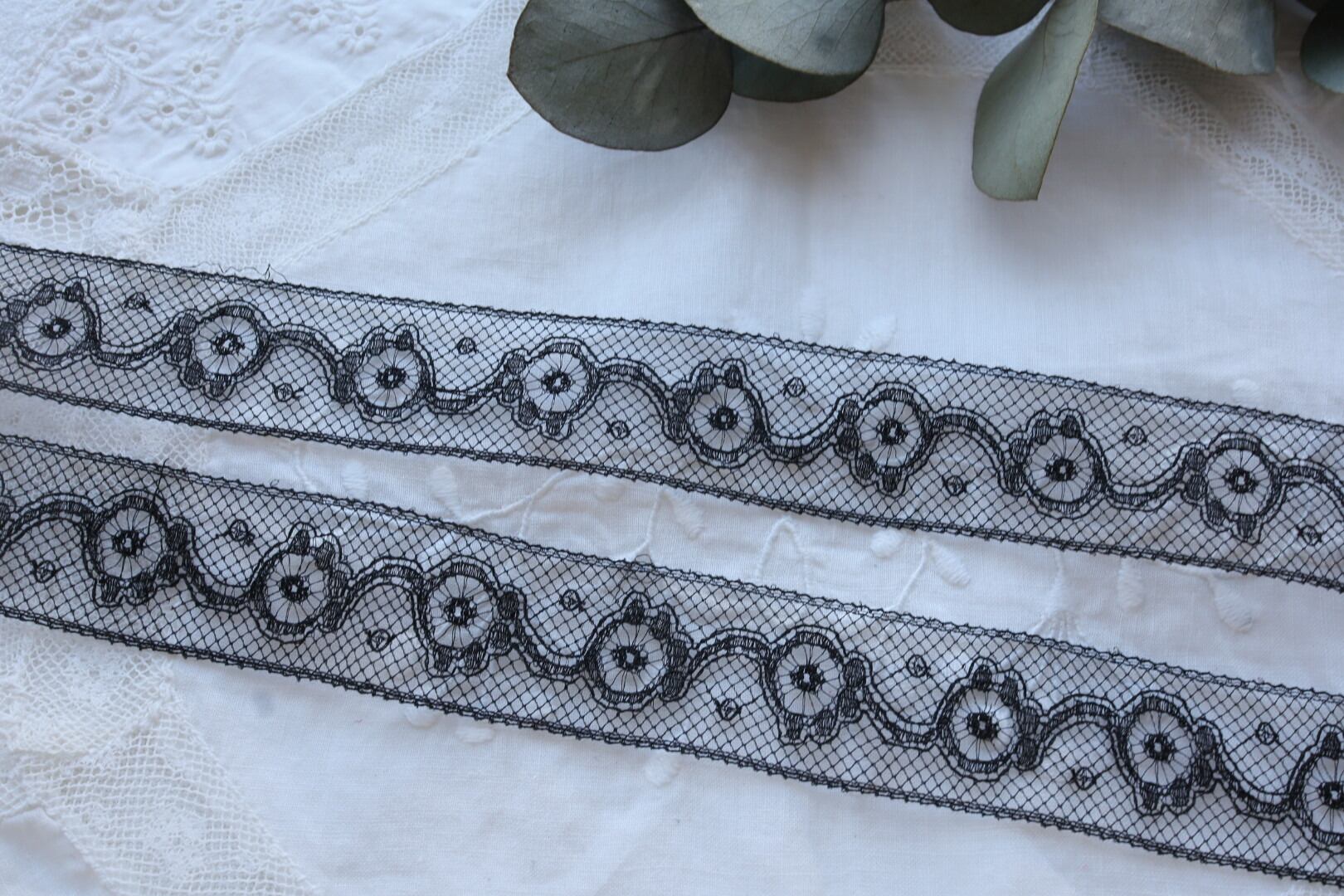 France製 1m アンティークレース C1072 ブラック