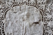 四隅に広がる透かし模様が美しいレースハンカチです。