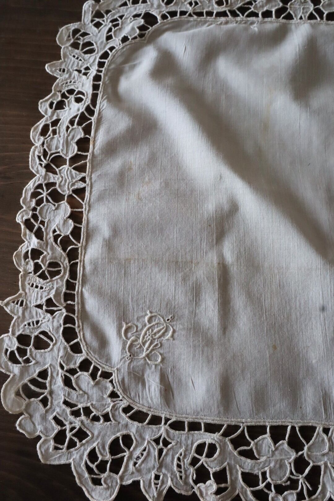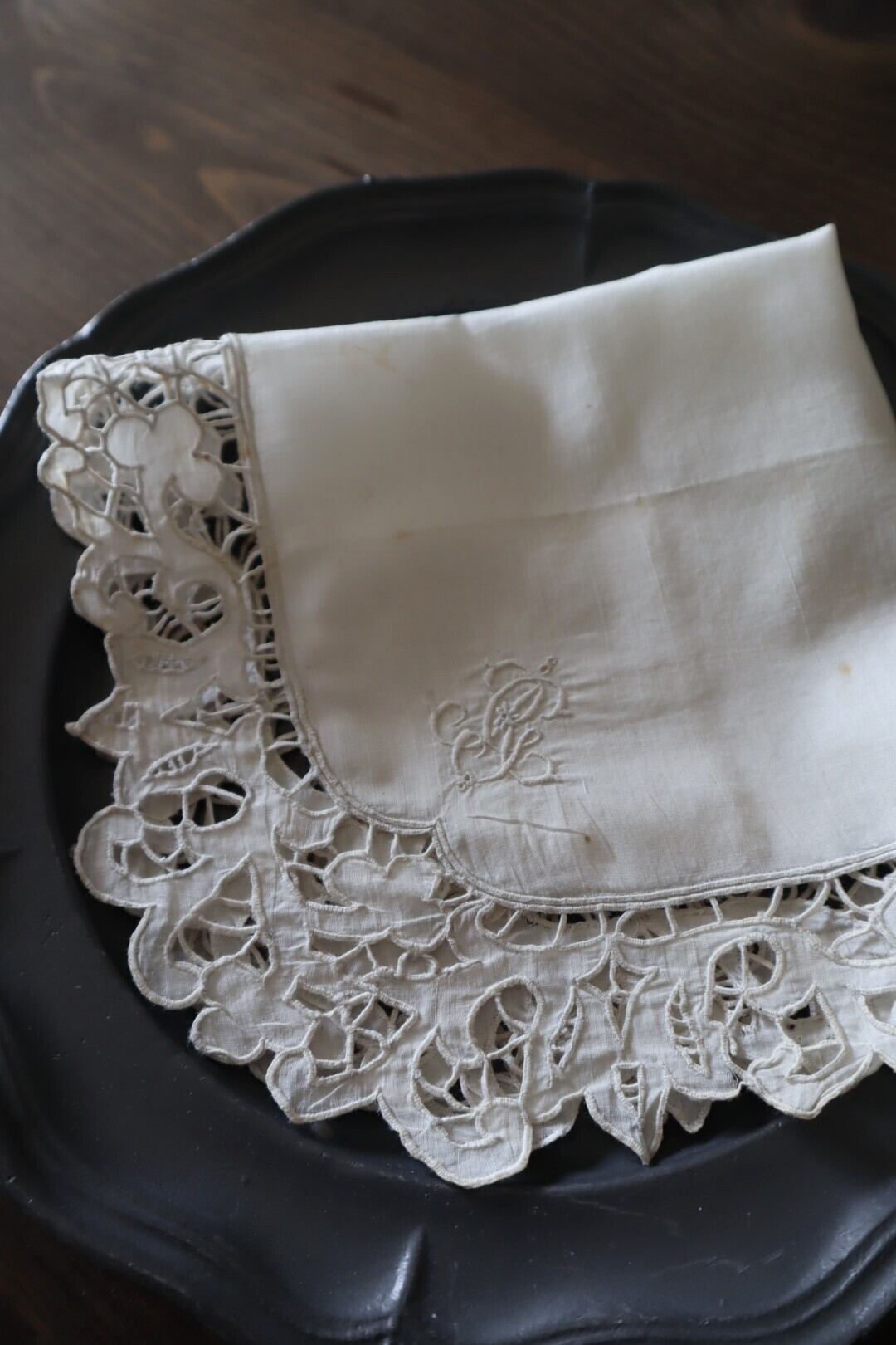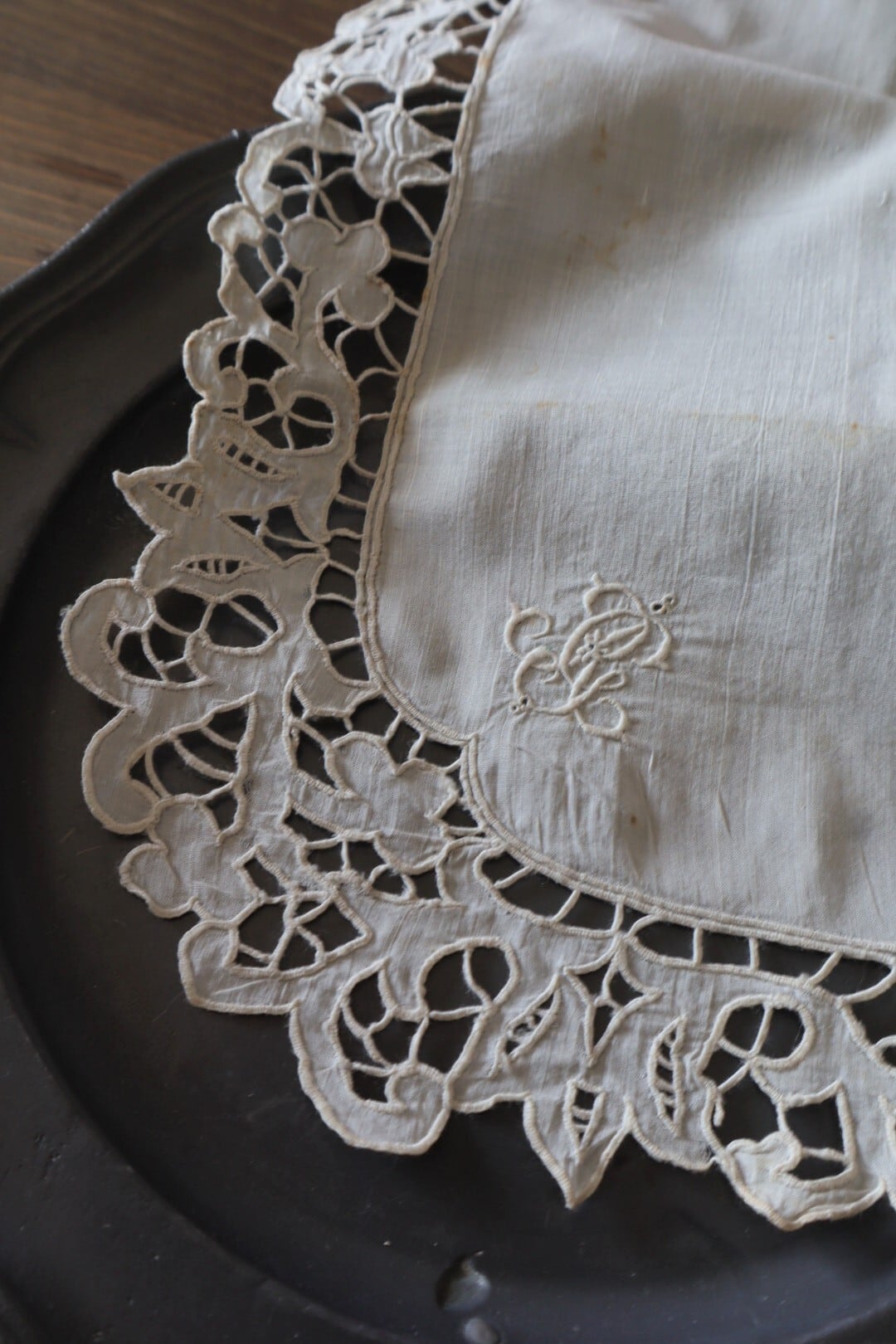 France製 30㎝ アンティークレースハンカチ B936 オフホワイト