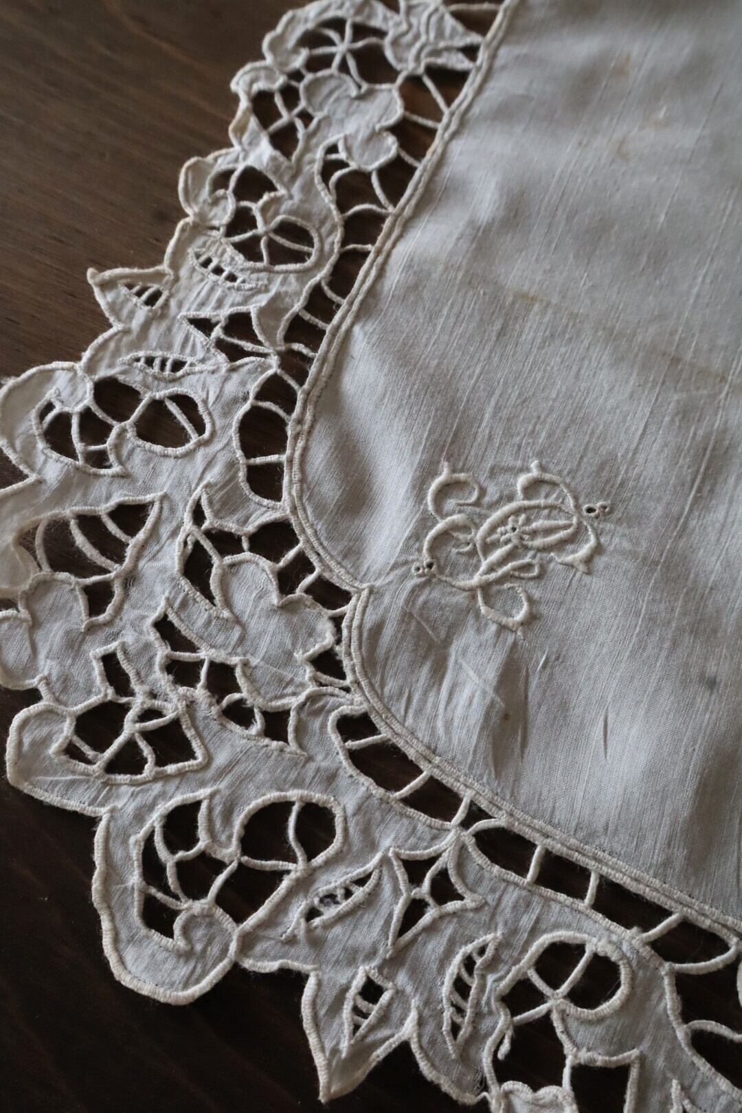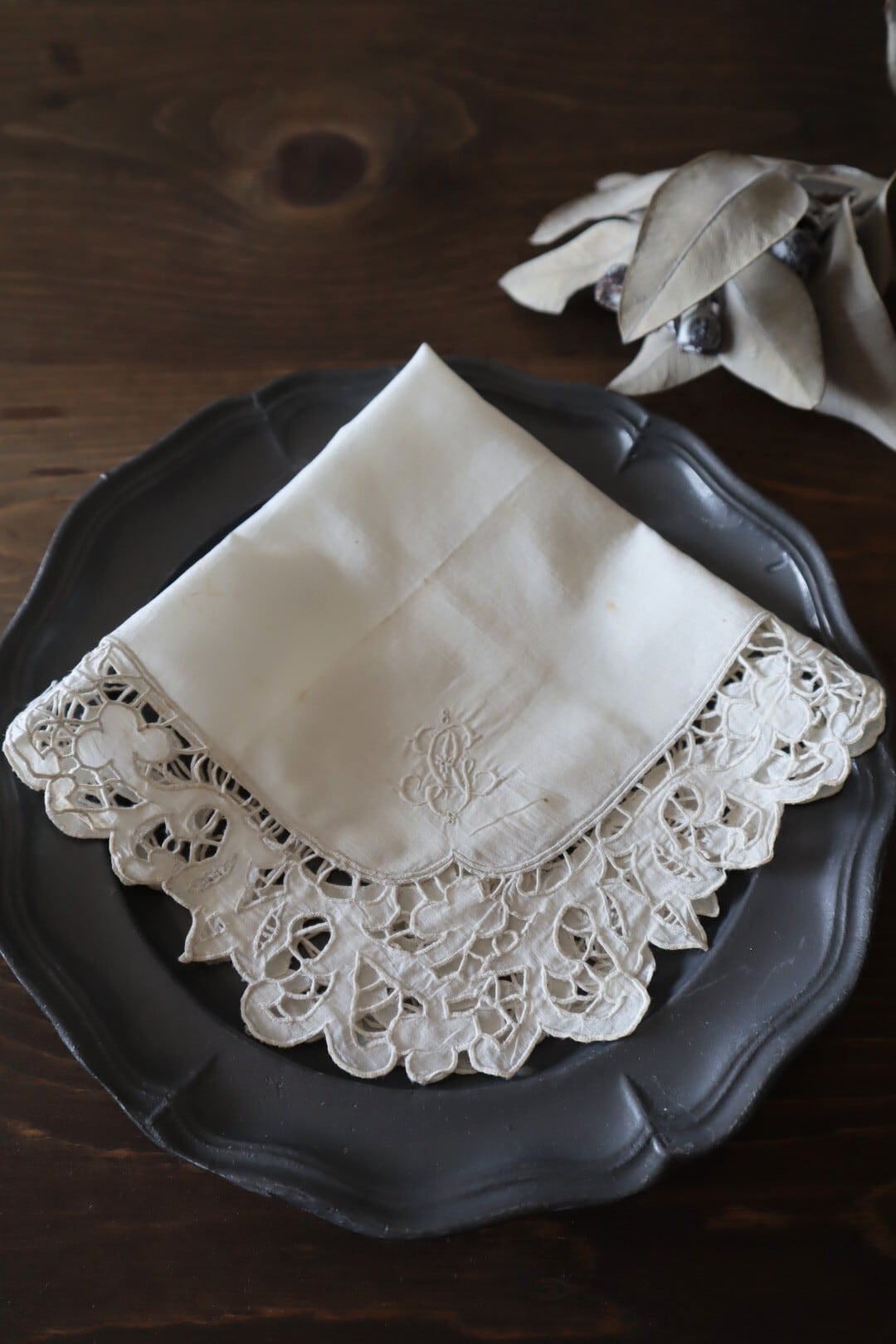繊細なレースで縁取られたアンティークレースのハンカチです。