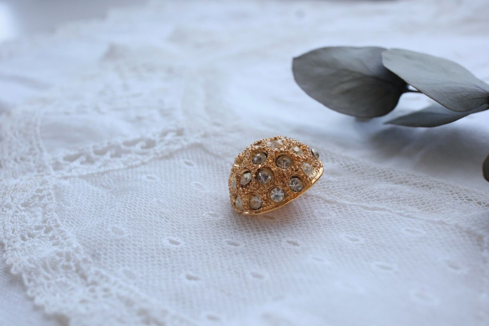 France製 20㎜ ヴィンテージボタン ビジュー飾り A1869 ゴールド