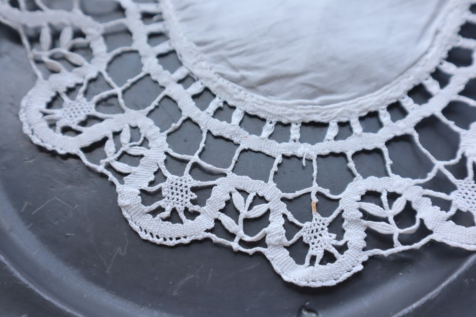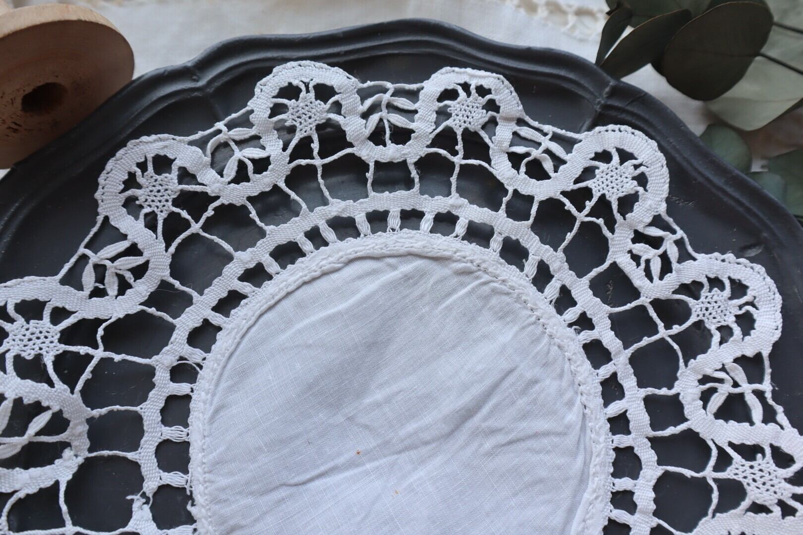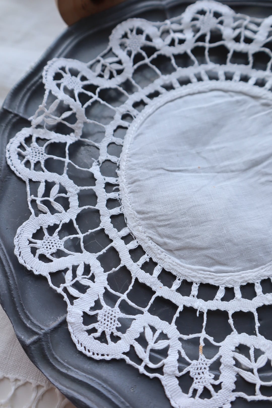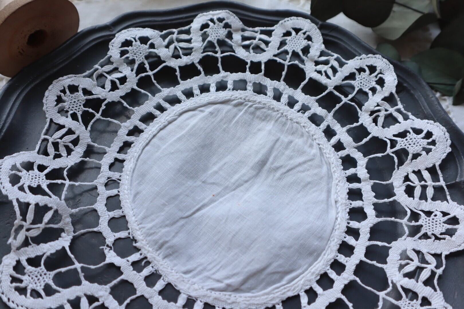 France製 20㎝ アンティークレースドイリー B942 ホワイト