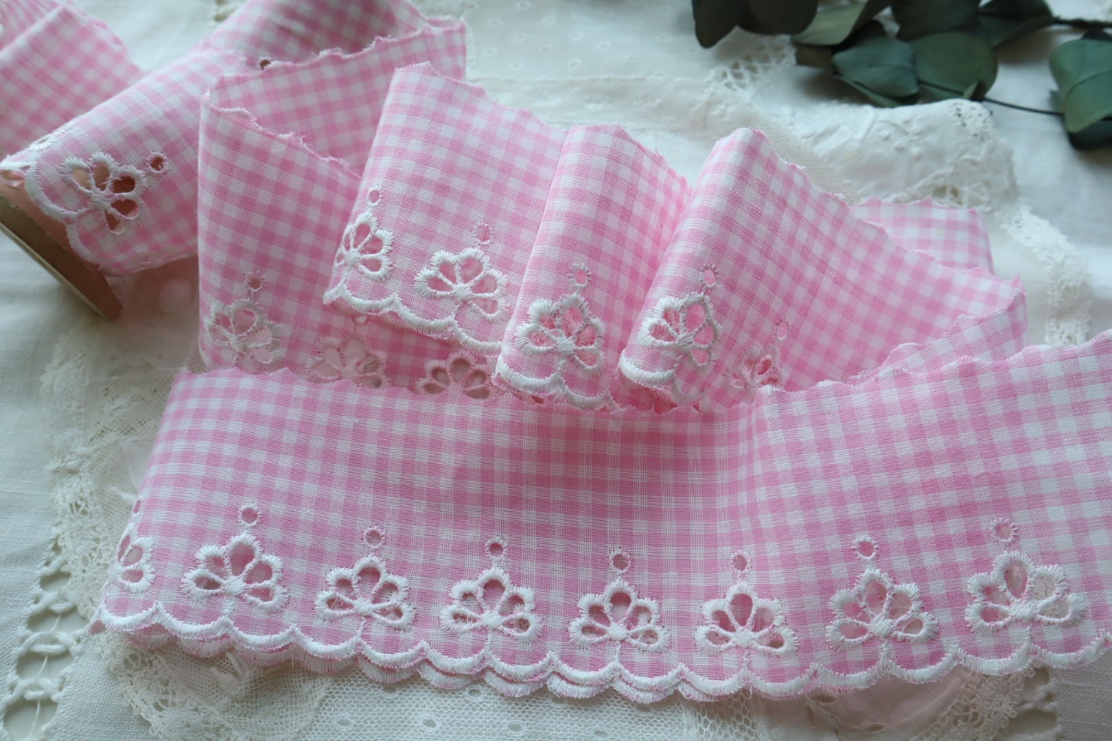 France製 80㎝ ヴィンテージギンガム刺繍レース B938 ピンク