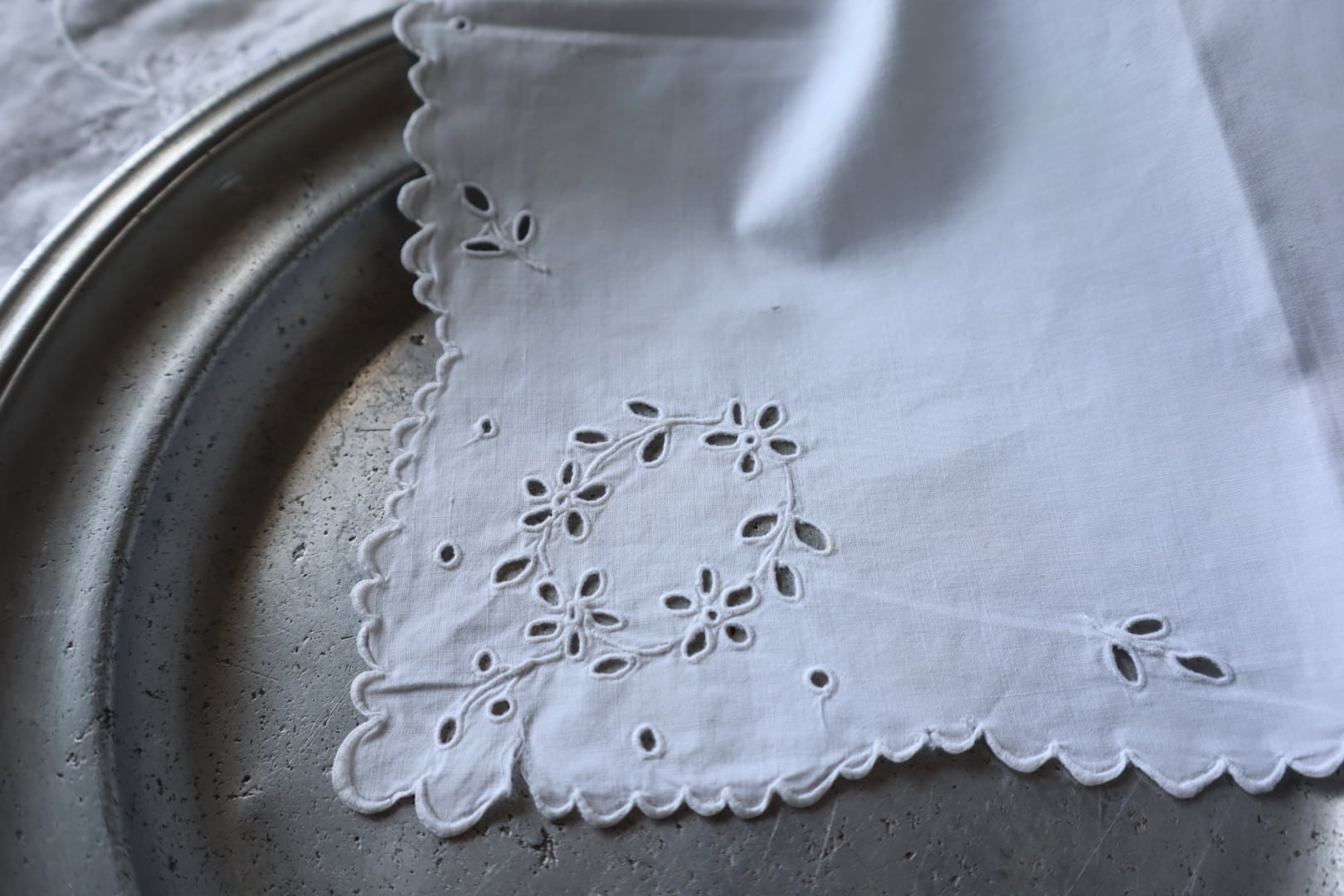 四隅にカットワーク刺繍があり華やかな印象