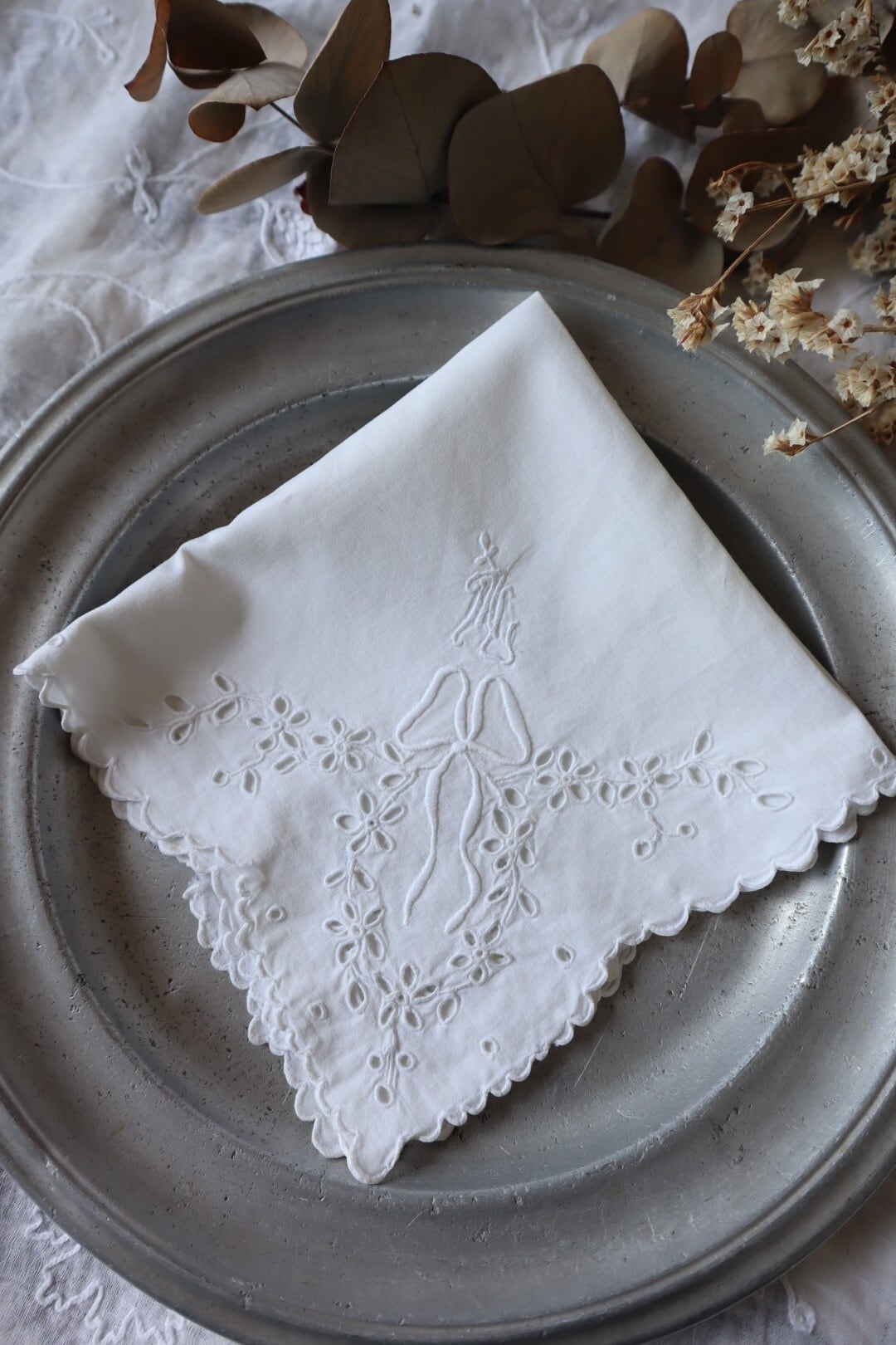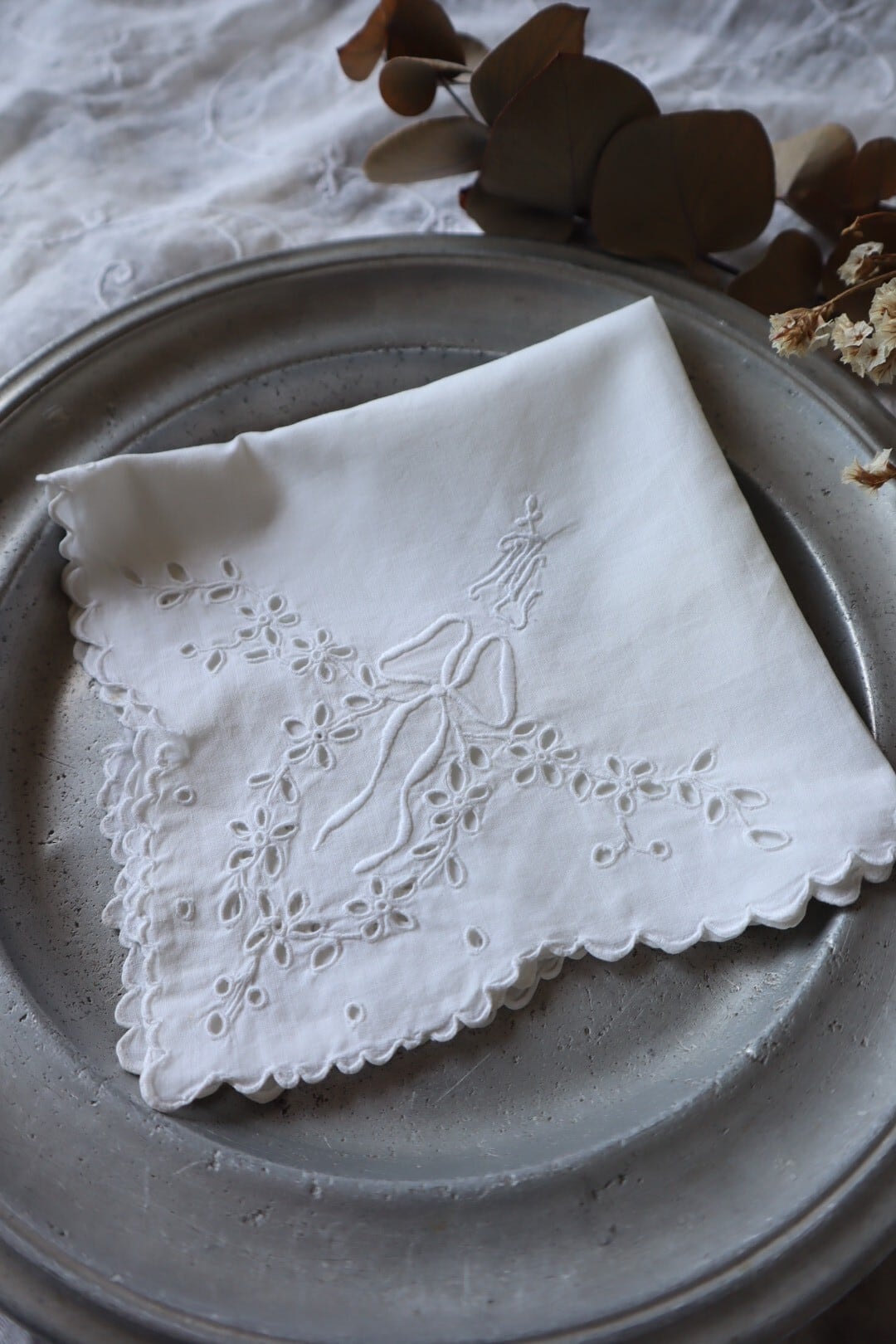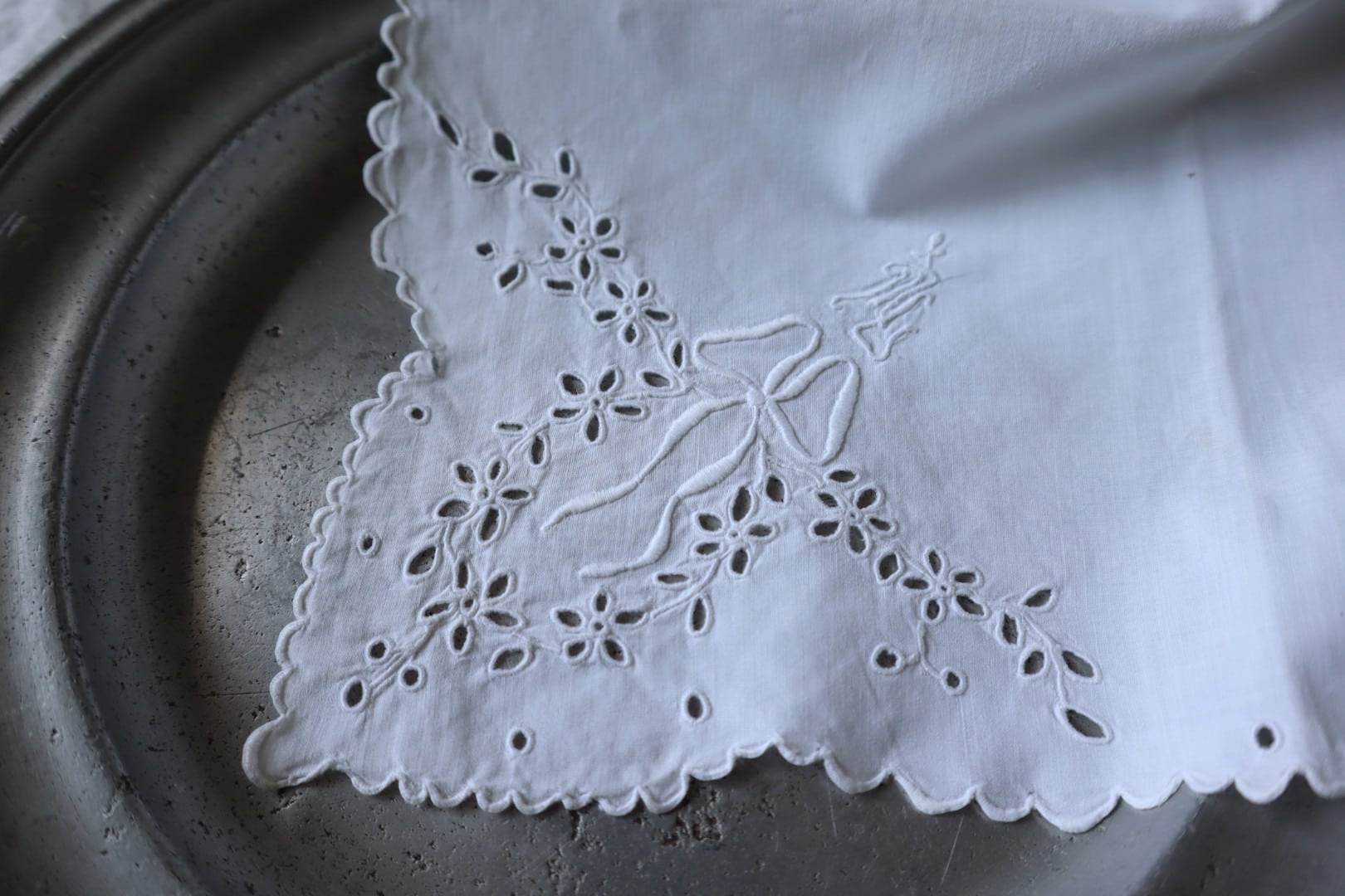 手仕事のカットワーク刺繍、リボン刺繍をお楽しみ下さい。