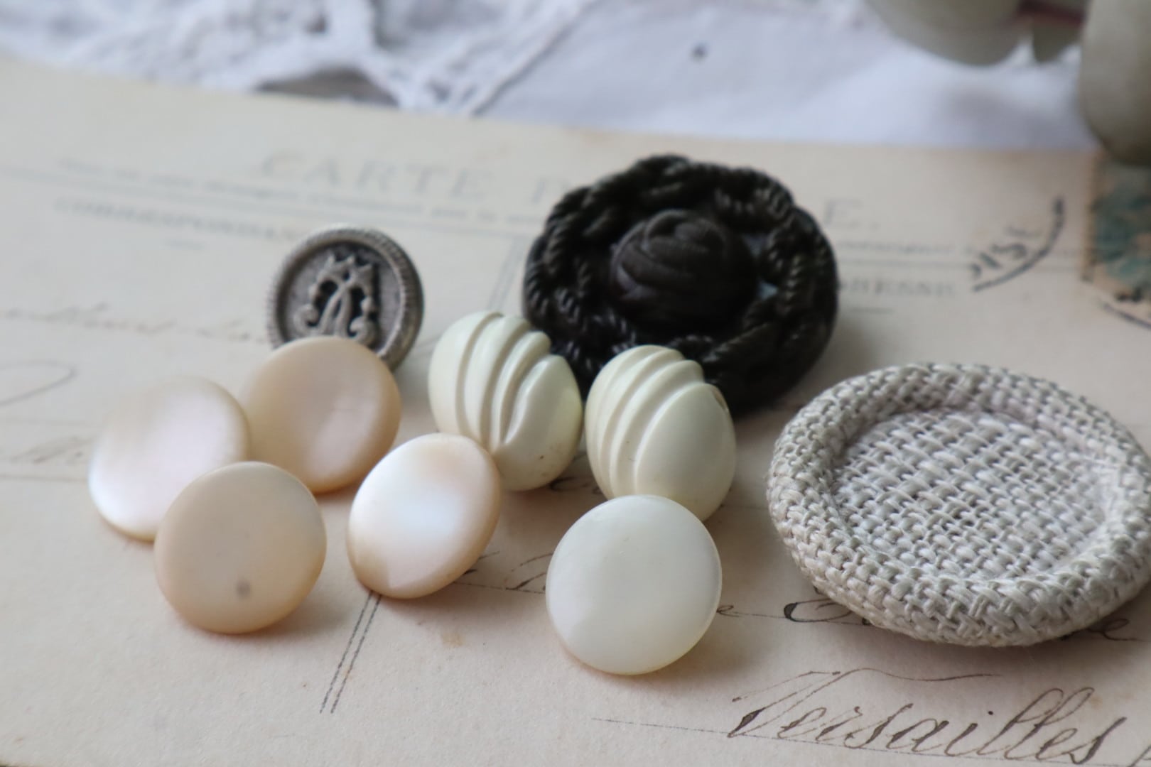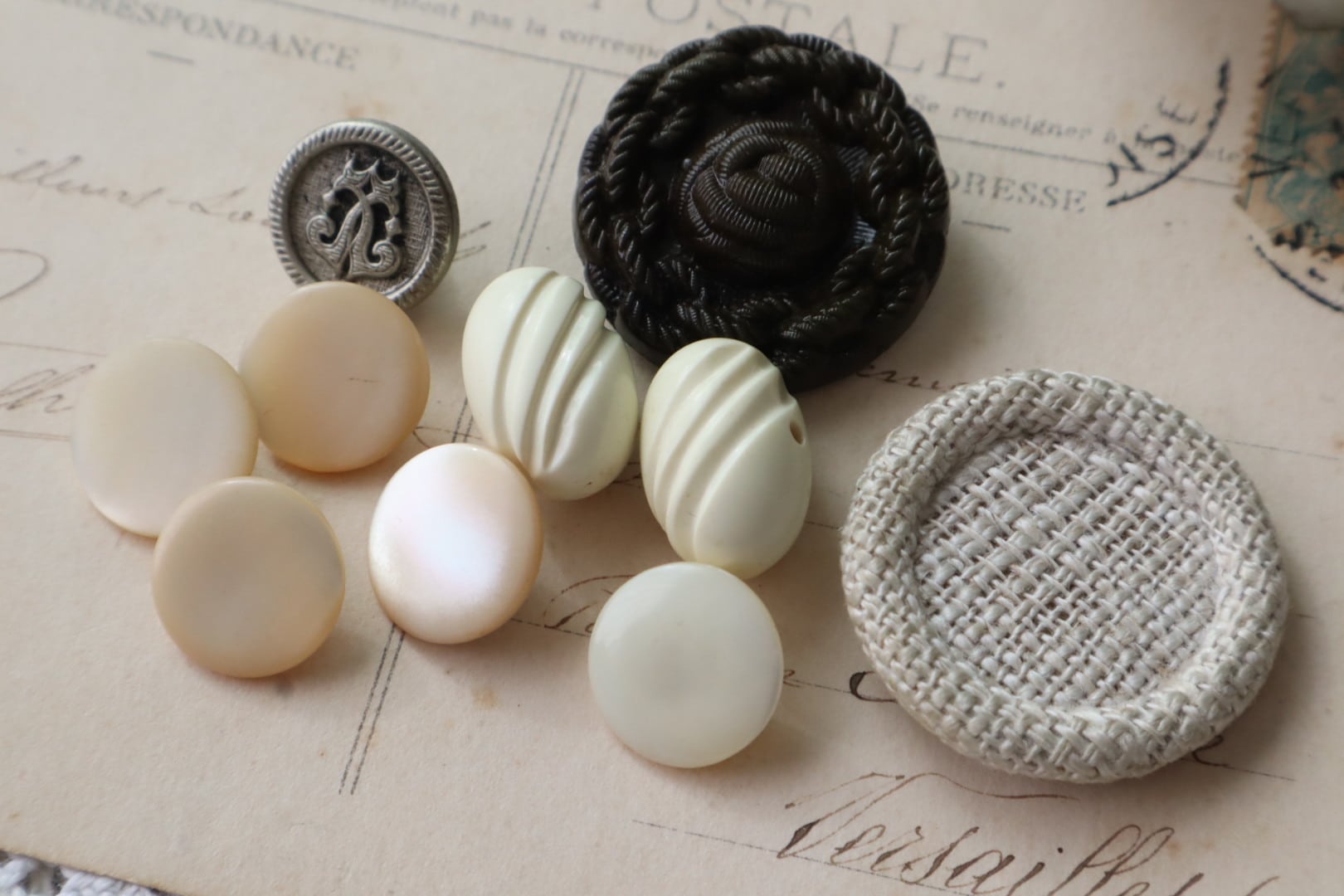 フラワーモチーフや貝などお洒落なフランスボタンです。