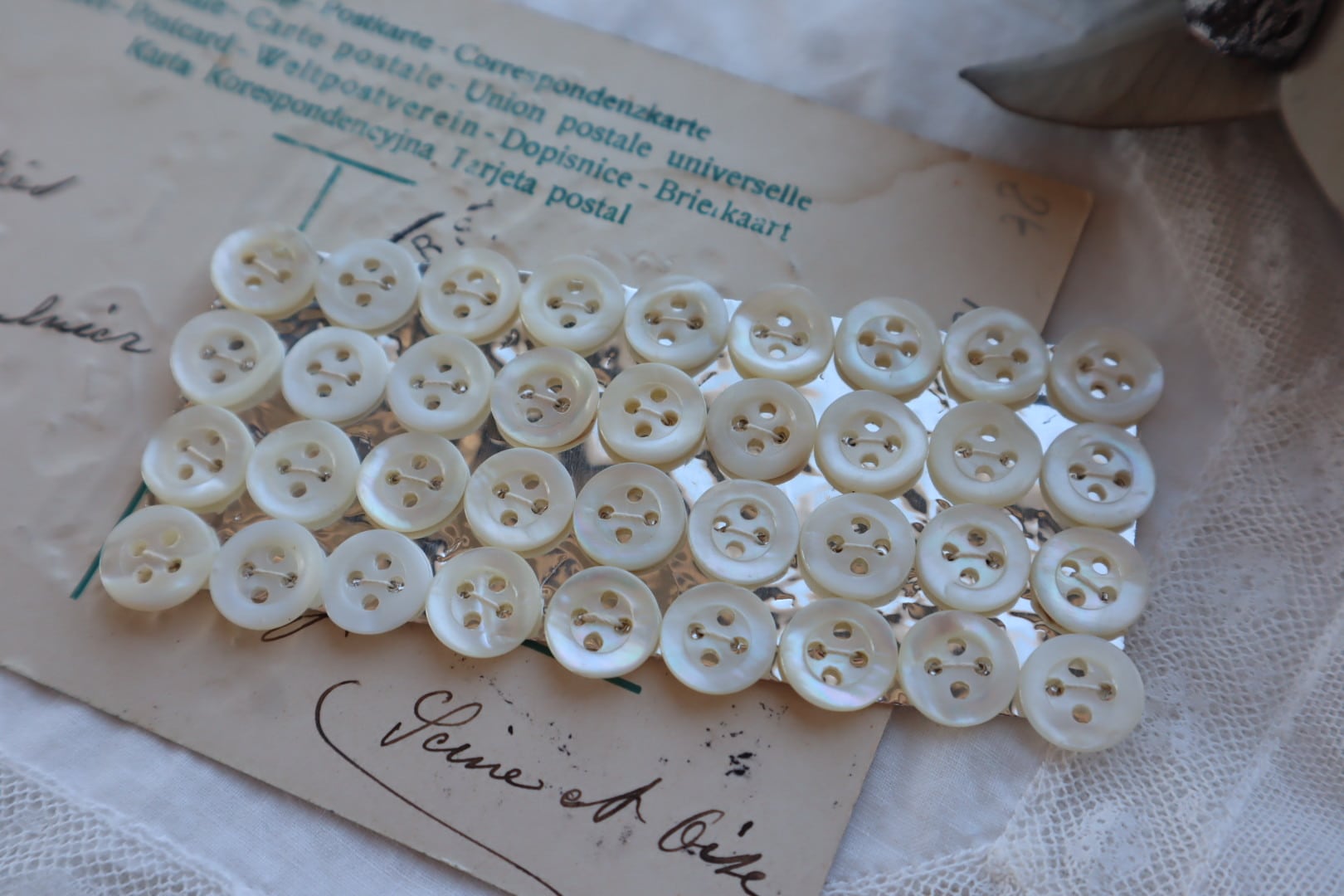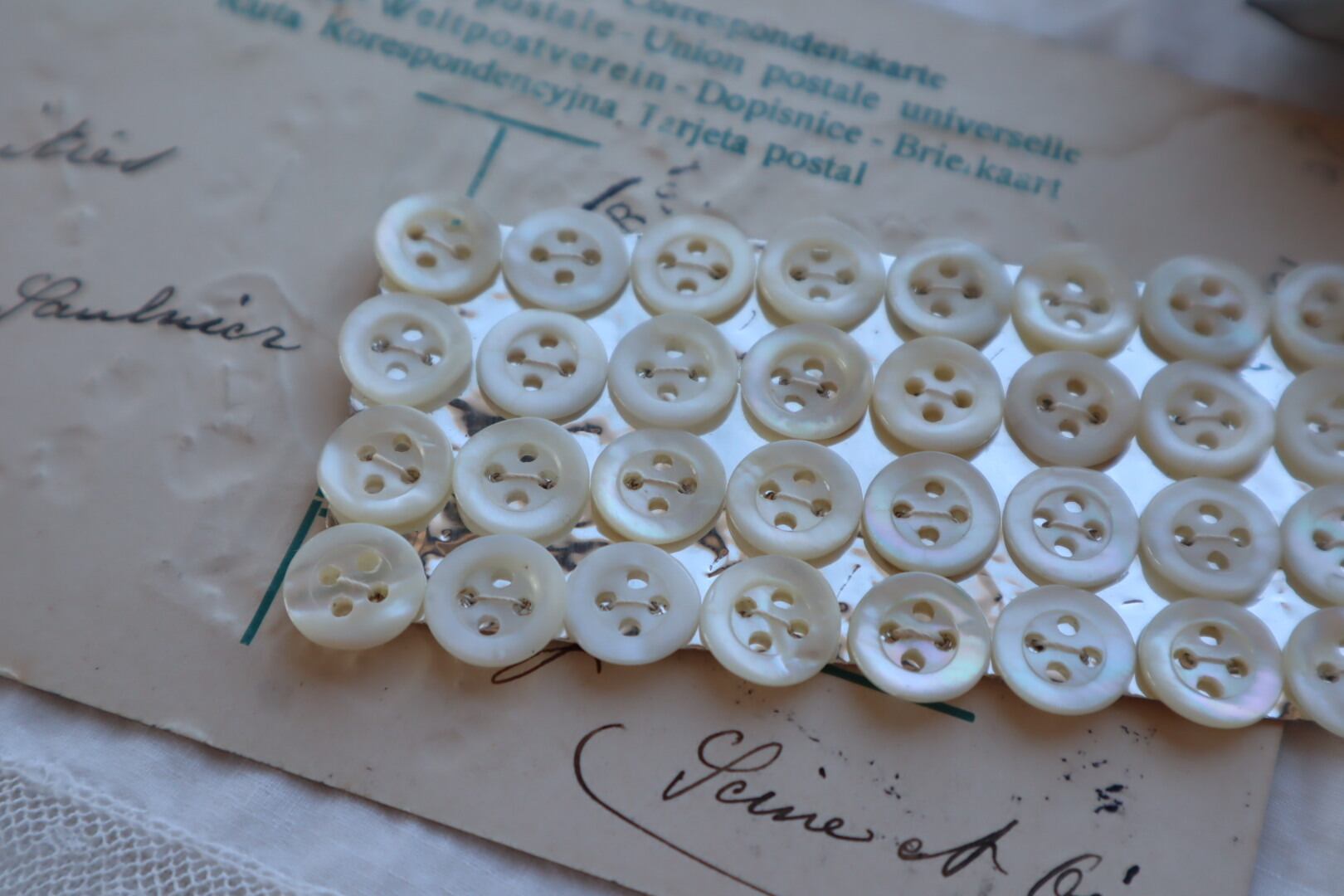 きらきら輝く貝ボタン36個のボタンシート
