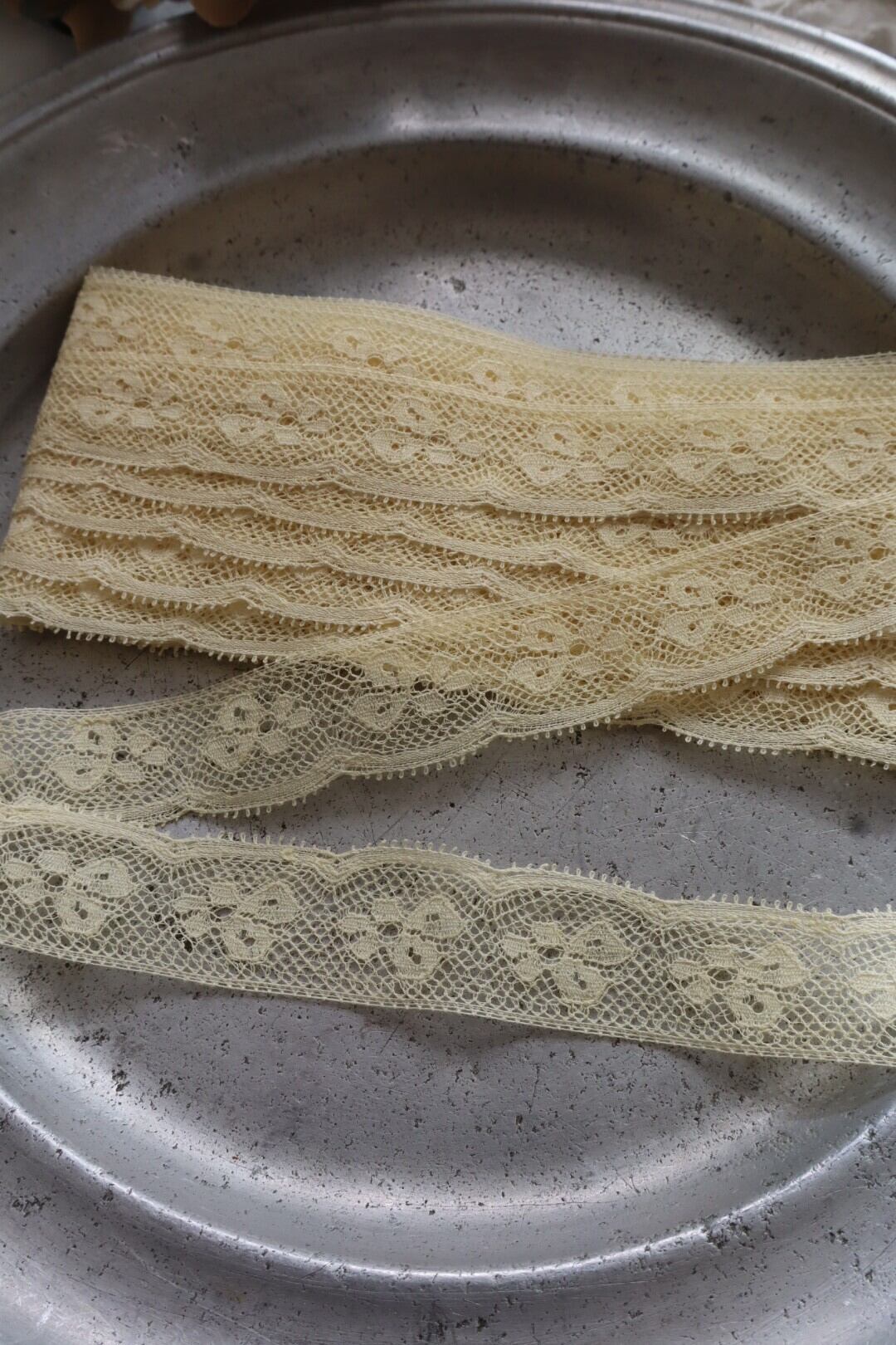 France製 80㎝ アンティーク花柄レース C1107 イエロー