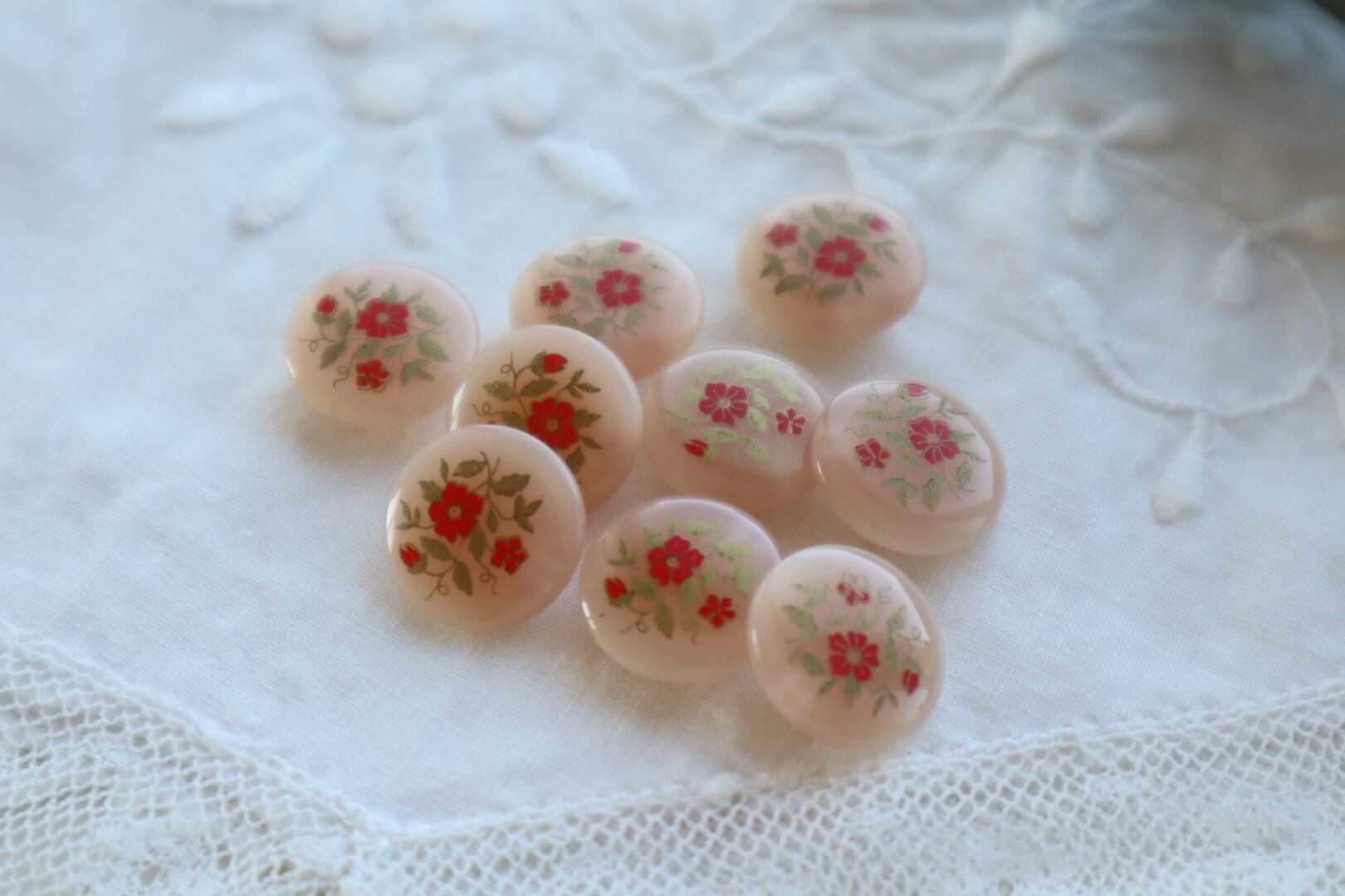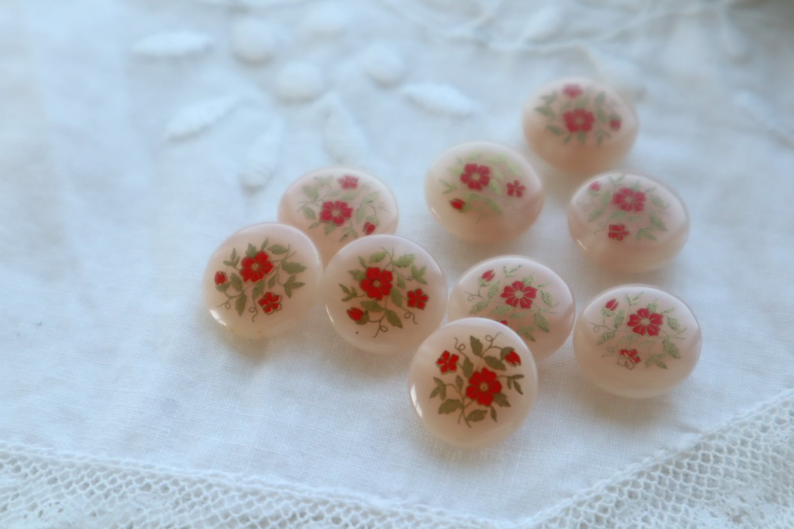 France製2個 12㎜ ヴィンテージ花柄ボタン A1907 ピンクベージュ