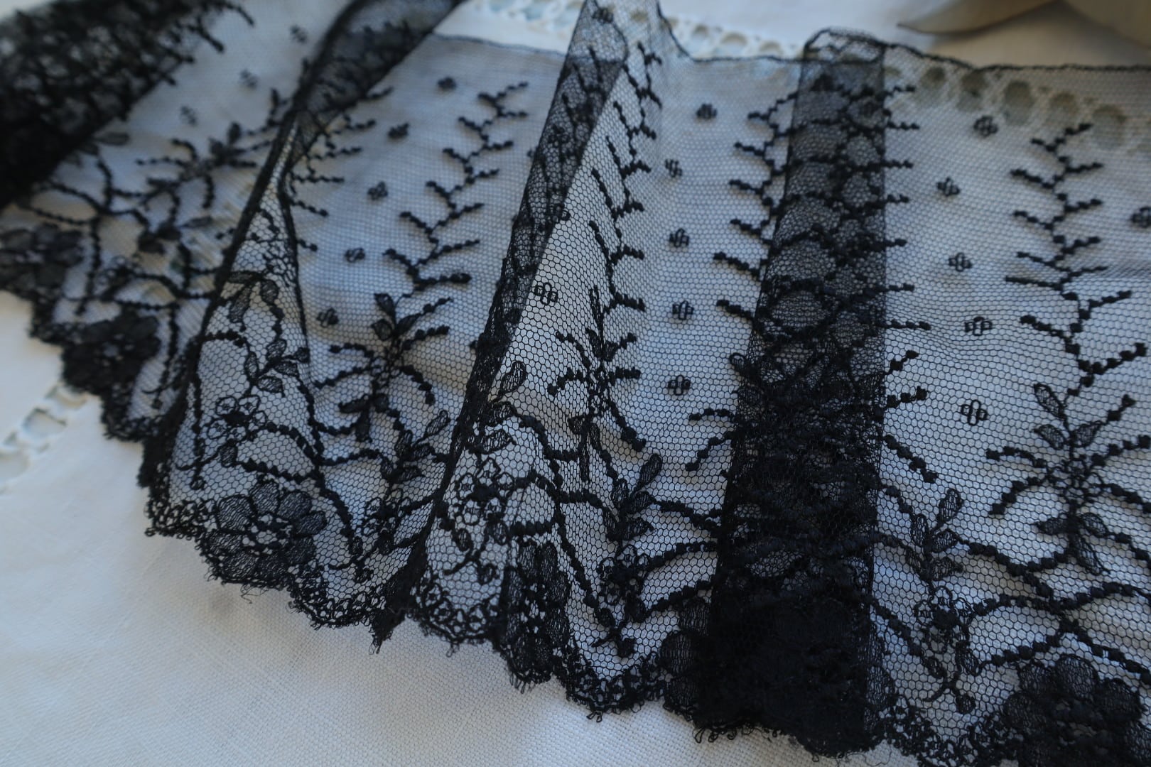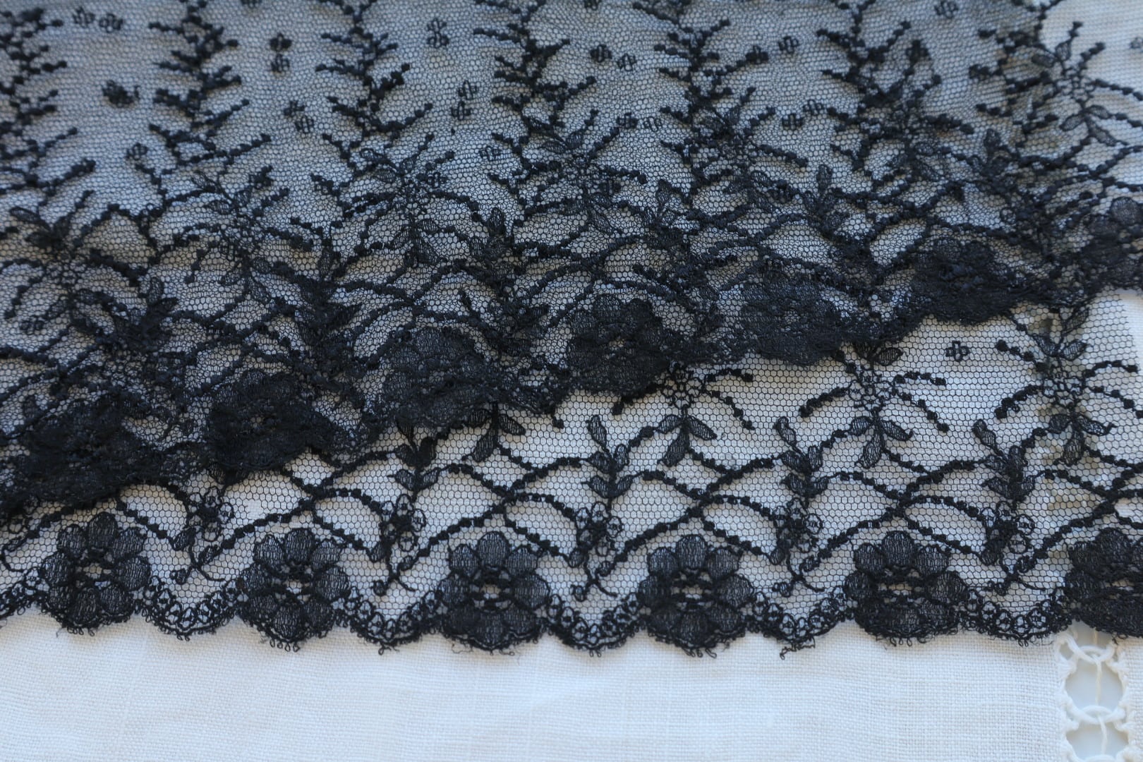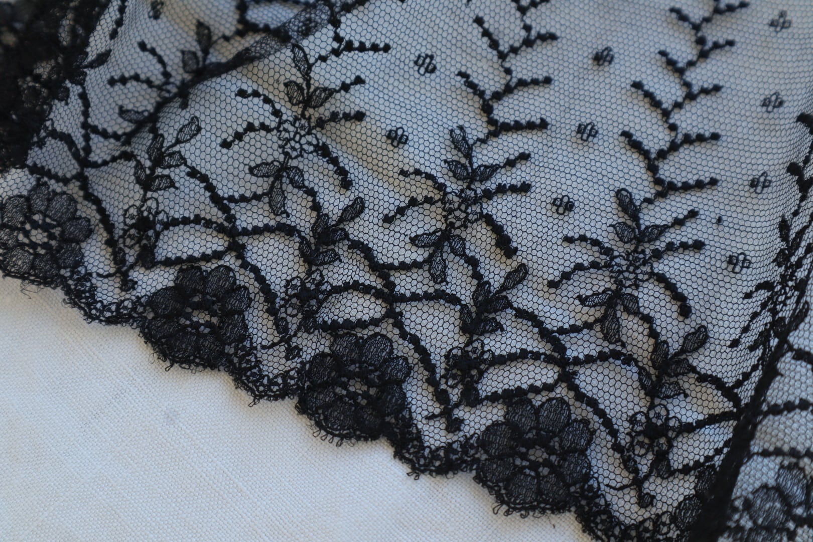 France製 55㎝ アンティーク黒レース 花柄 C1110