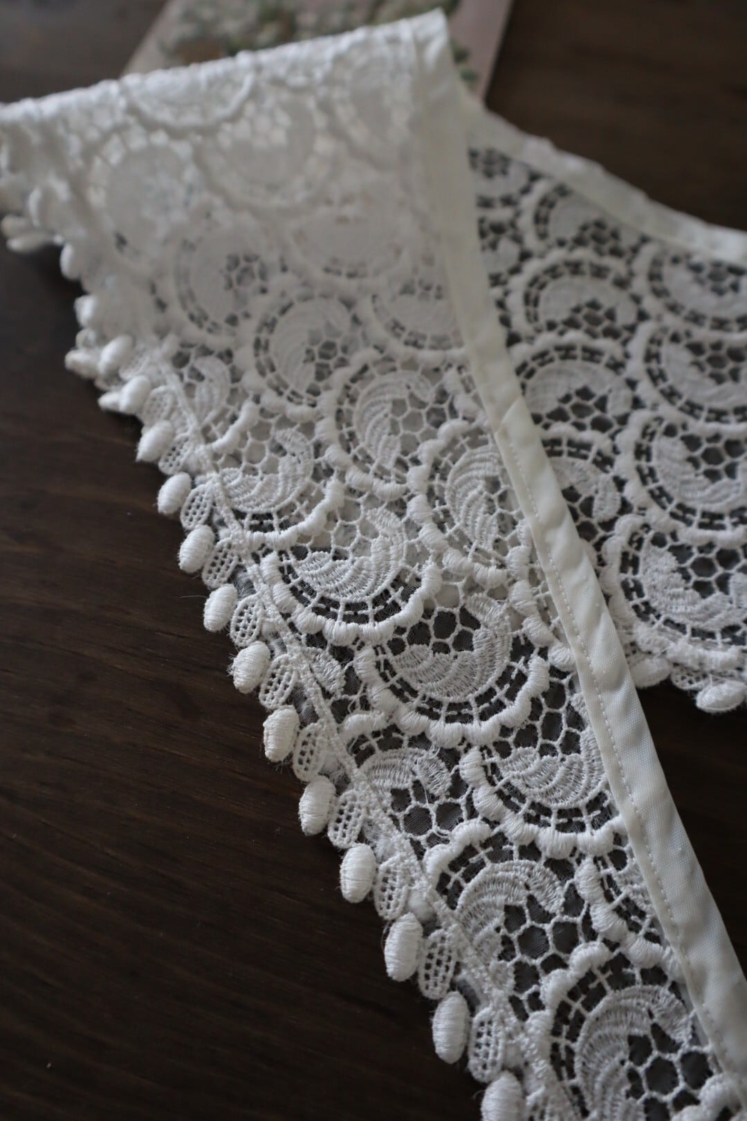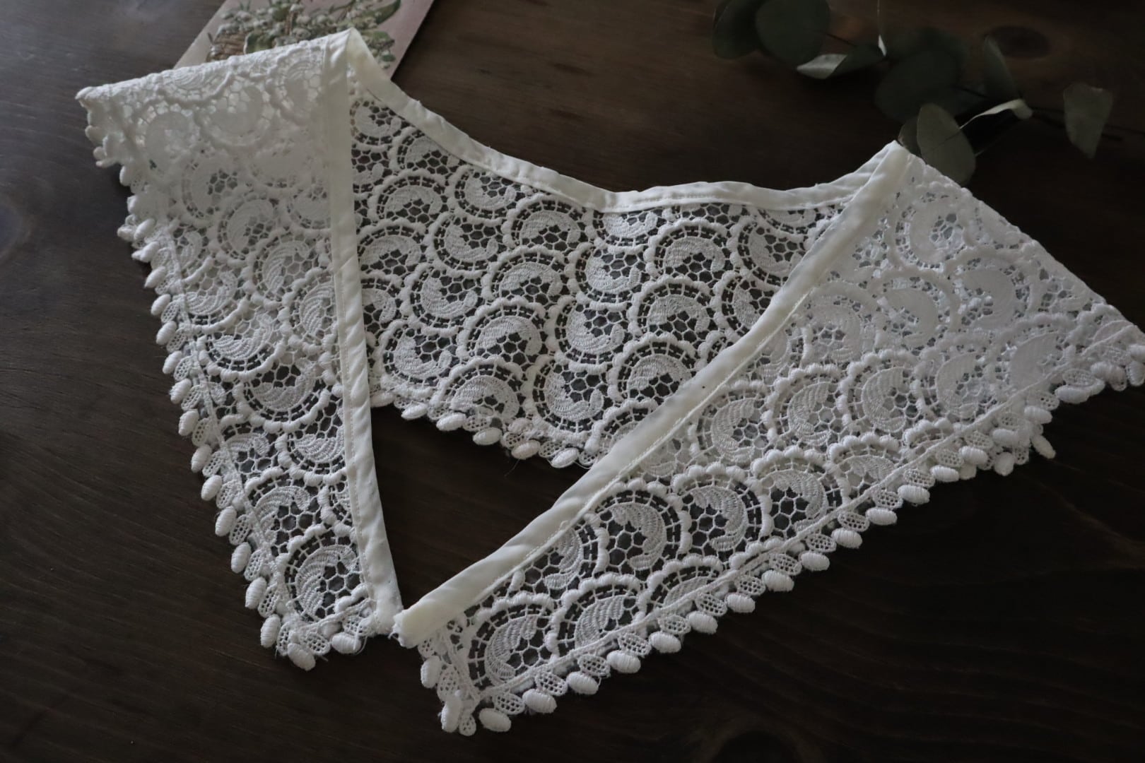 薄っすら透けるチュール生地に施した繊細な襟レース