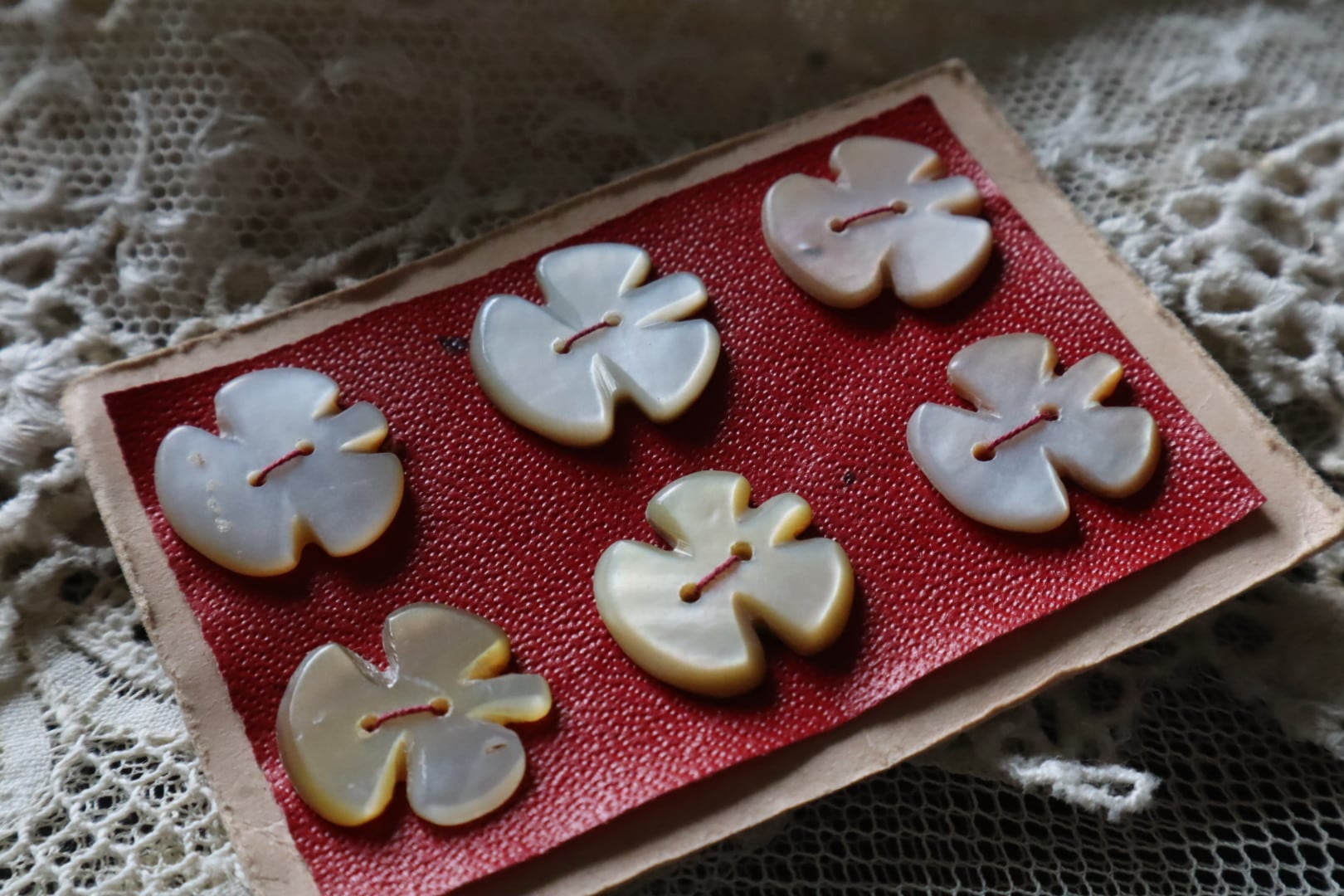 France製 16㎜ アンティークシェルボタン 6個シート A1915 グレー
