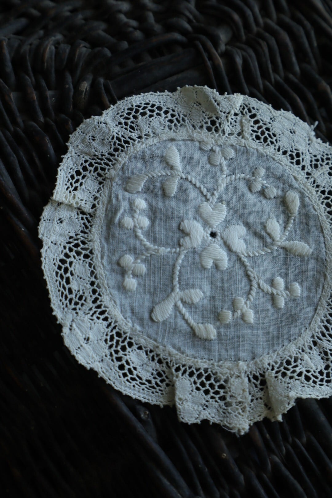 France製 8.5㎝ アンティーク刺繍モチーフ B1017 ホワイト