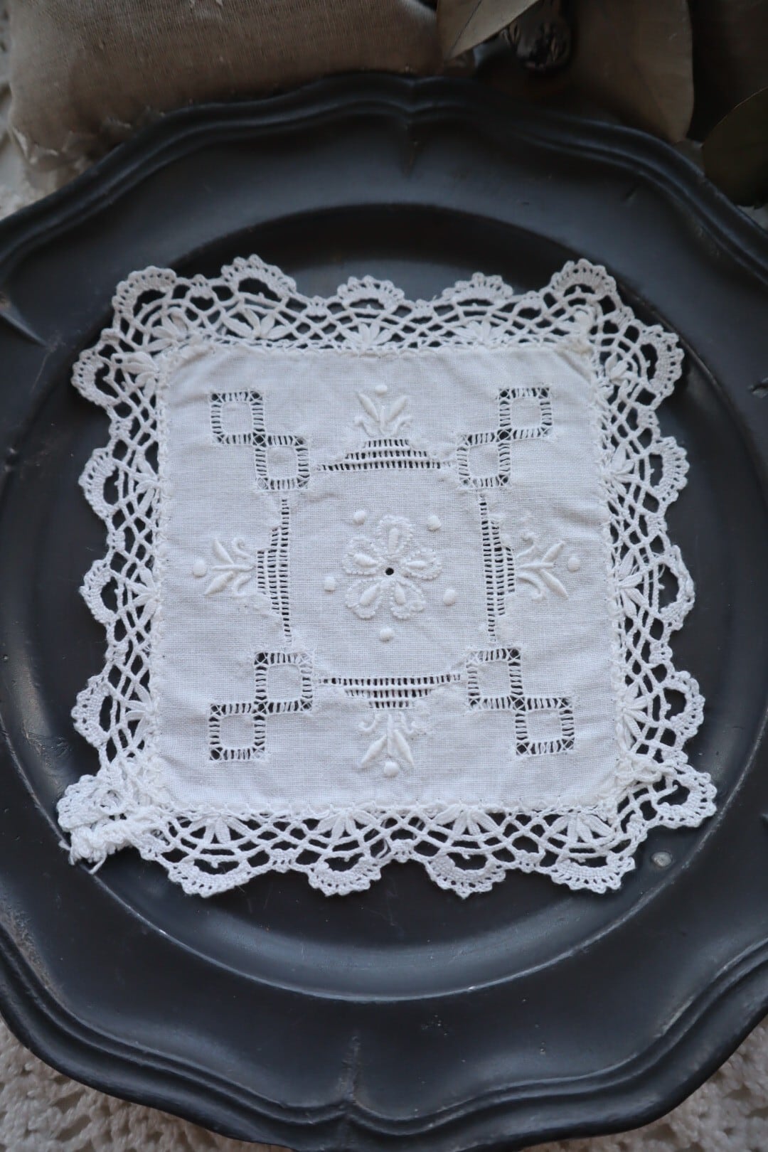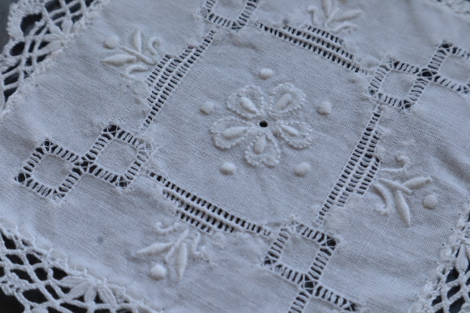 France製 13㎝ アンティークレースドイリー B1030 ホワイト