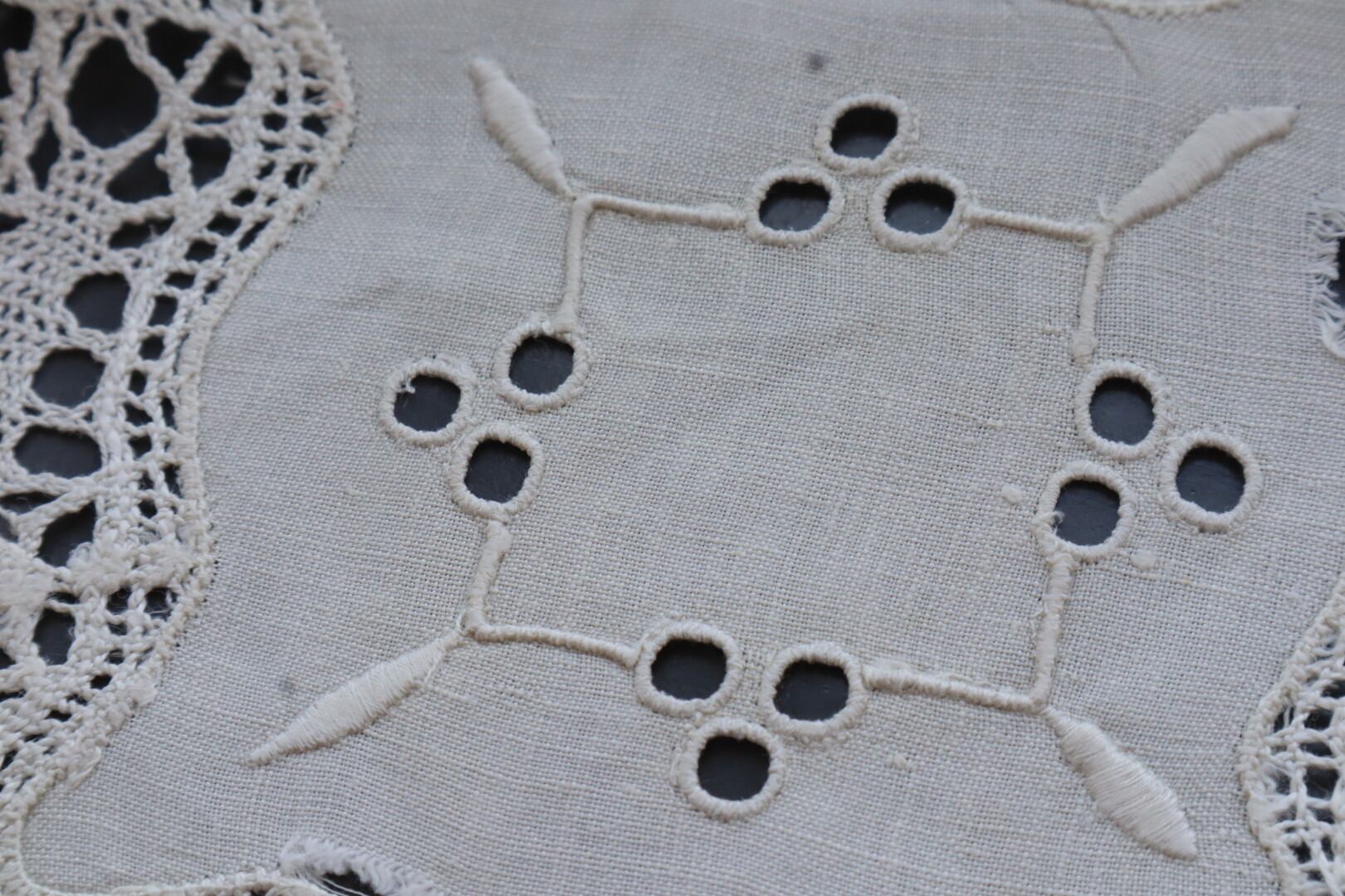 France製 15㎝ アンティーク刺繍ドイリー B1031 アイボリー