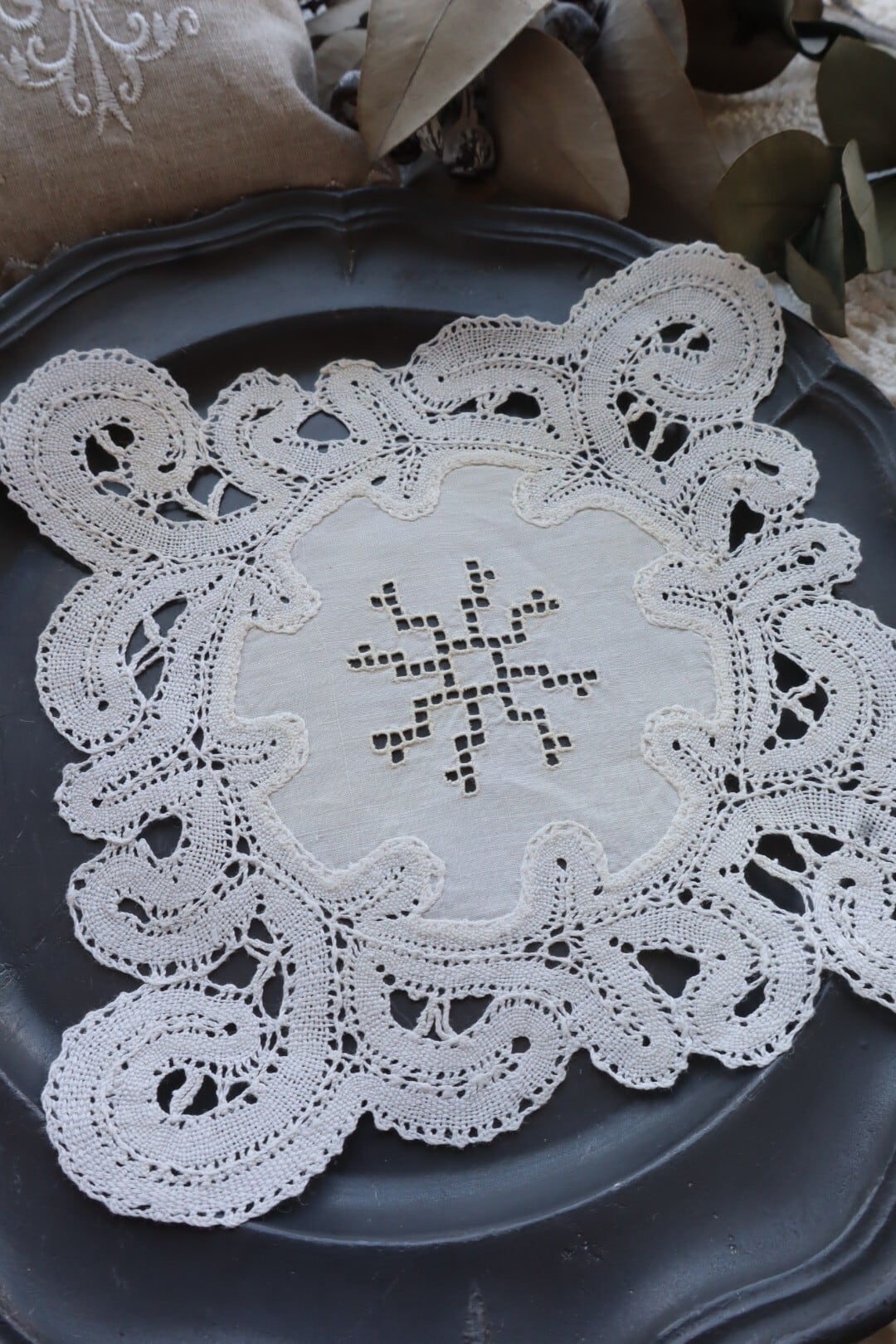 リネン生地に施されたカットワーク刺繍の素敵なドイリー
