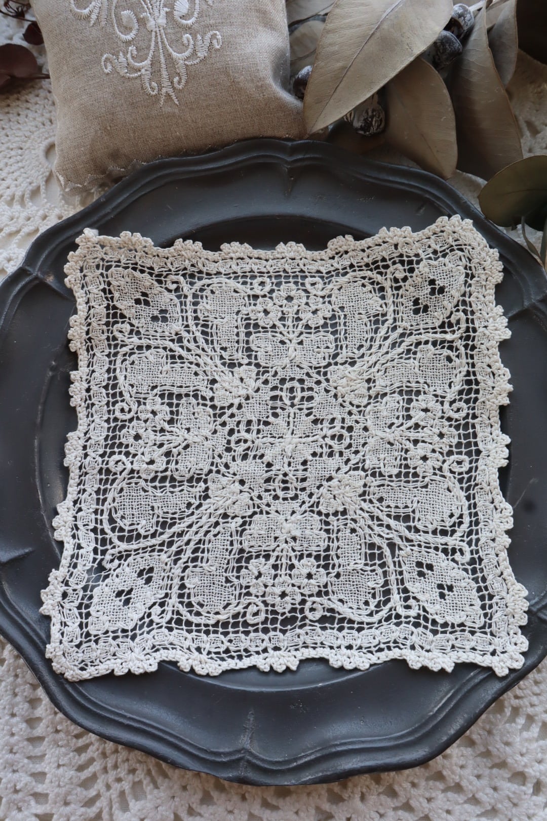 France製 15㎝ アンティーク刺繍レースドイリー B1033 生成り