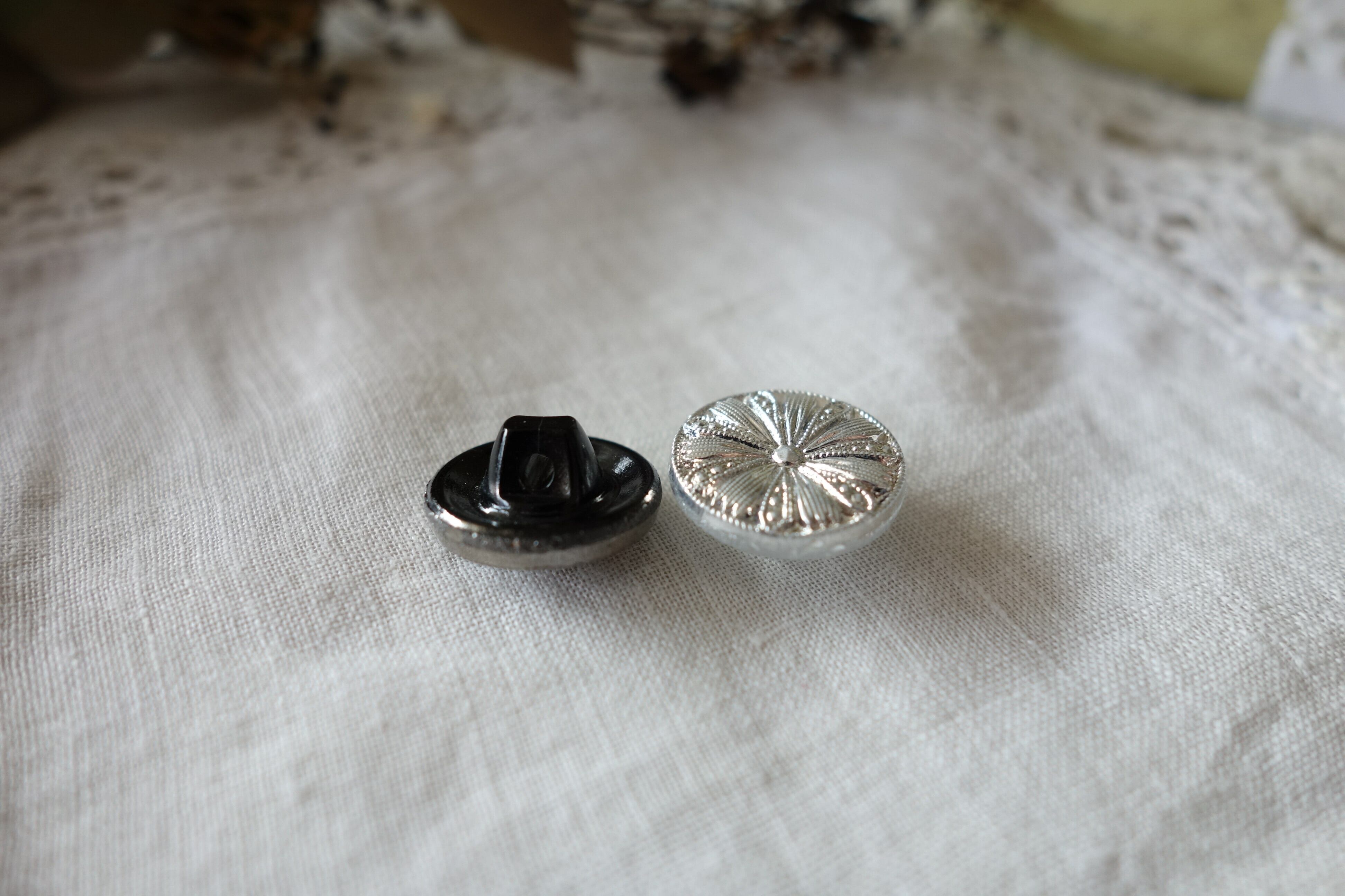 プチ2個セット アンティークガラスボタン A187 シルバー