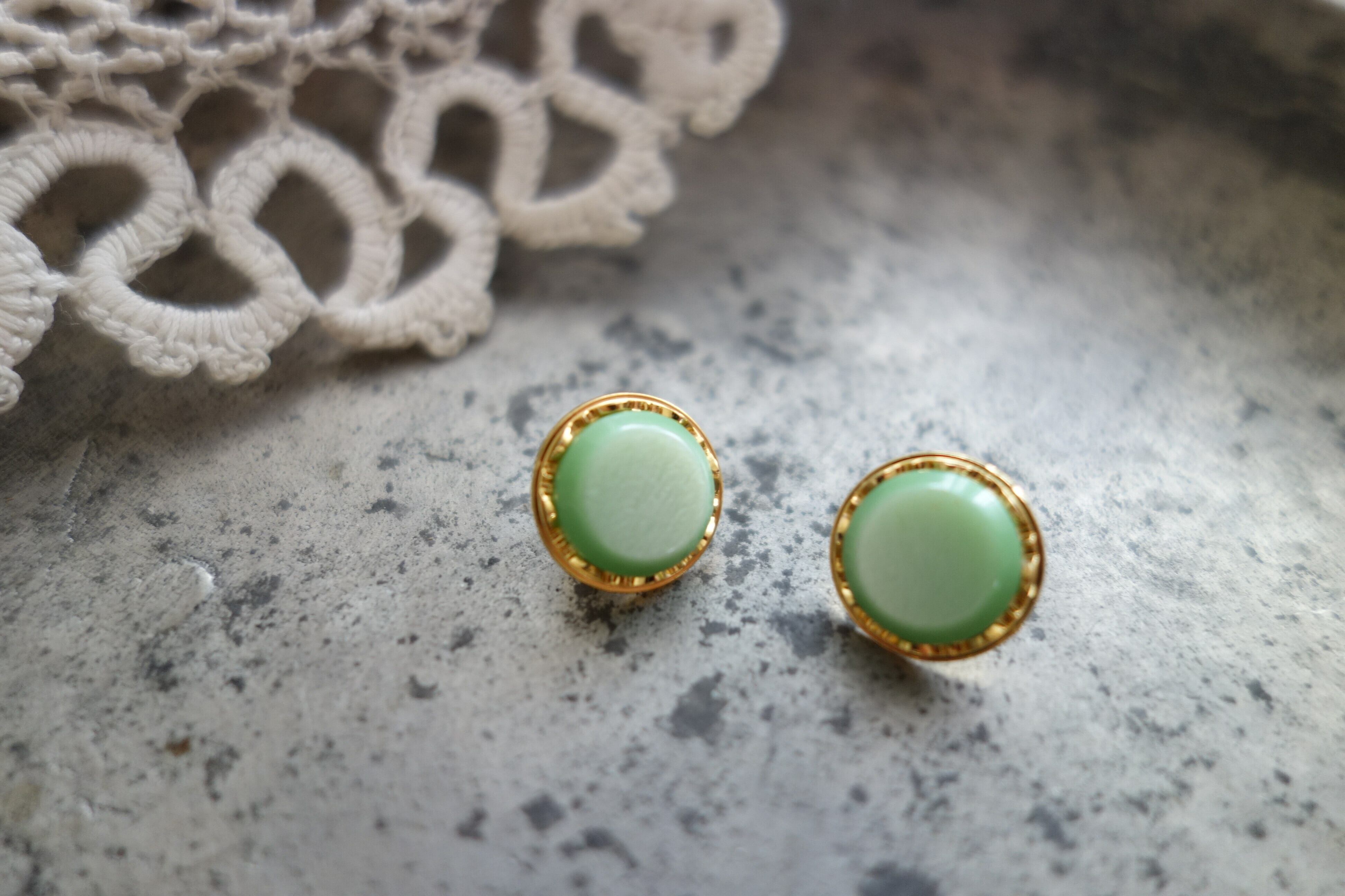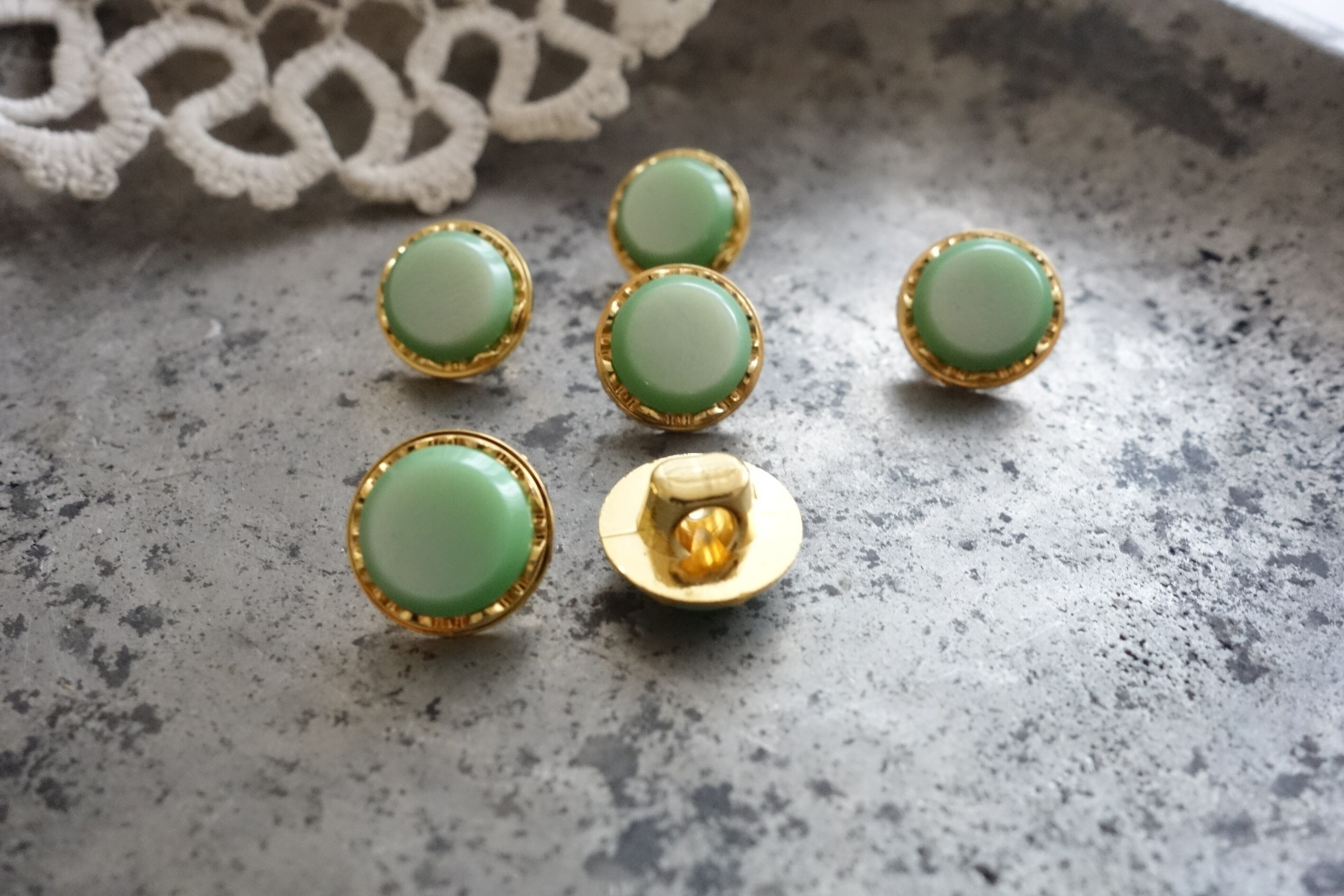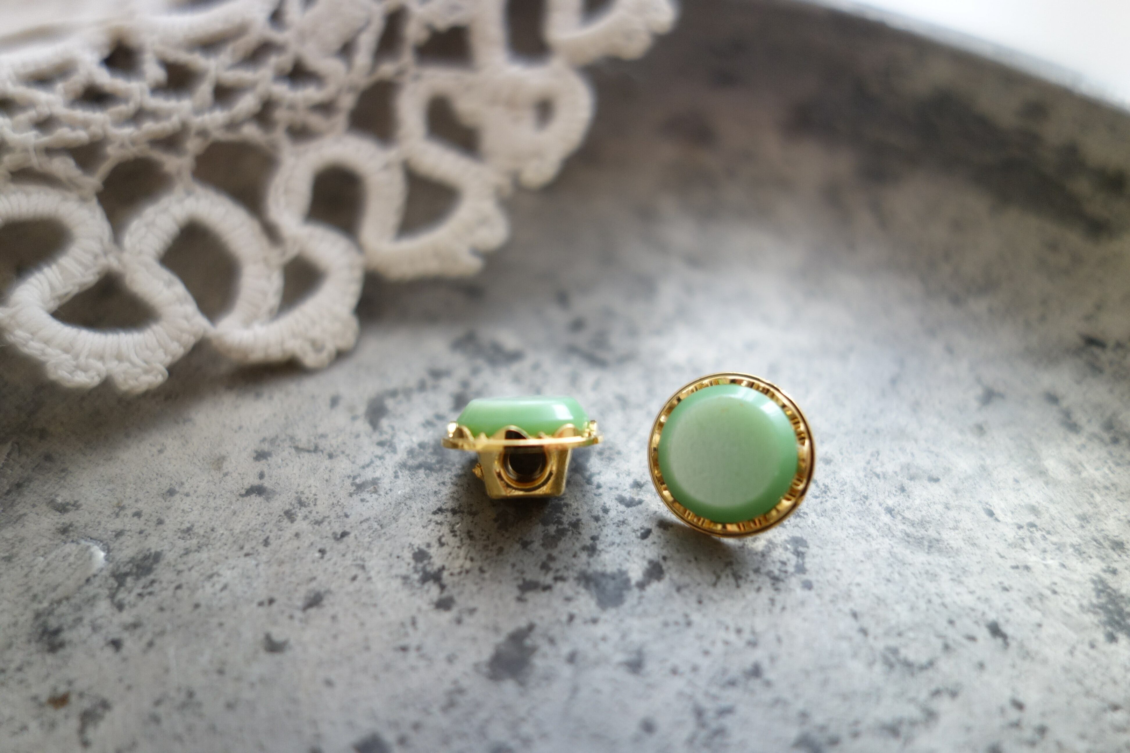 フランス 2個 ブロカント未使用ボタン A224 グリーン