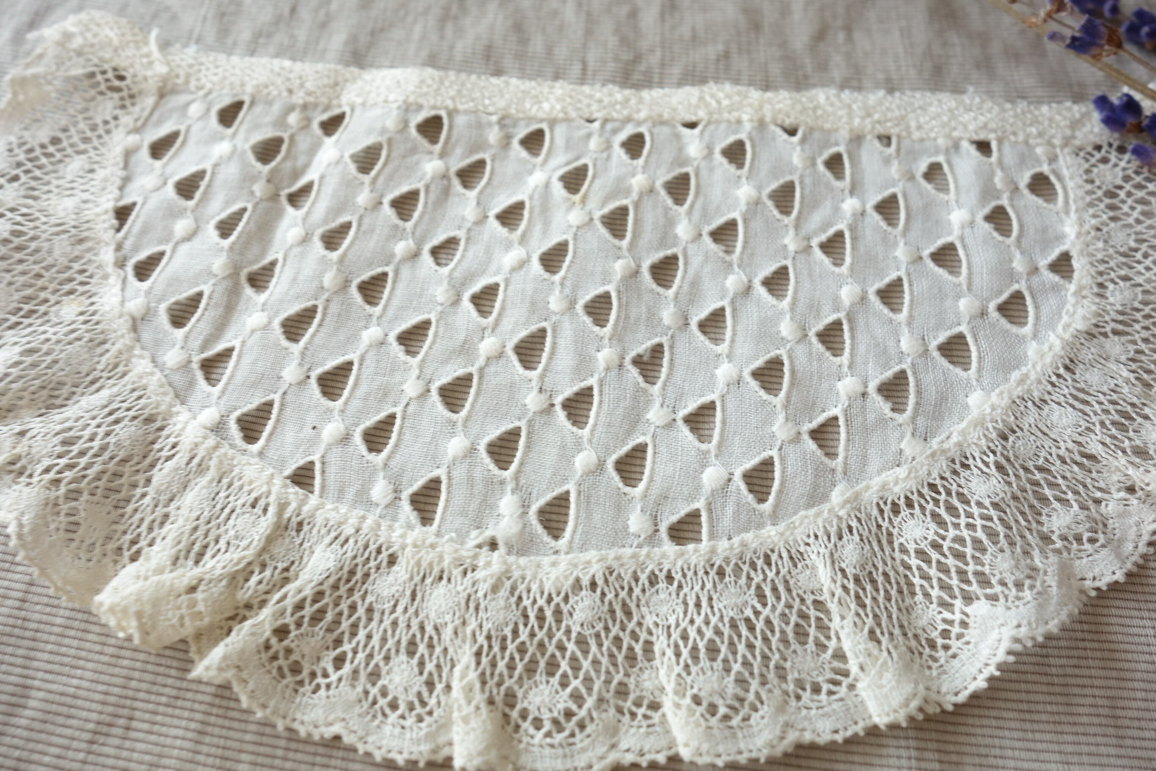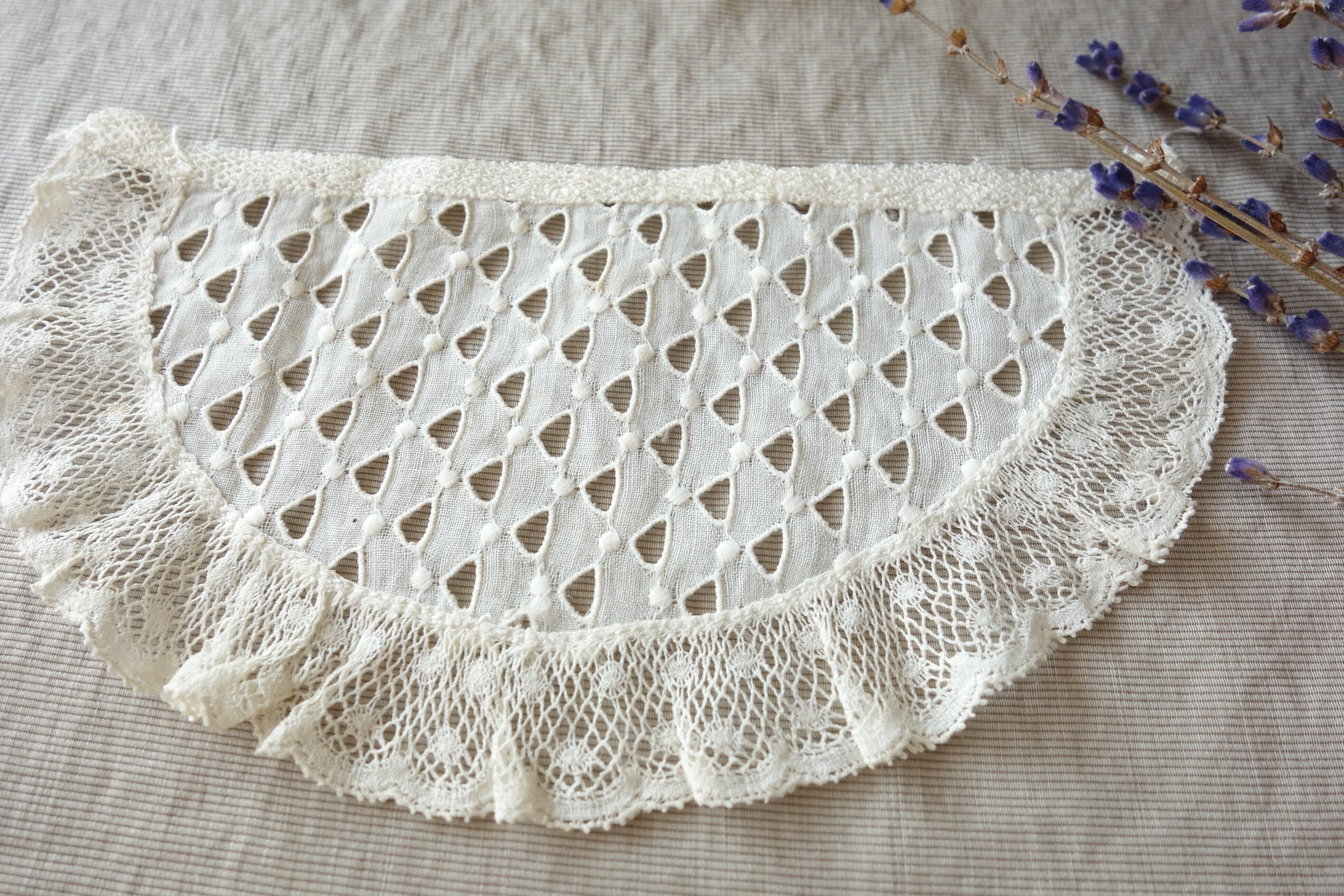 フランス 半円 アンティークレース C031 アイボリー