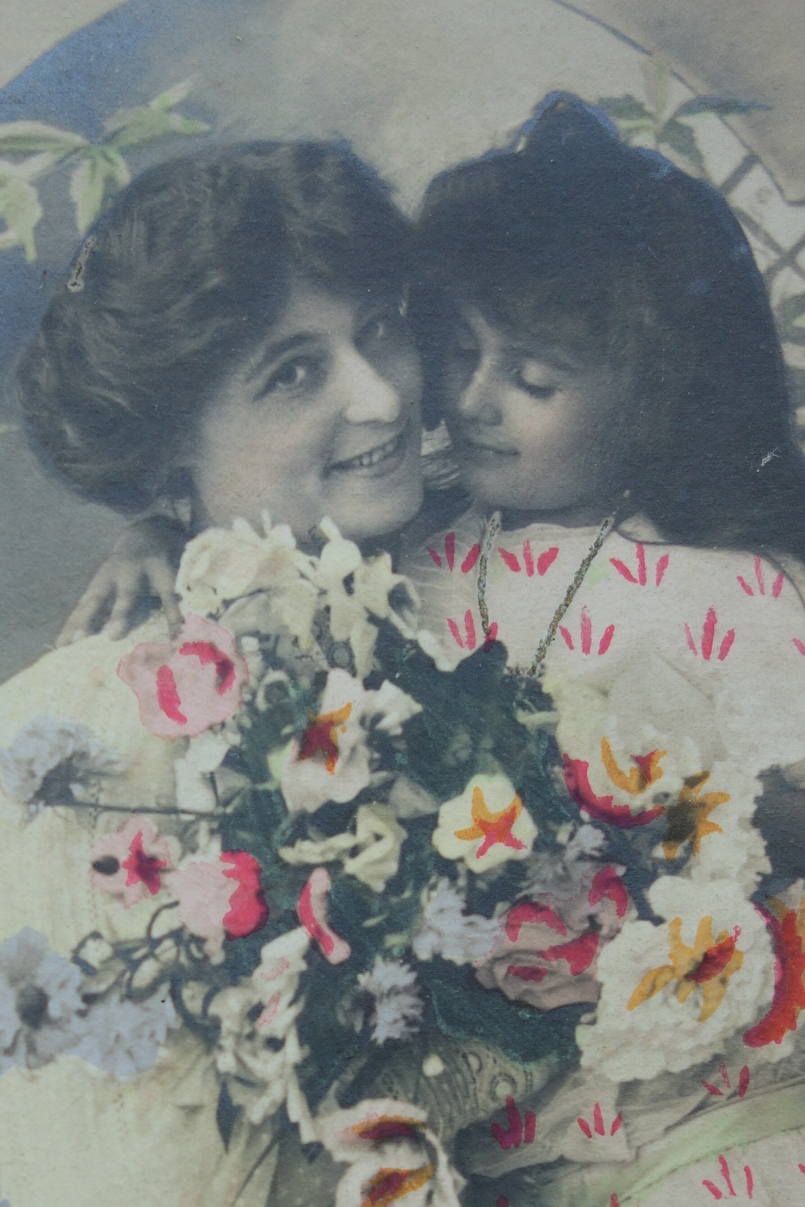 ポストカード 母娘と花束 D045