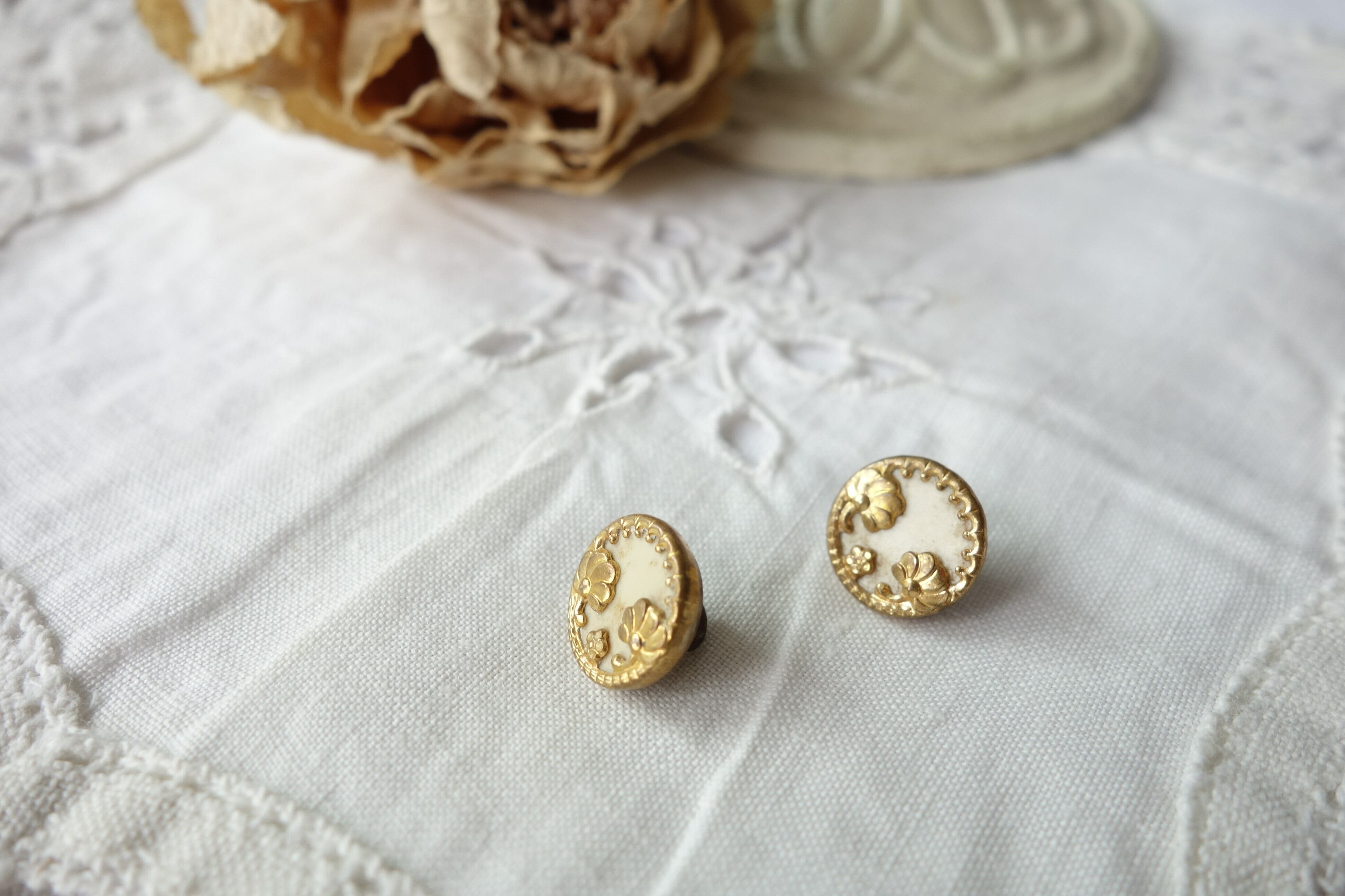 アイボリーにアールヌーヴォーの特徴である花や植物モチーフが装飾されたゴールドの枠。