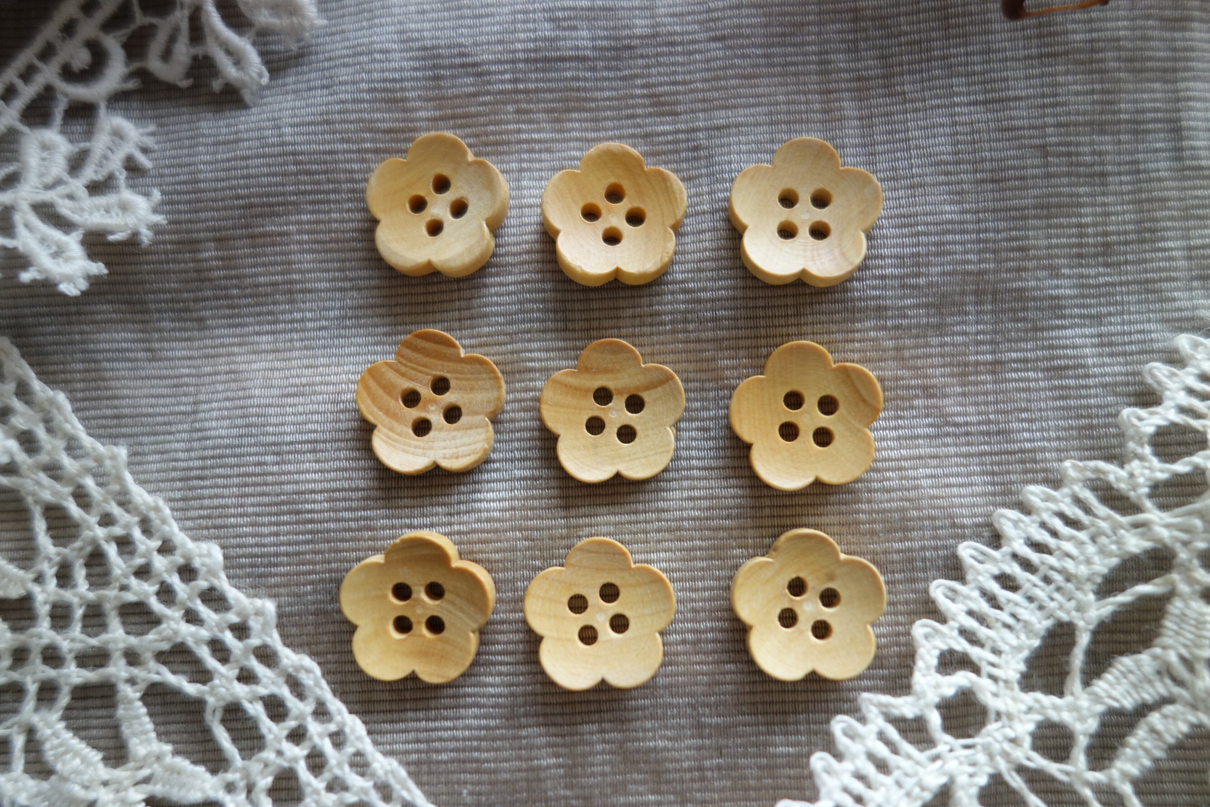 2個 花形ヴィンテージ木製ボタン A299