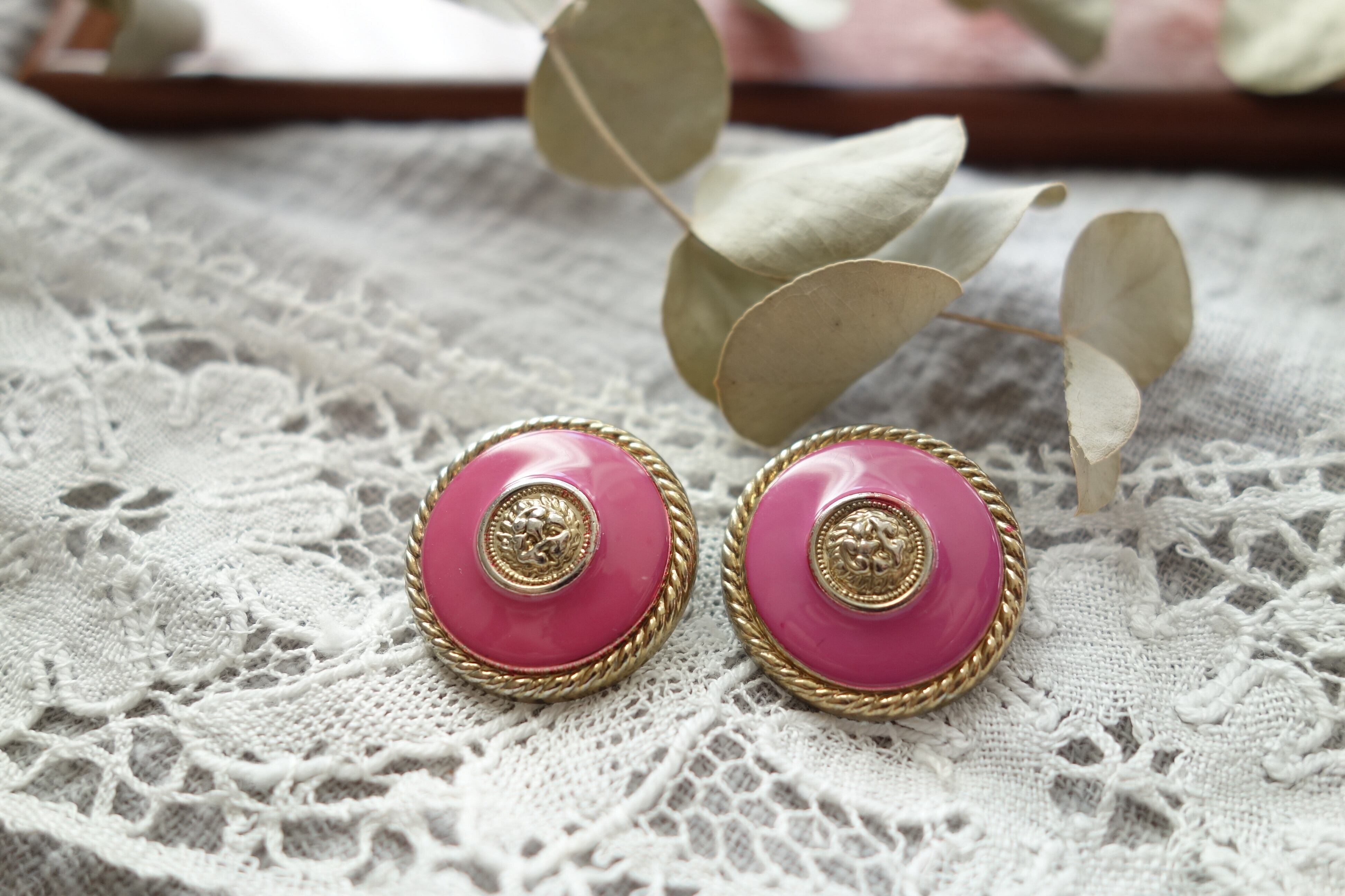 ポンパドールピンク(大) アンティークボタン A359