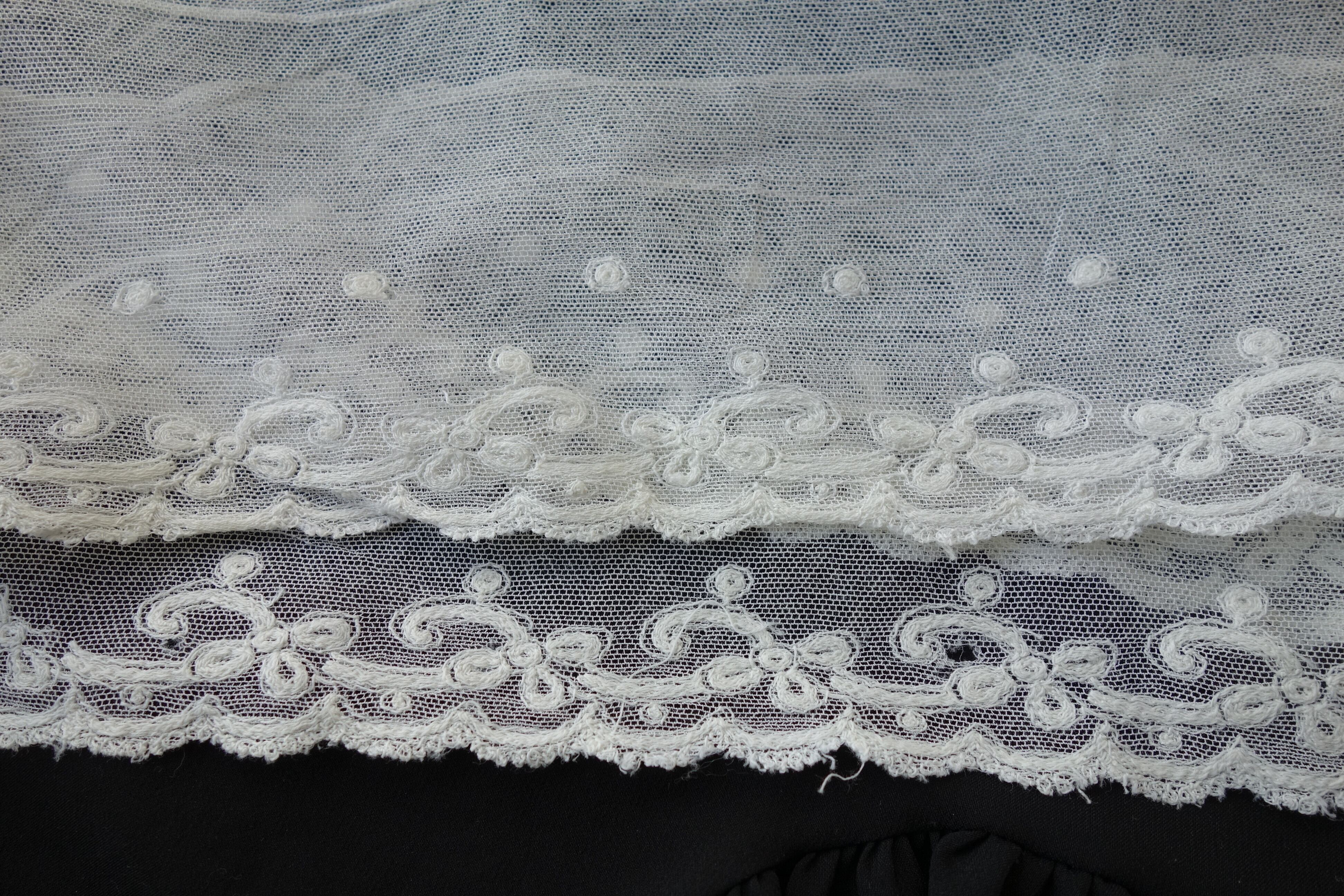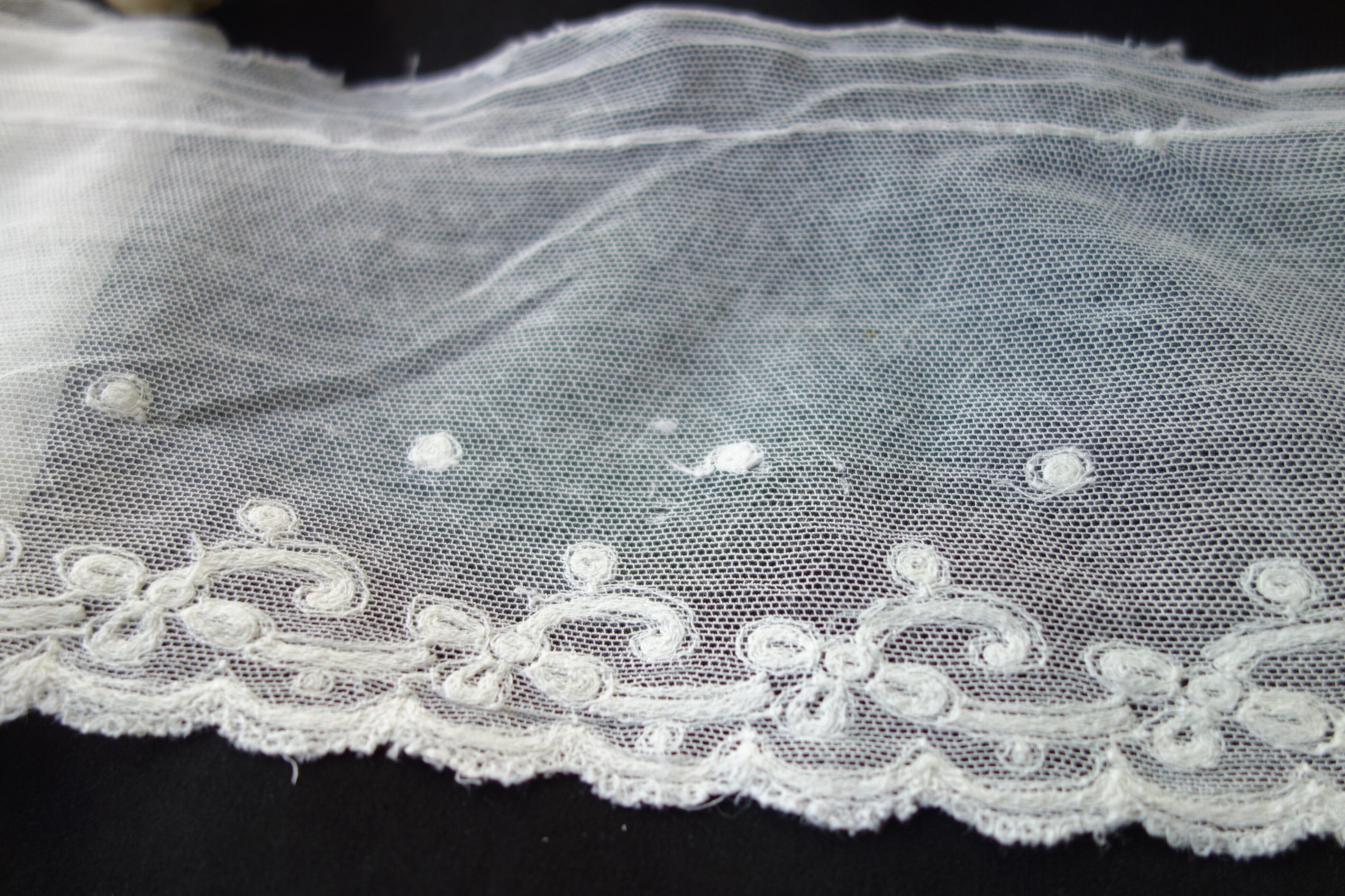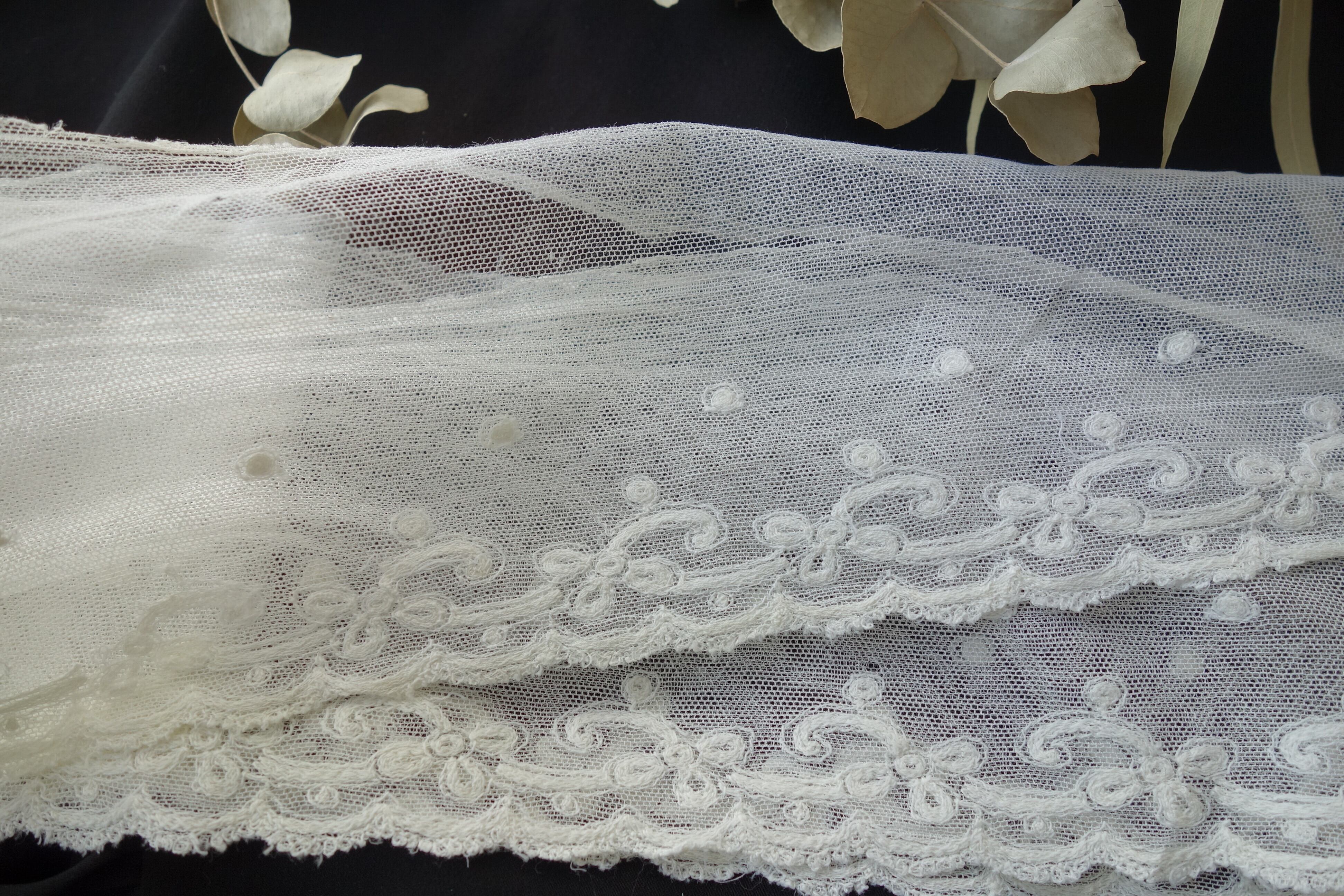 小さなモチーフのリールステッチが可愛らしい上品なアンティークレースです。