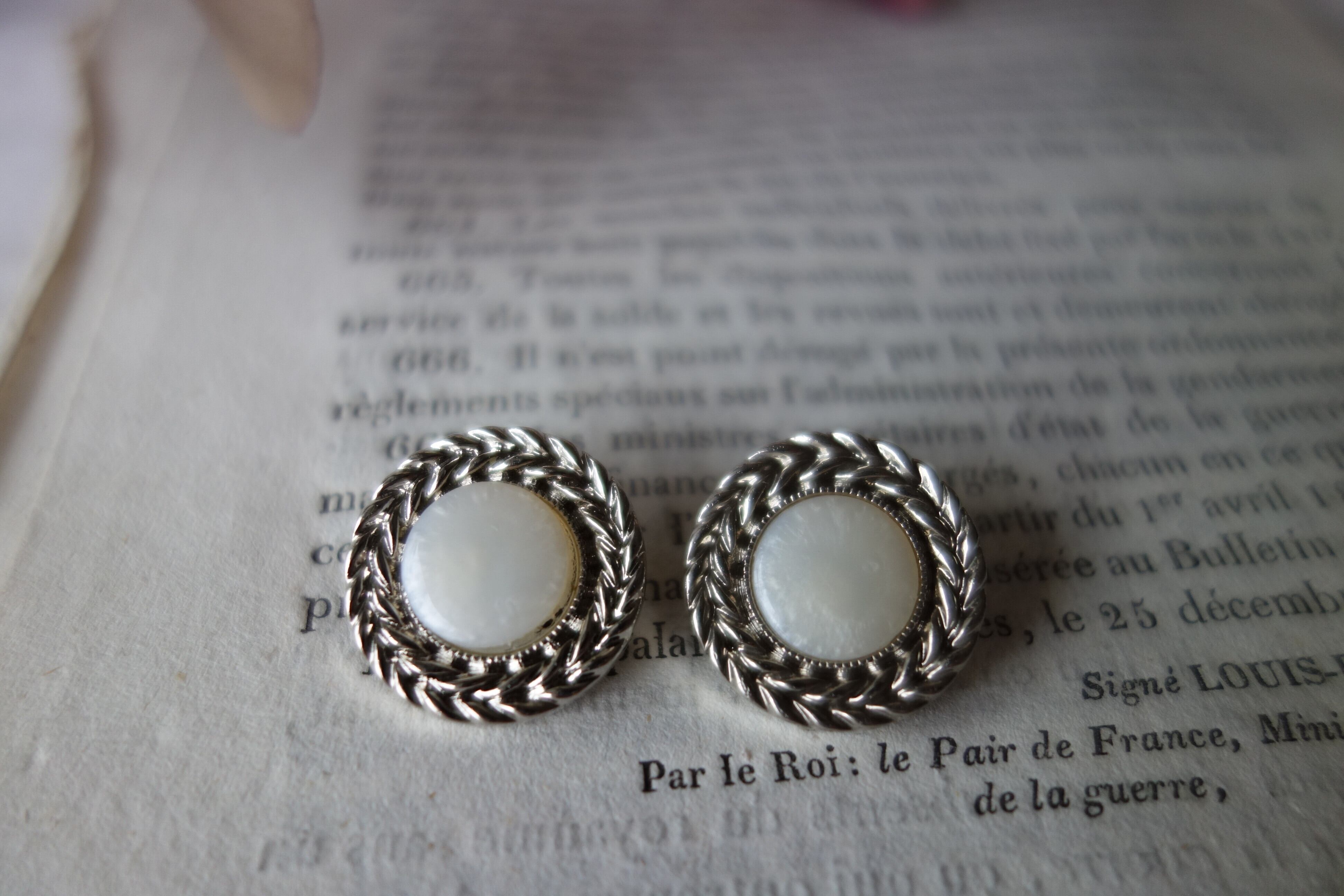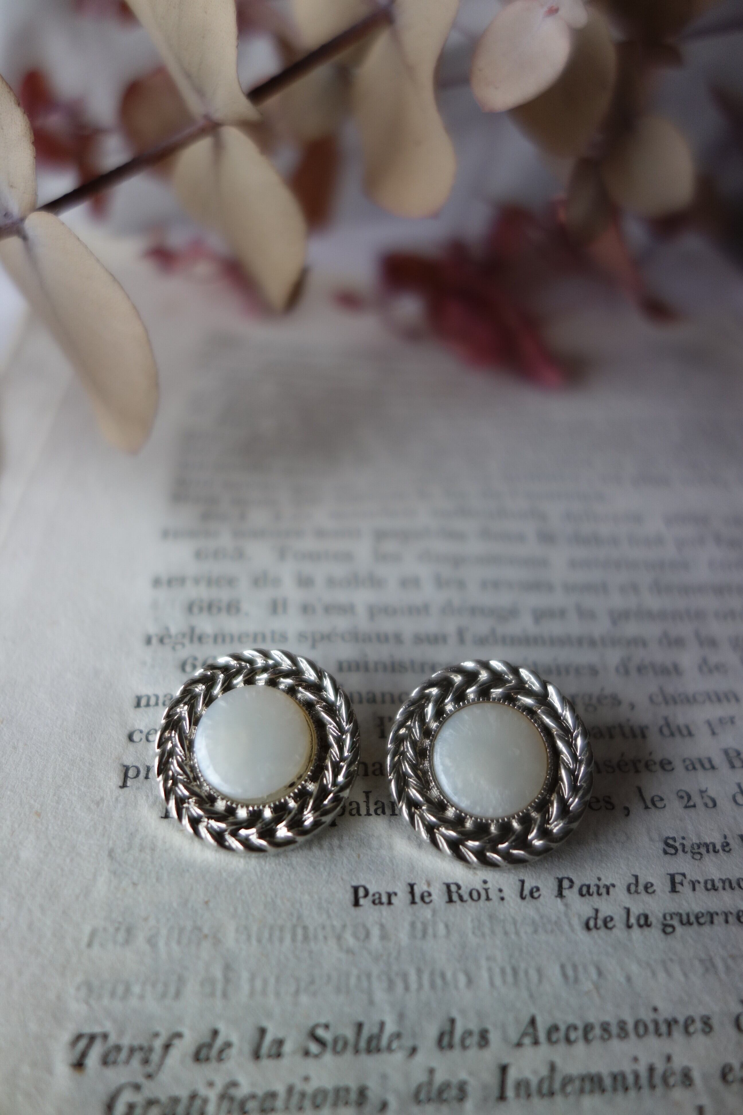 植物リーフ柄 アンティークボタン A394 シルバー