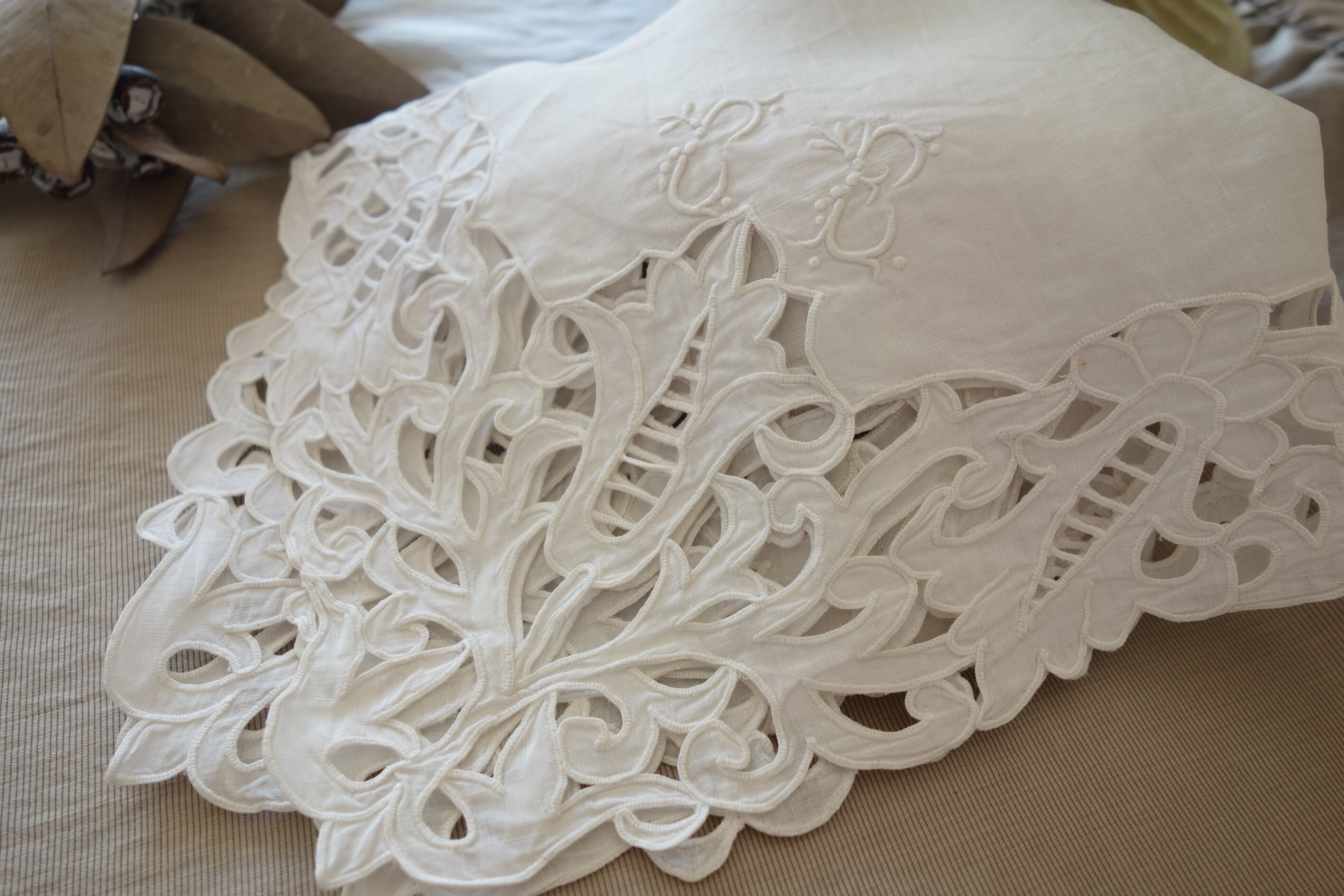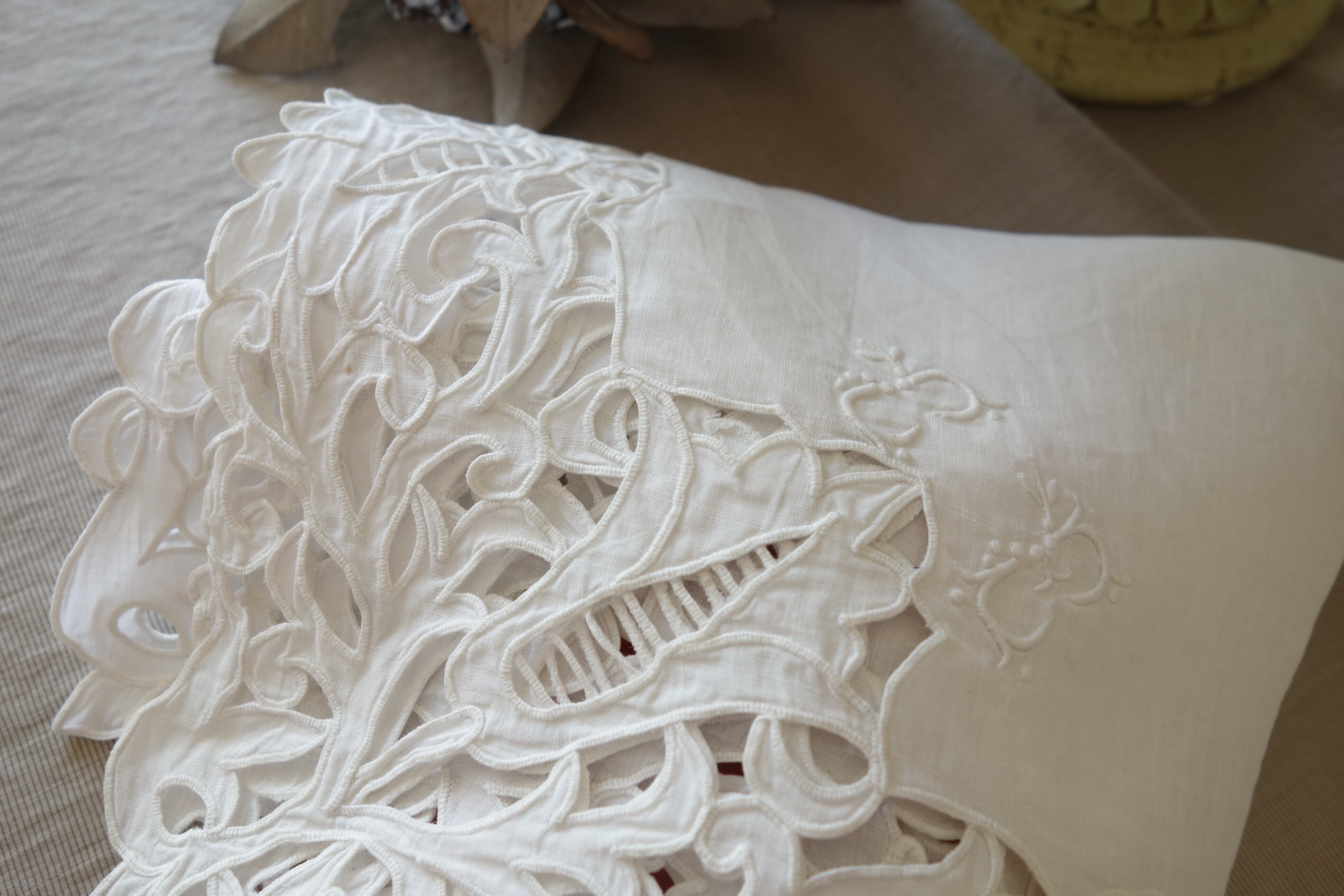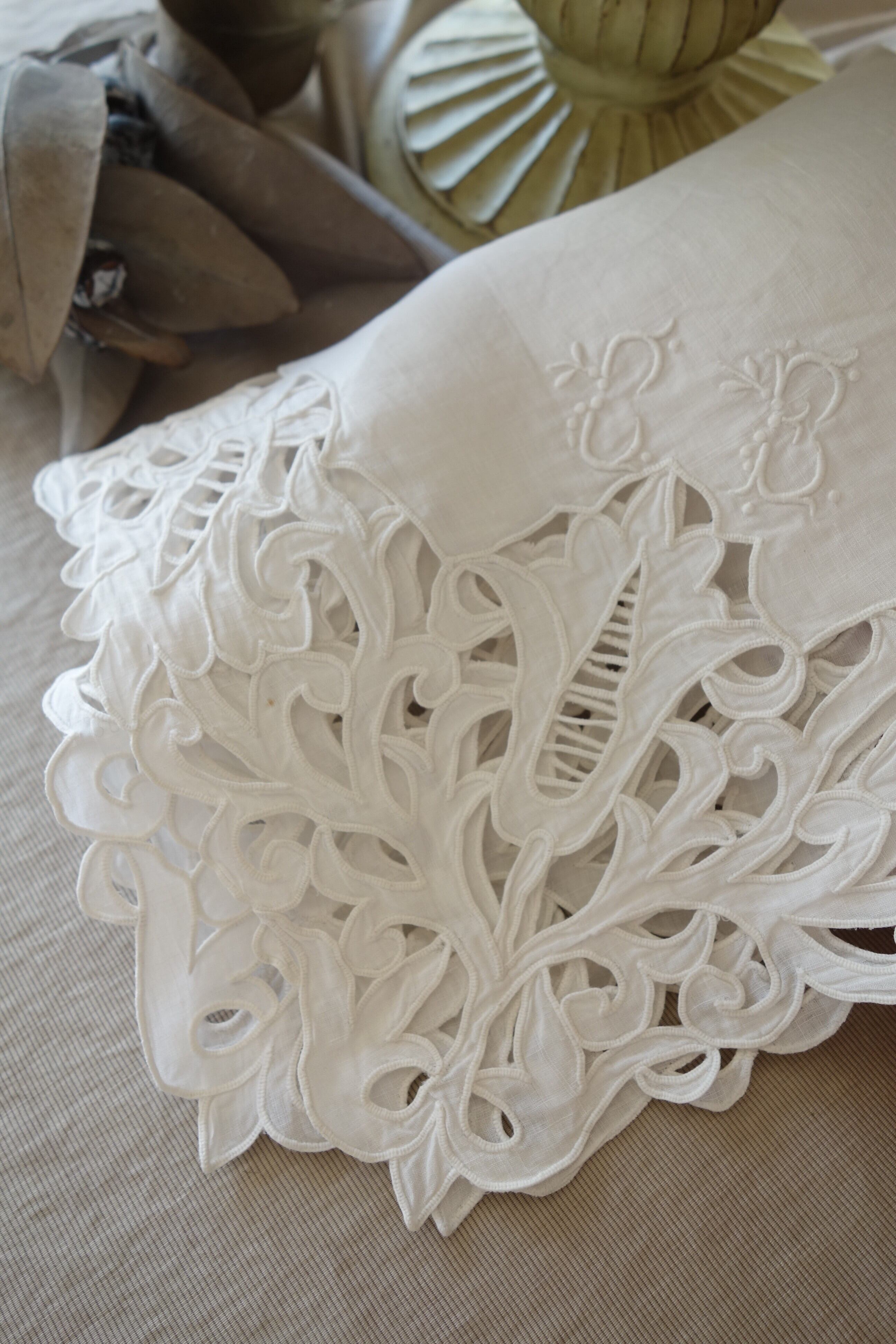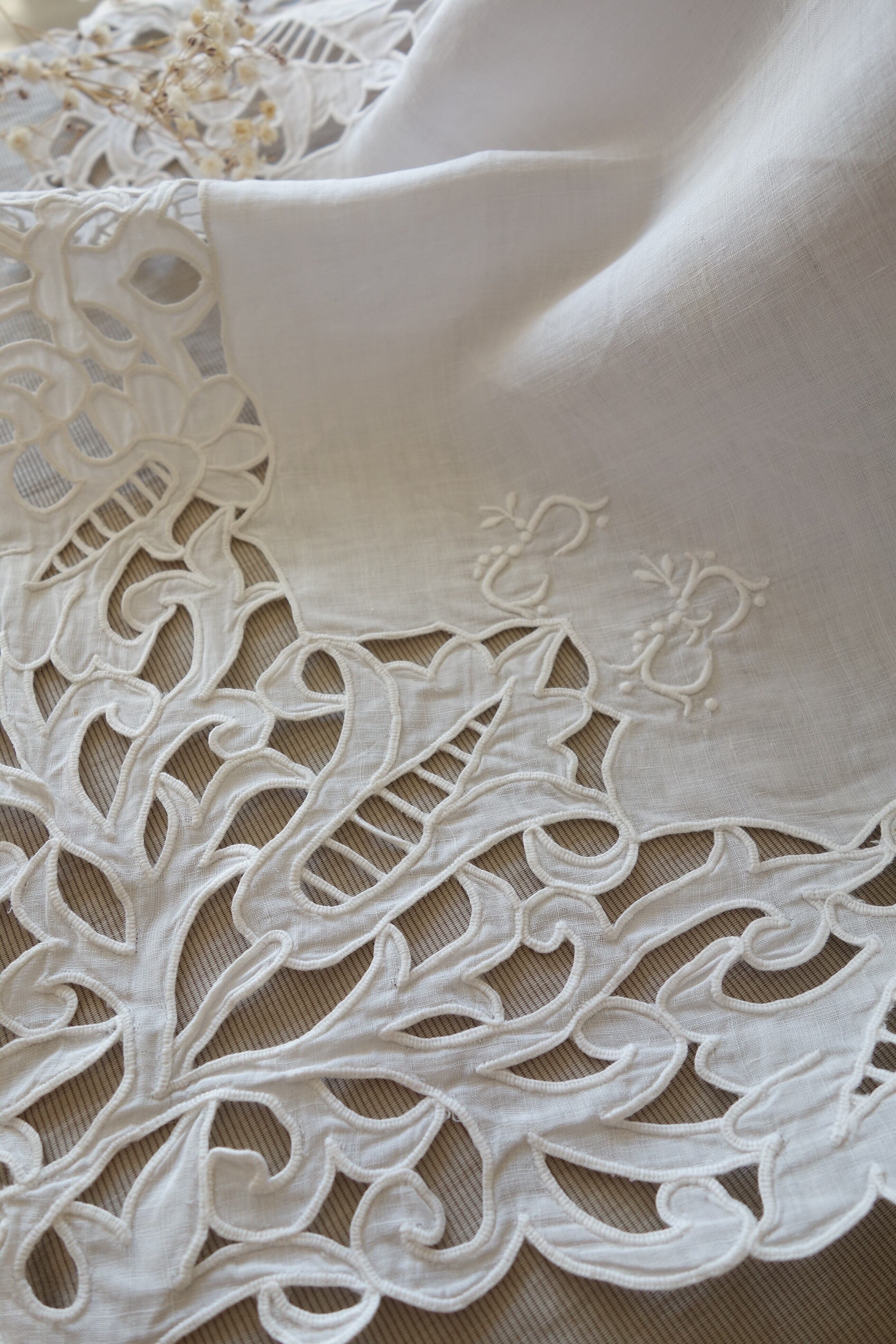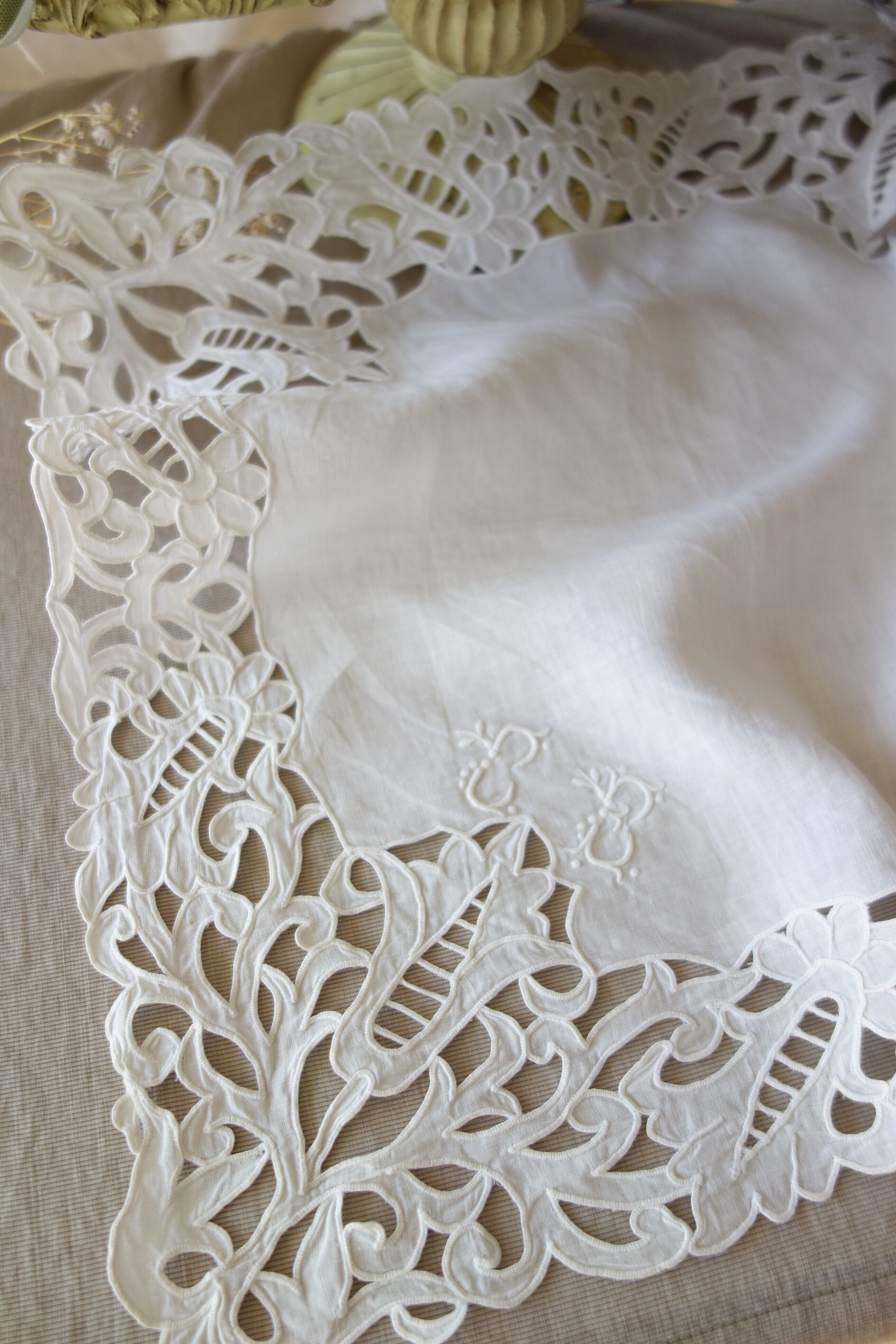 イニシャルモチーフのアンティークハンカチ B088 ホワイト