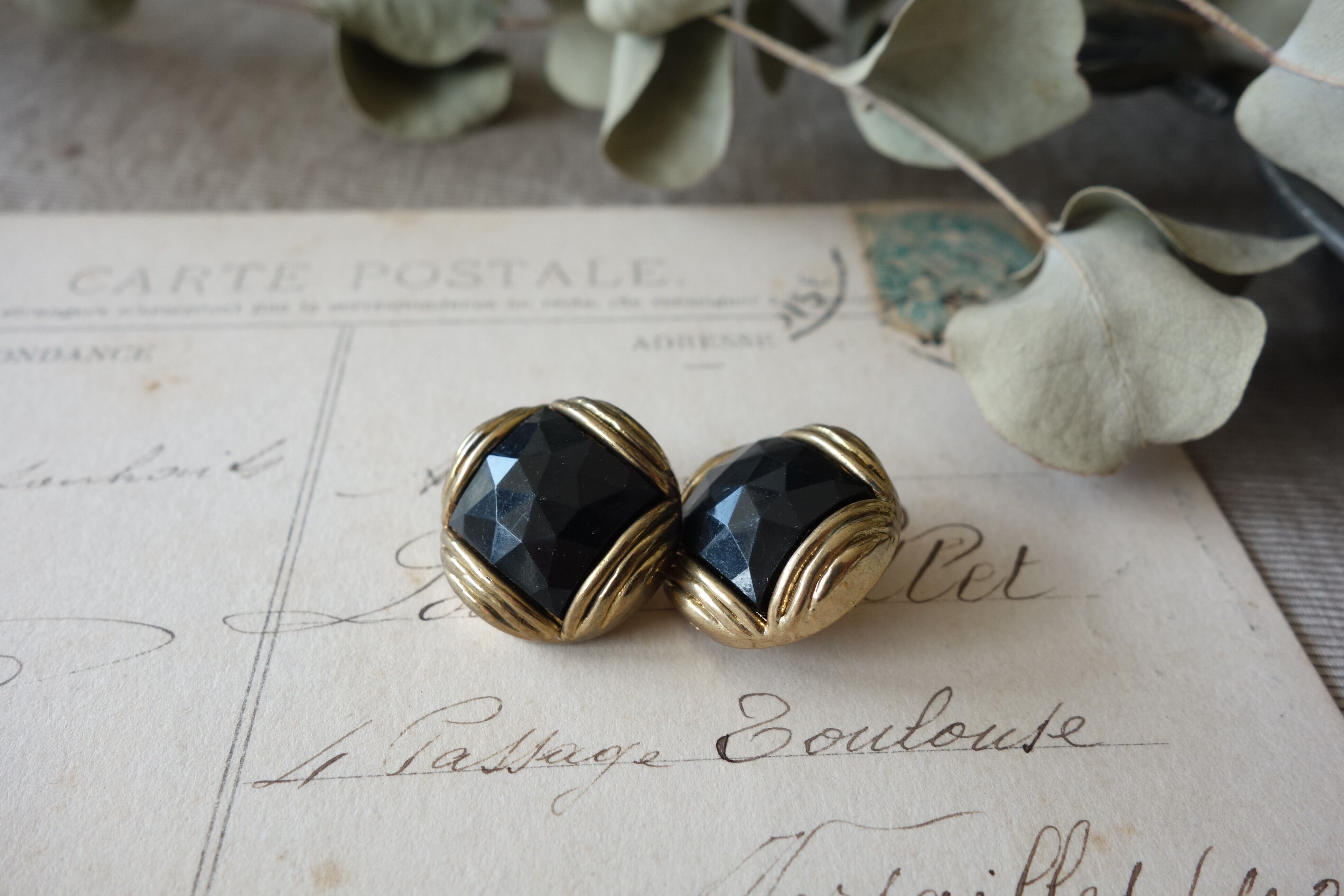 フランス きらきら アンティークボタンA418 ブラック×ゴールド