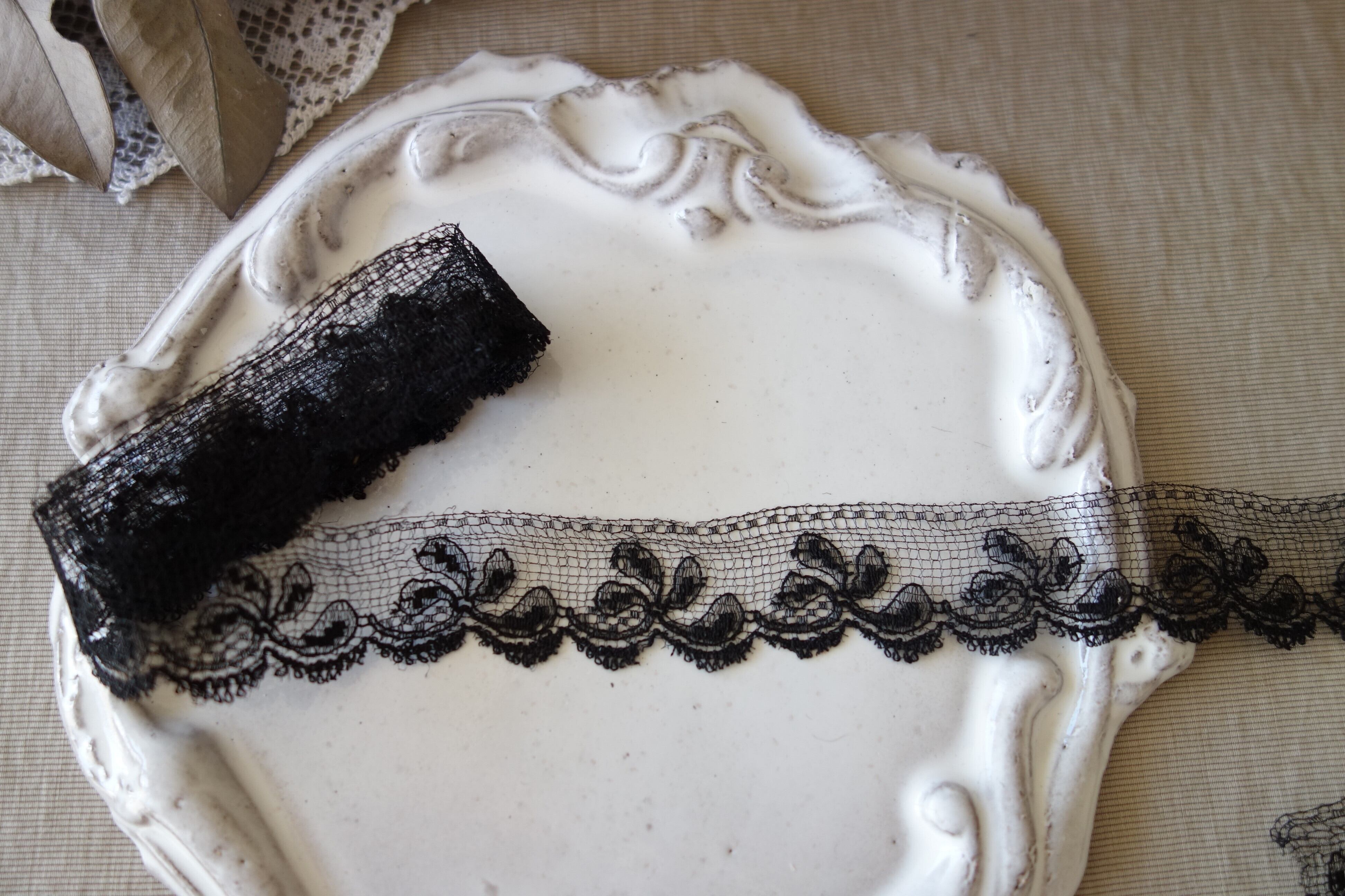 黒35㎝ アンティーク刺繍レース C173