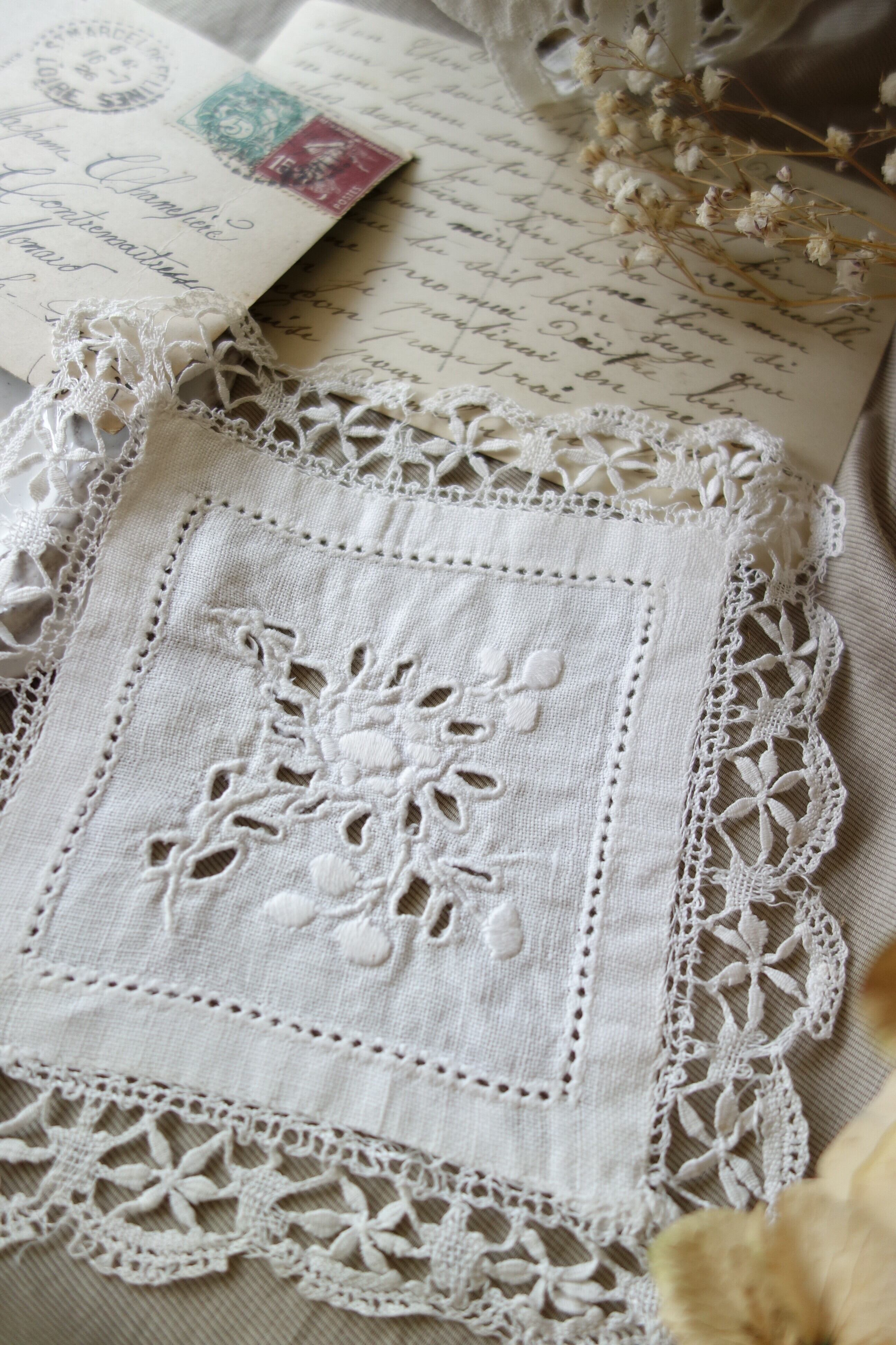 14㎝ アンティーククロッシェ刺繍レース スクエア B100