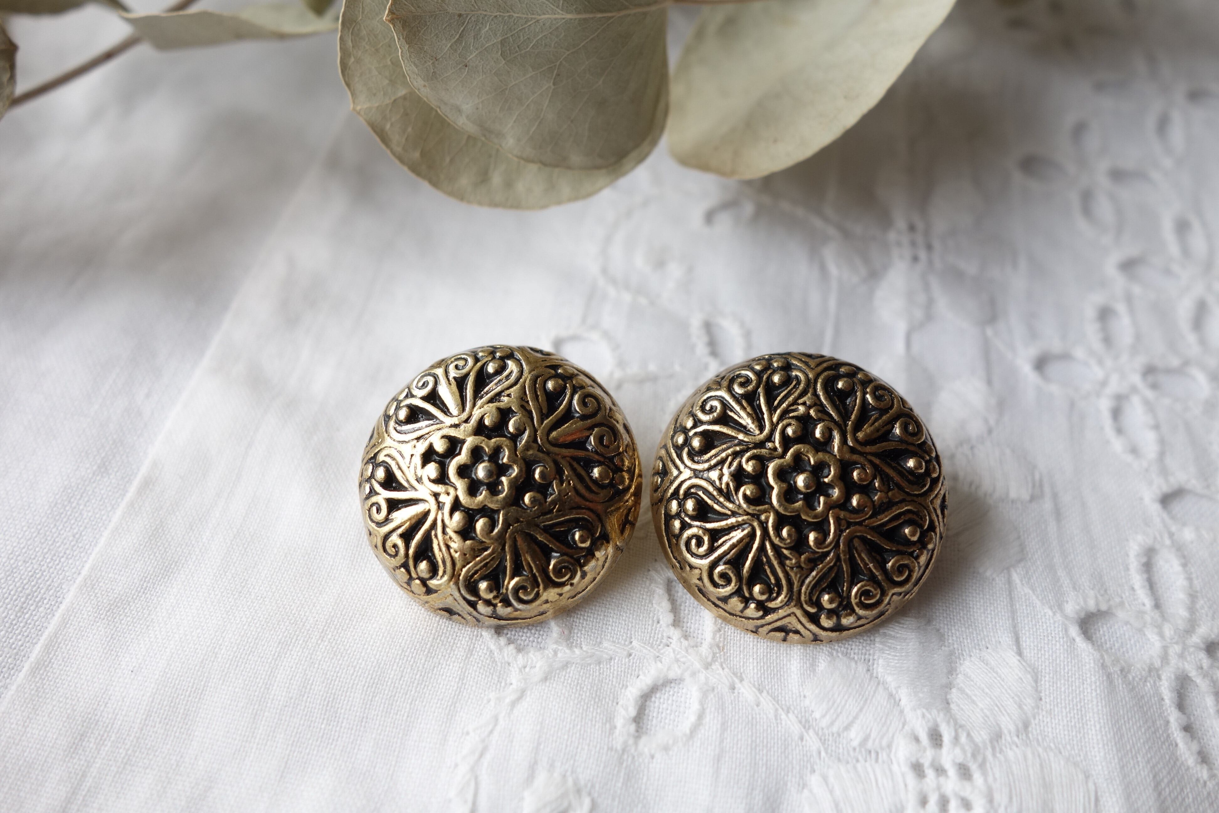 フランス 22㎜ ヴィンテージ透かしボタン A483 ゴールド