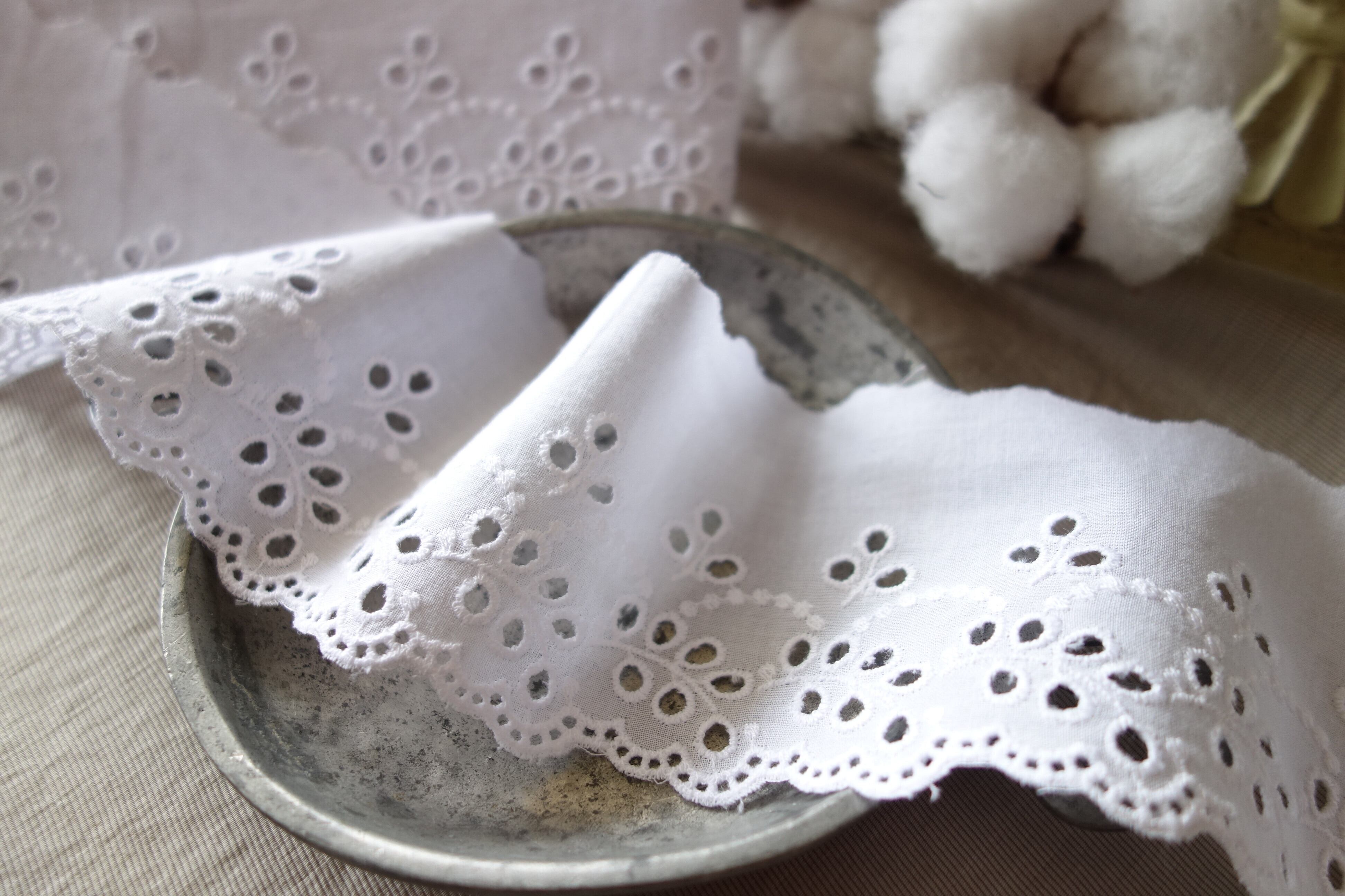 新品25㎝ 植物柄アングレーズブロドリー B104 ホワイト