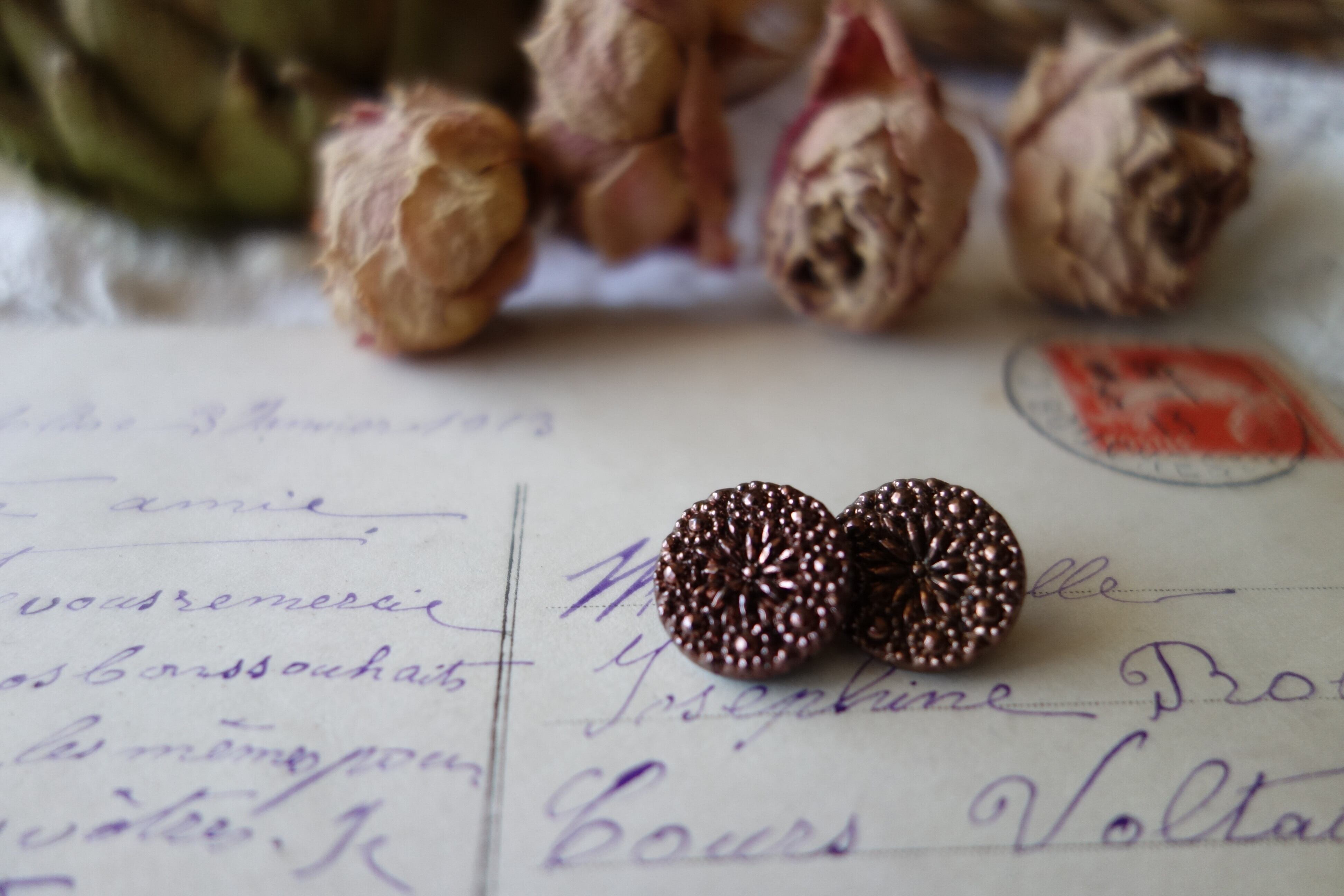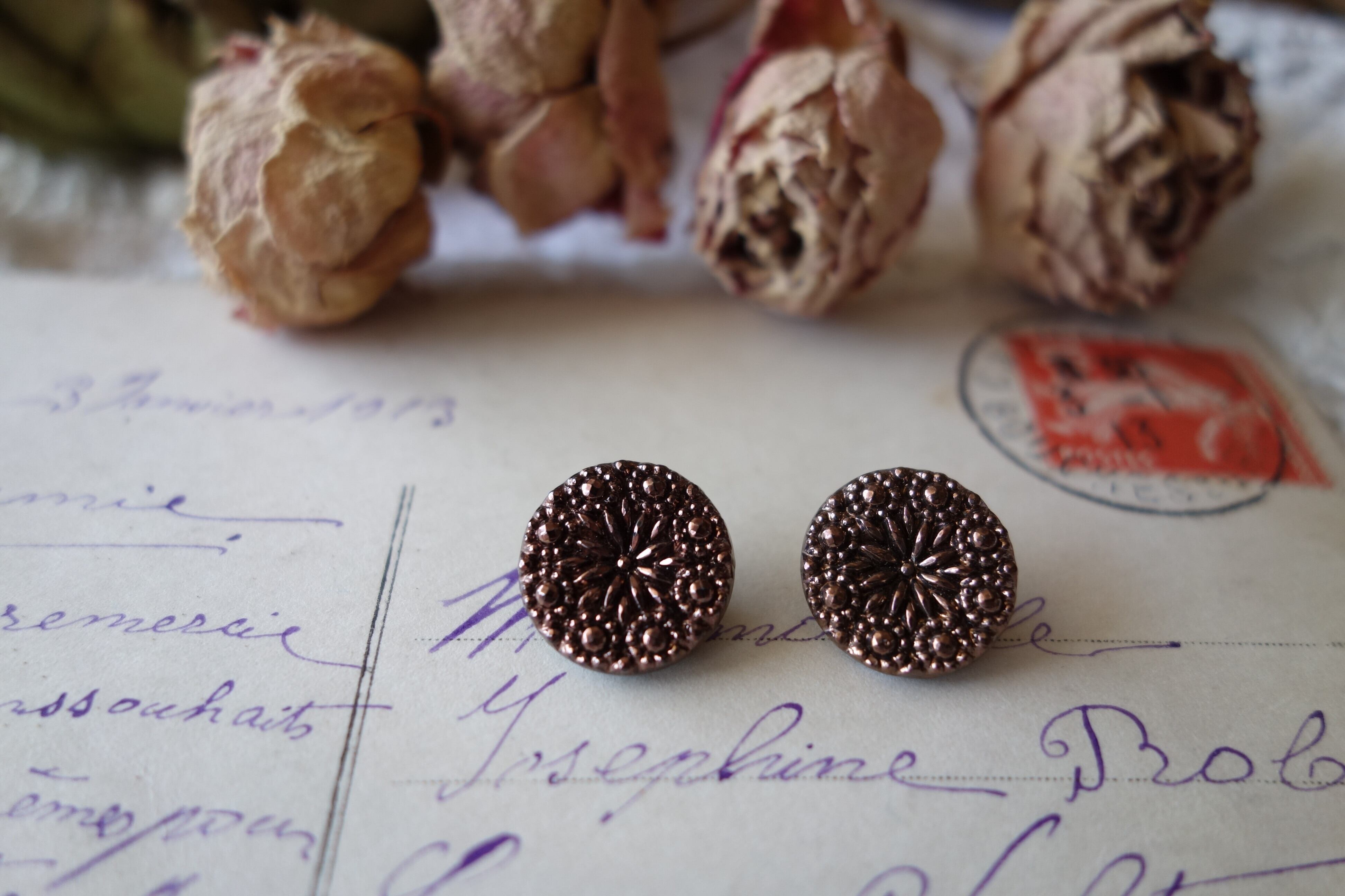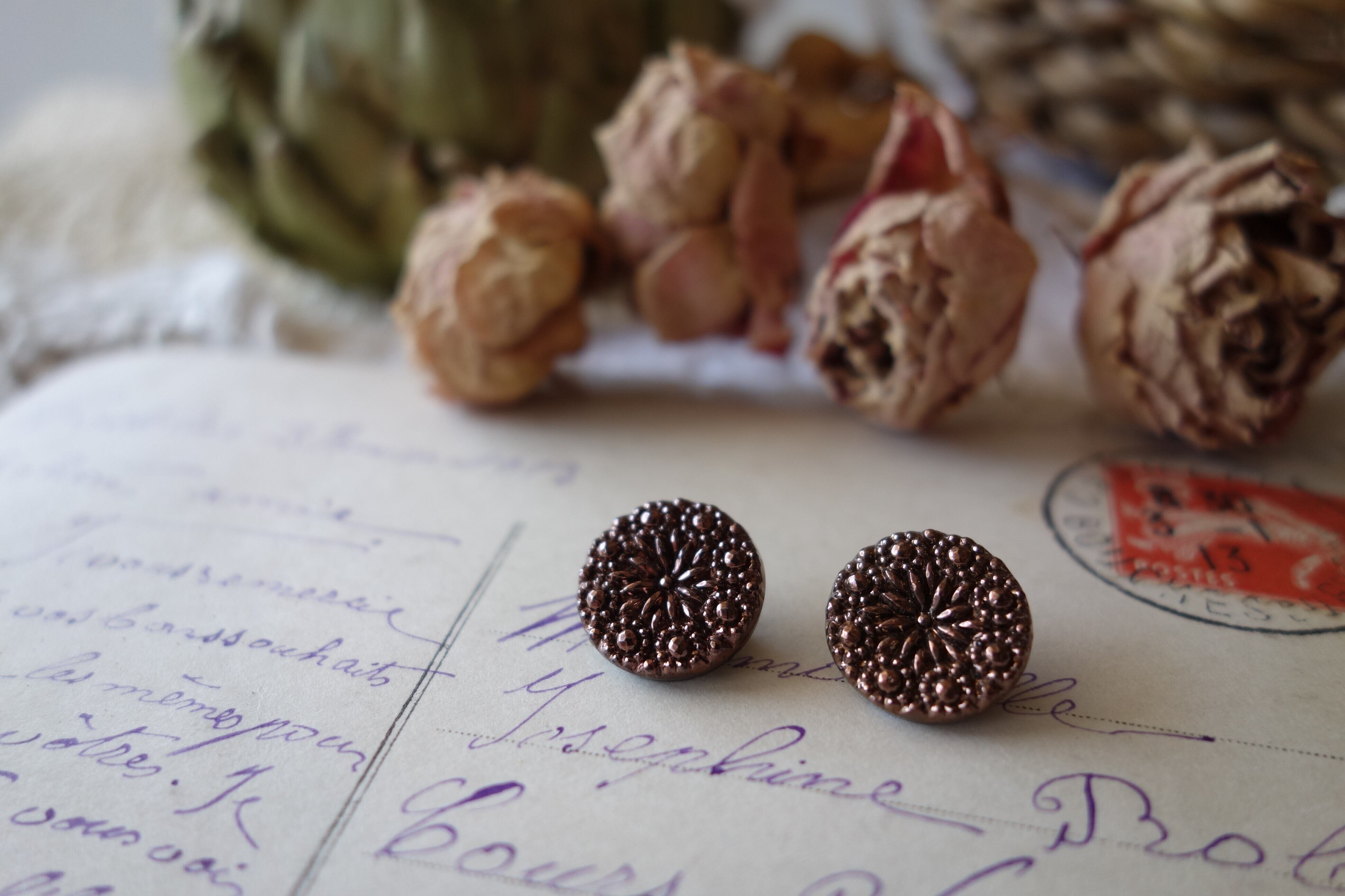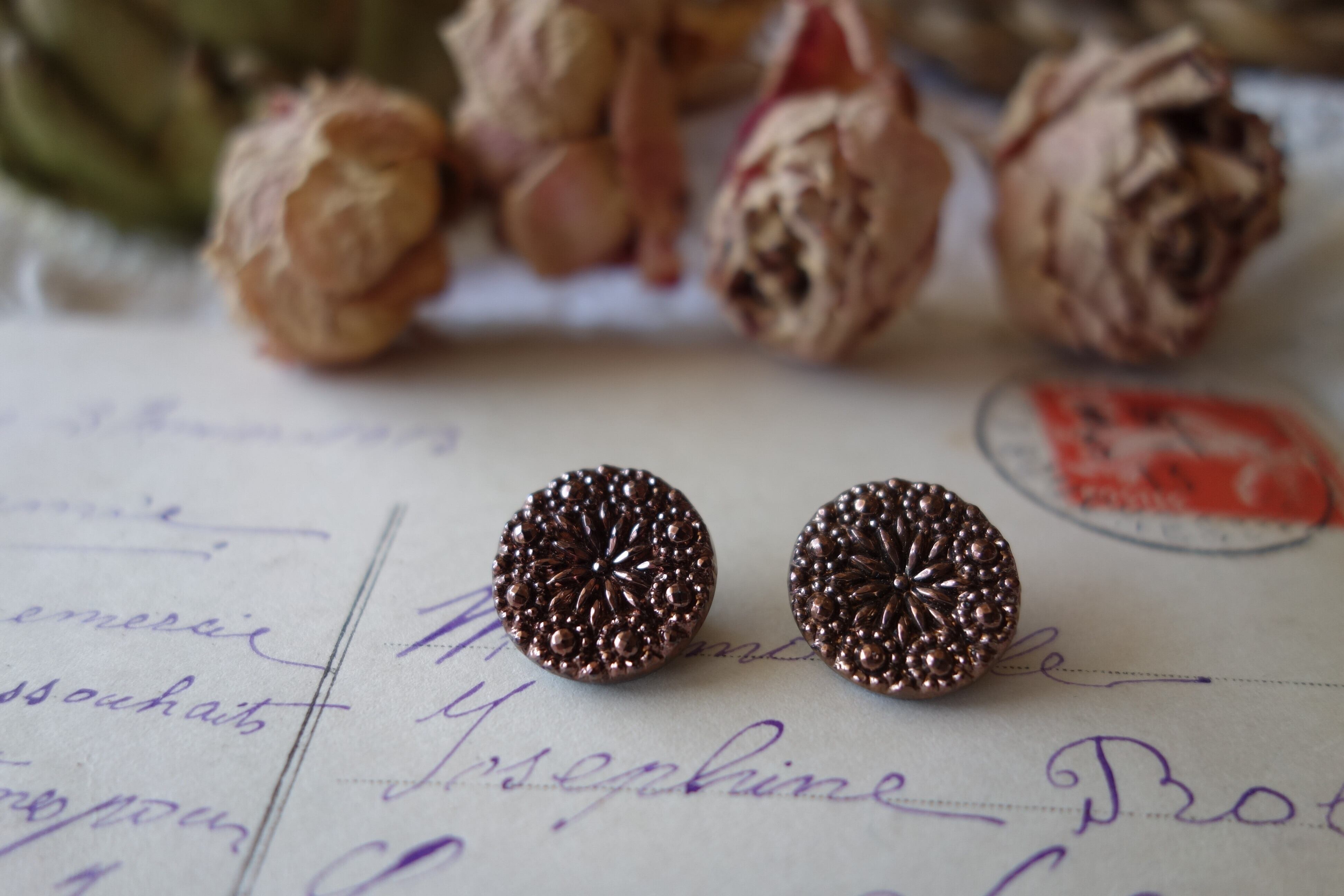 フラワーモチーフのガラスボタン