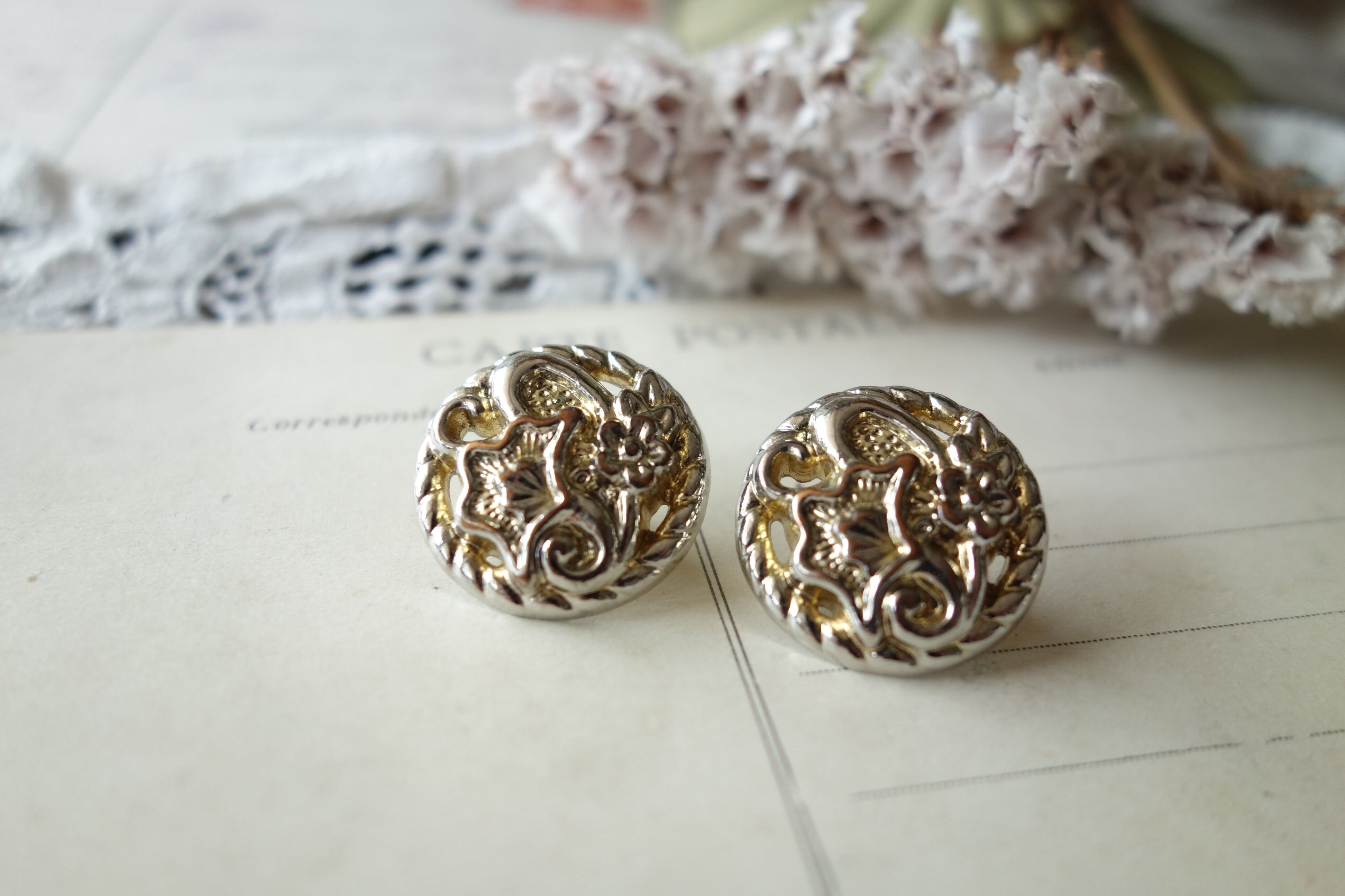 元はゴールドのようですが、経年により色が抜けてしまった感じになっています。